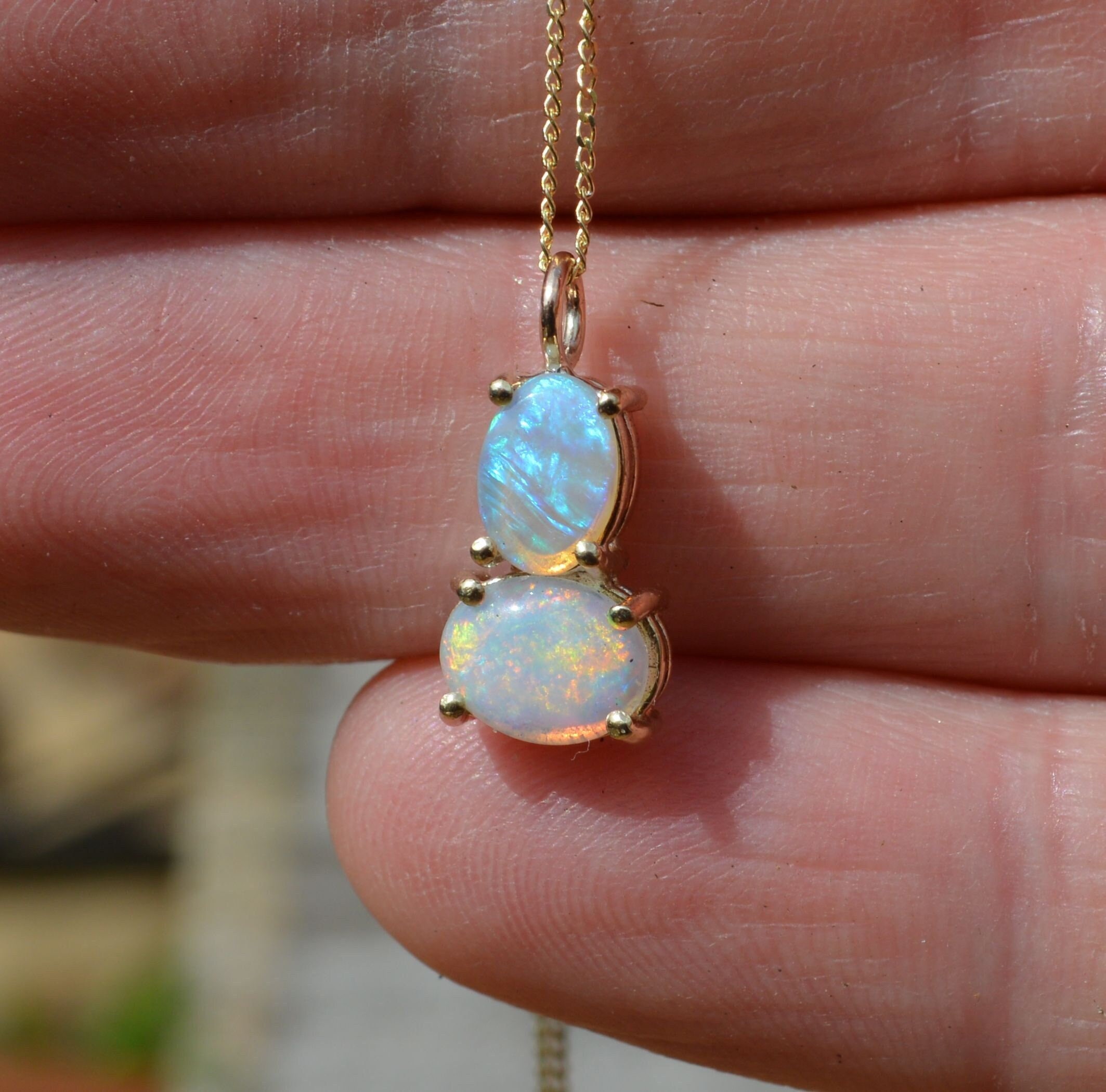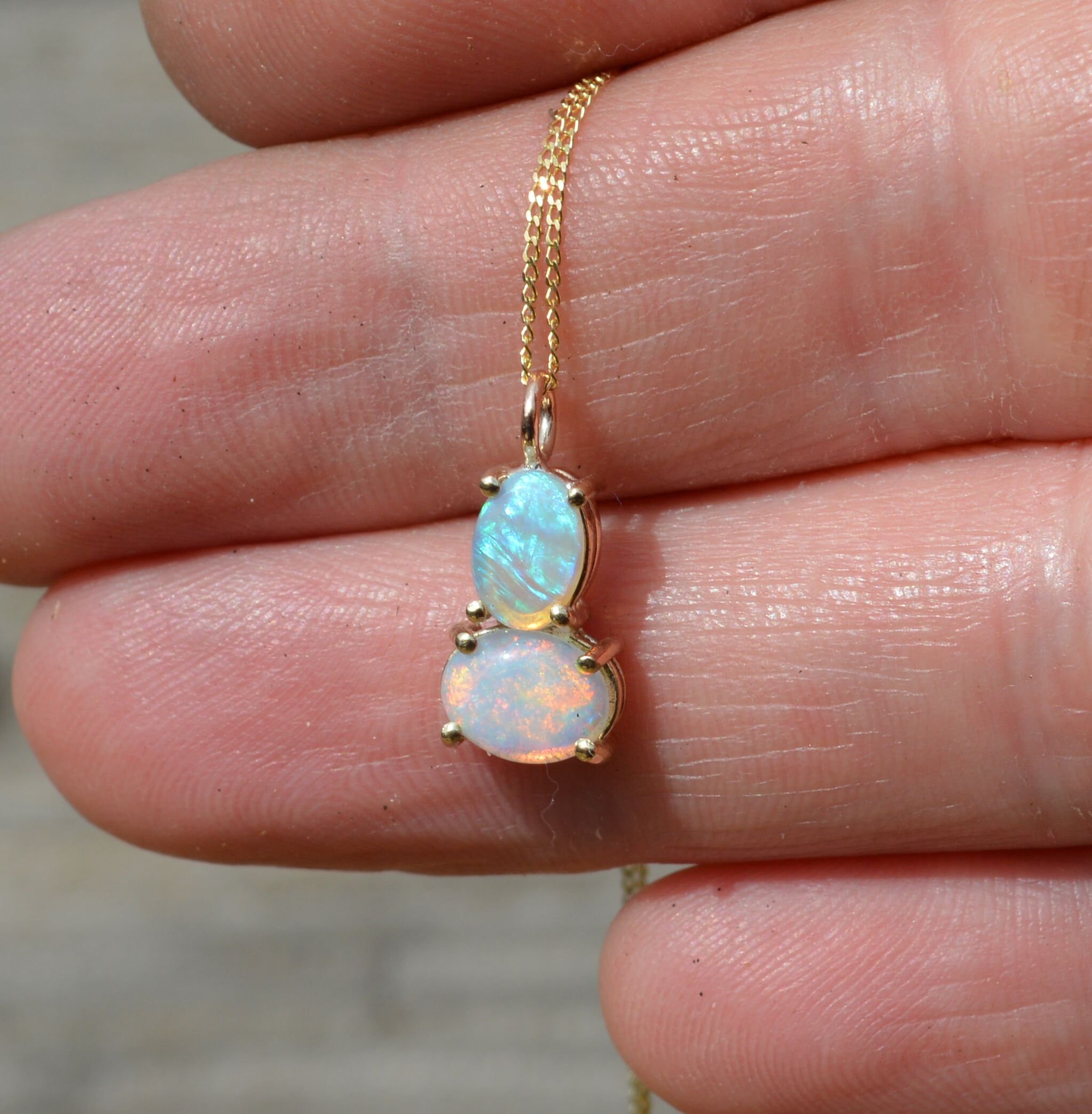 Dainty, 9ct Gold and Australian Crystal Opal Pendant