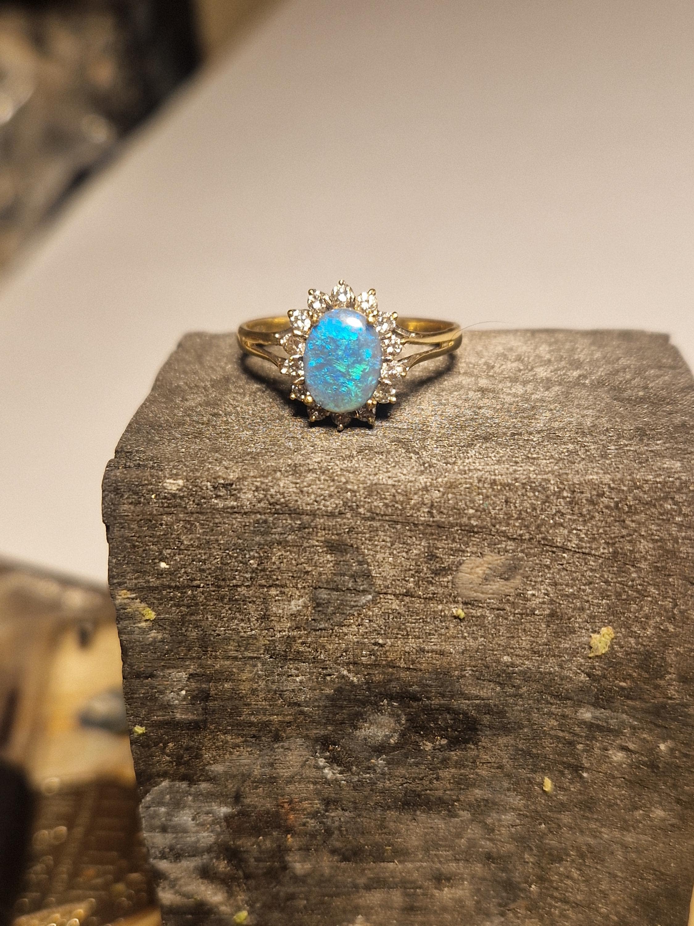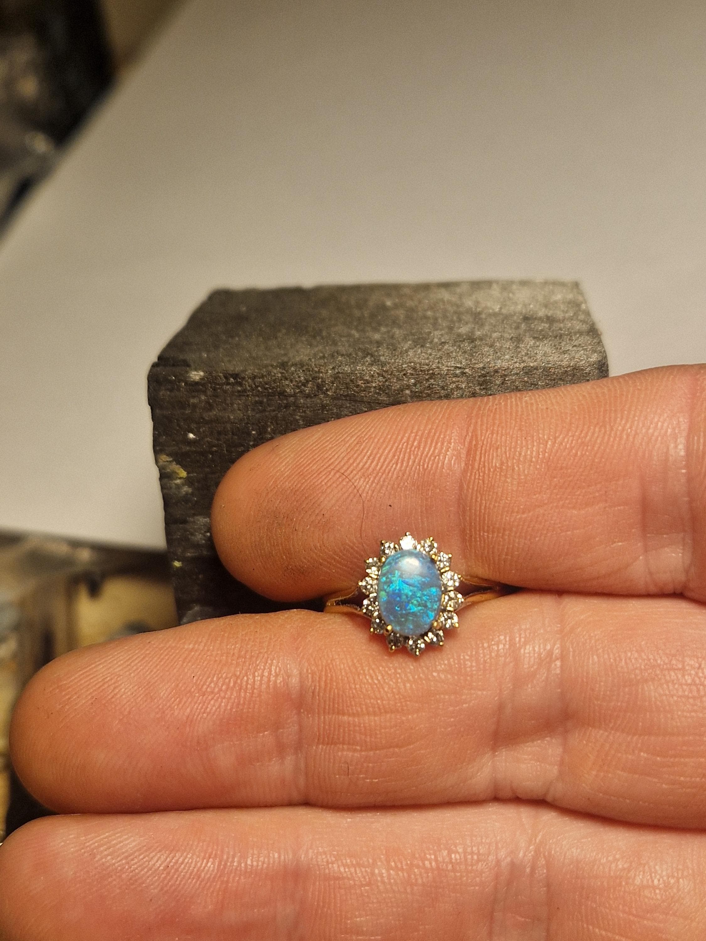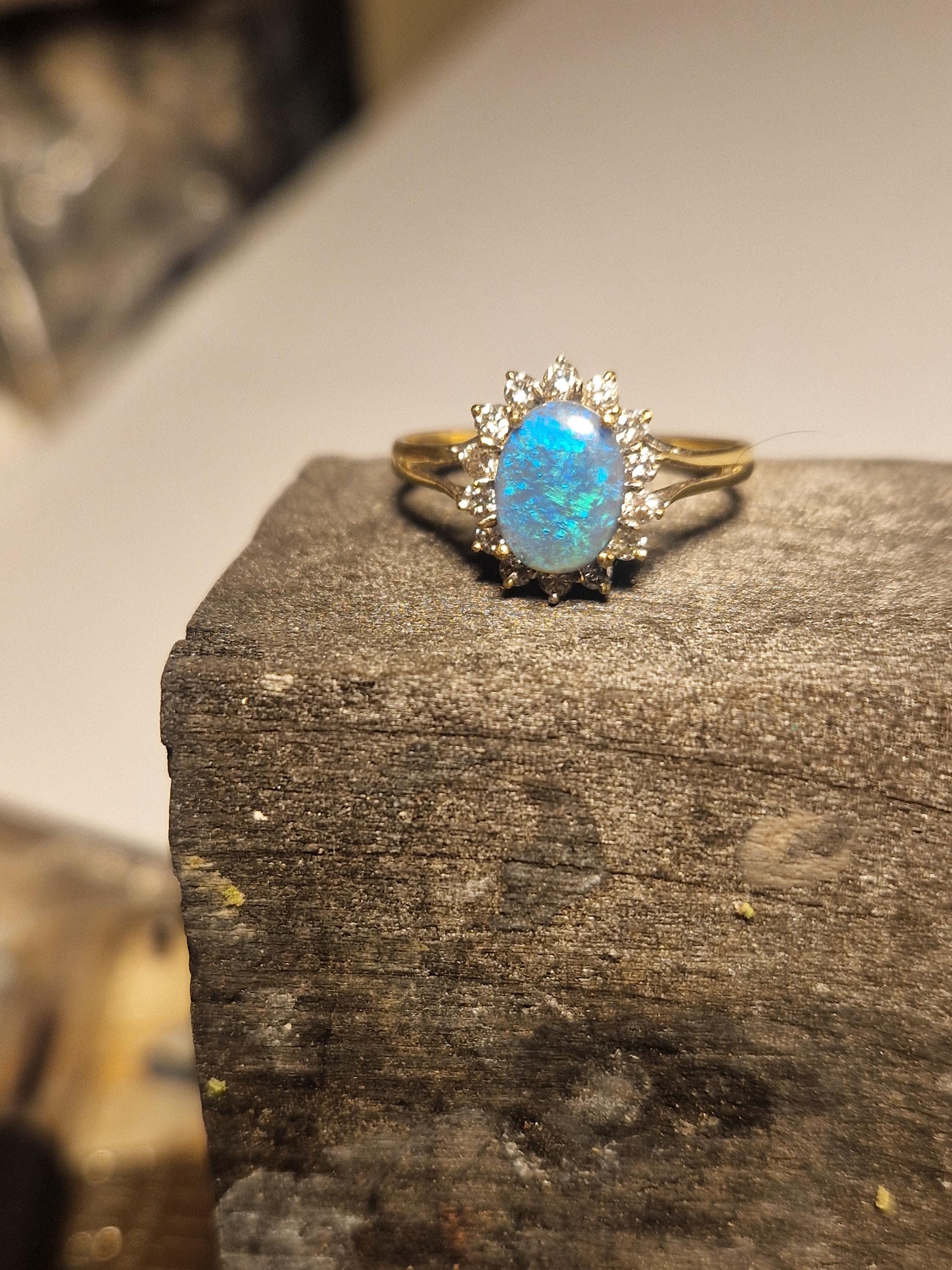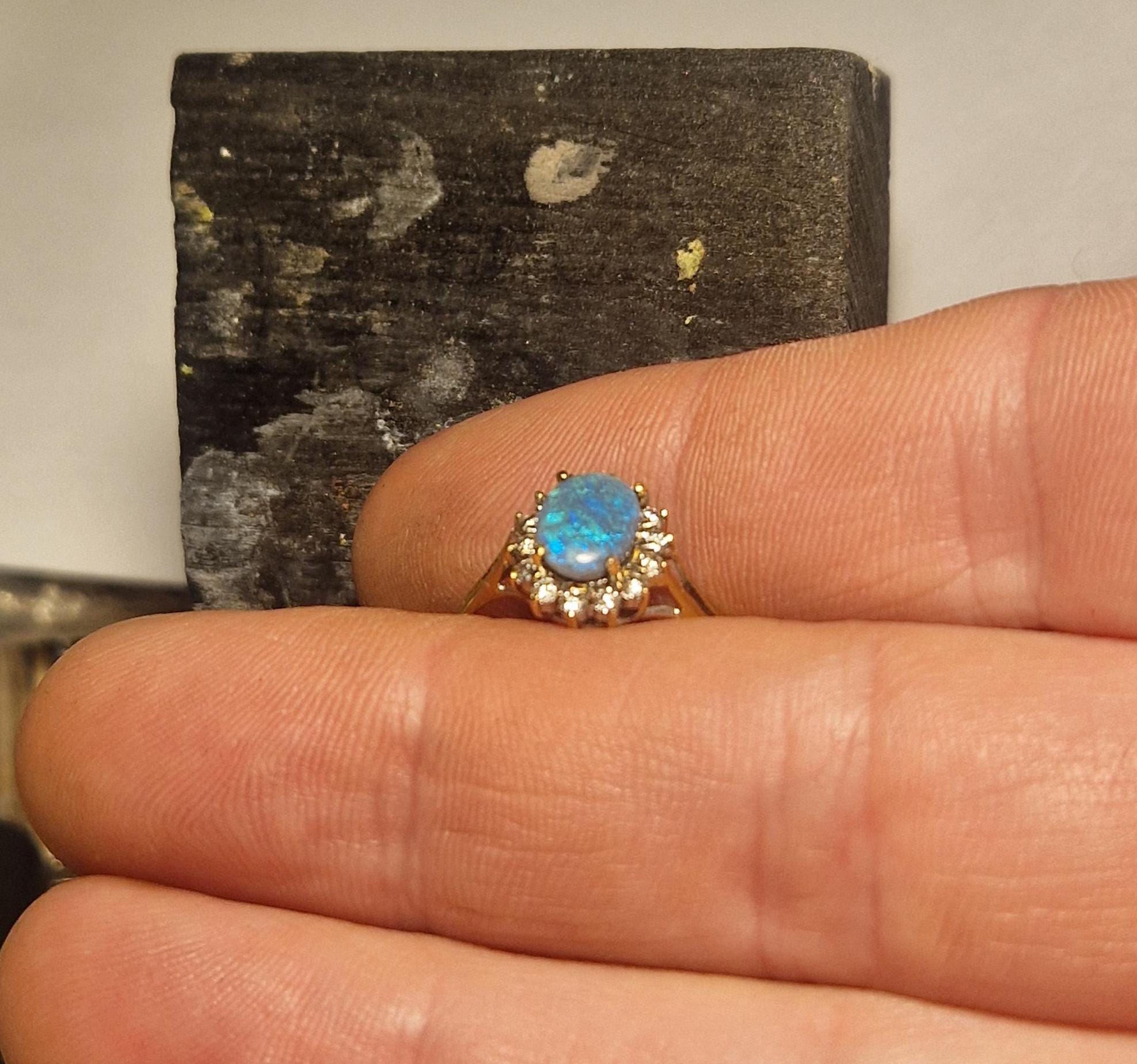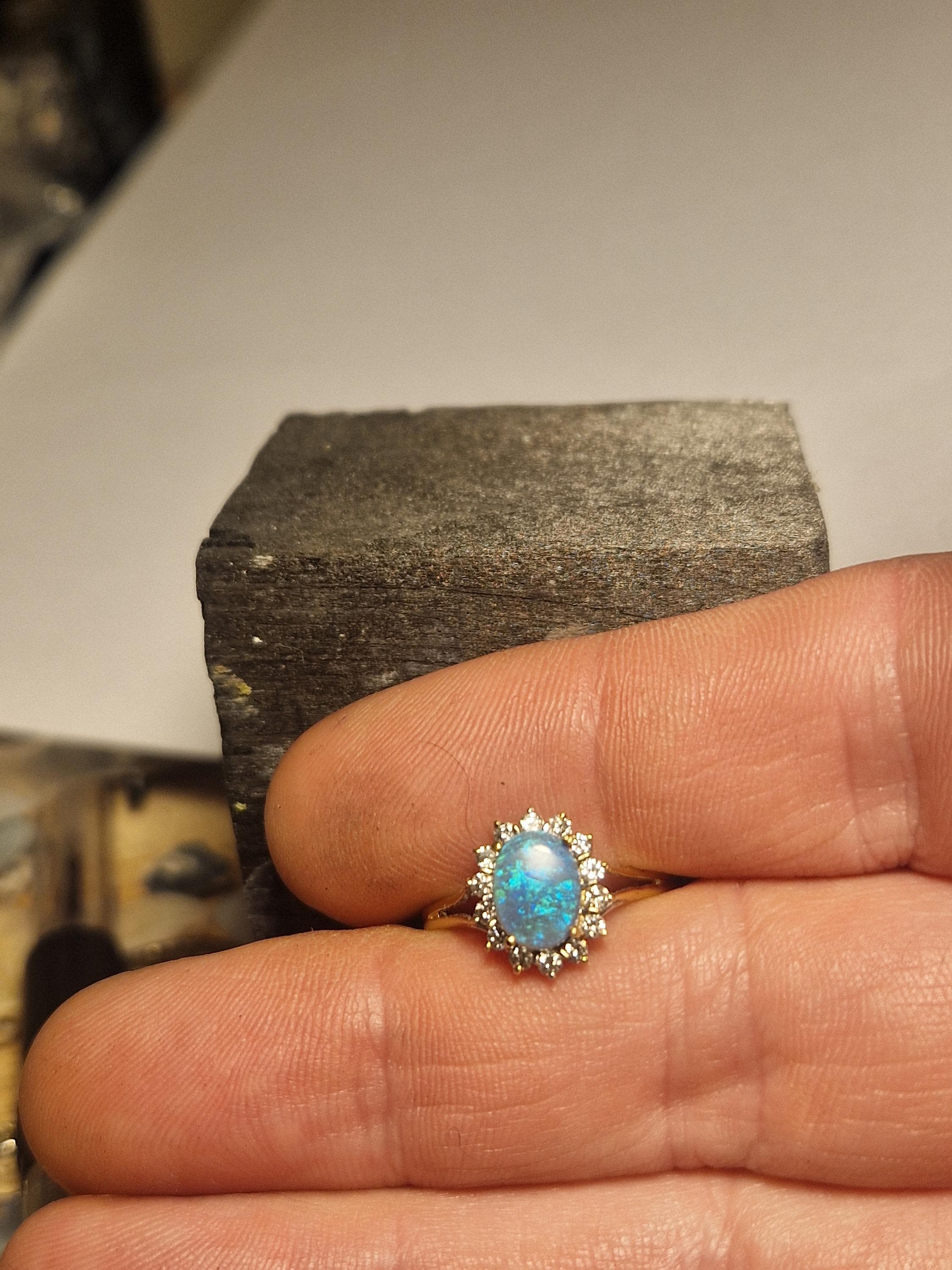 18ct Gold Opal and Diamond Halo Ring, Australian Opal