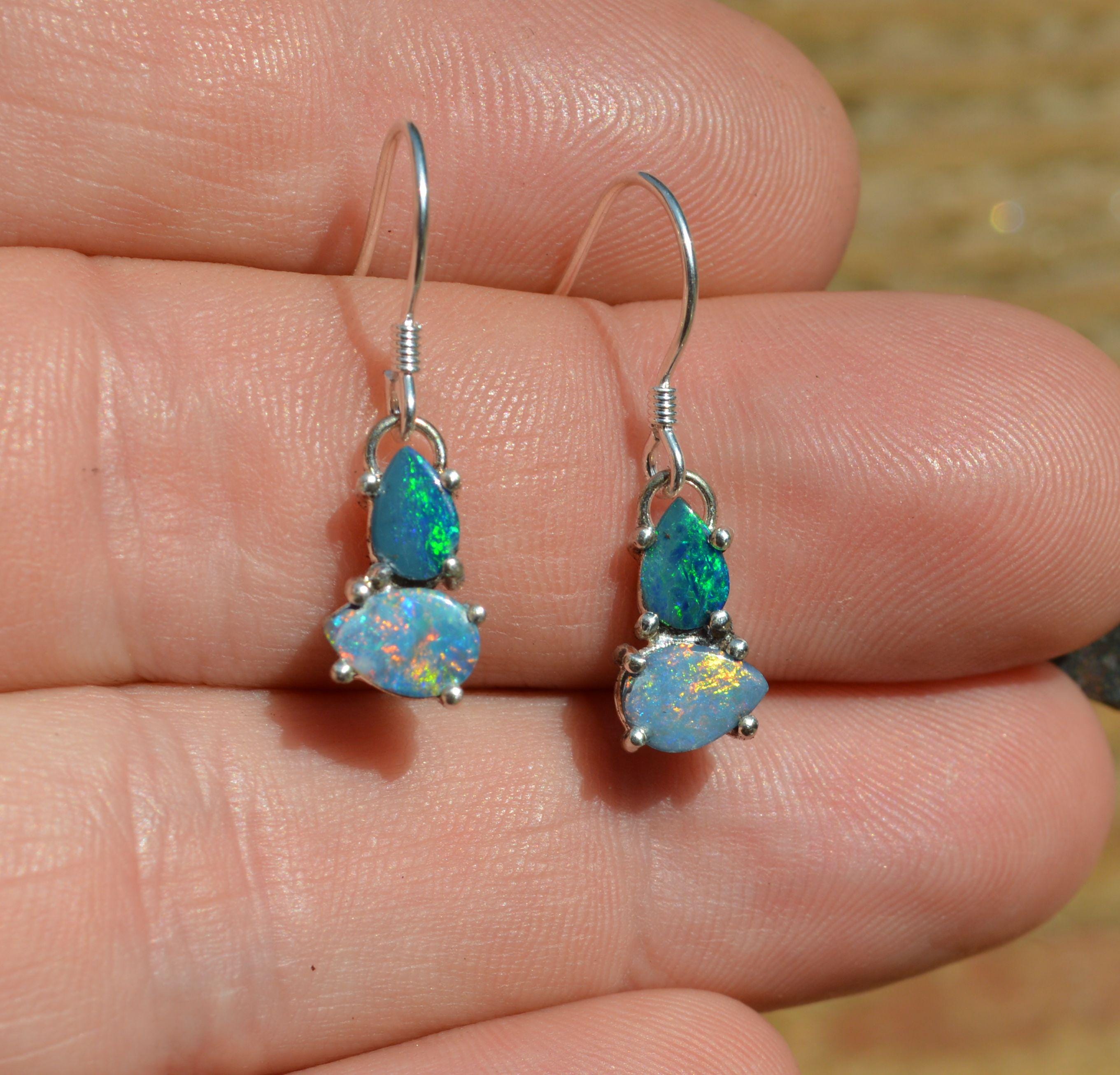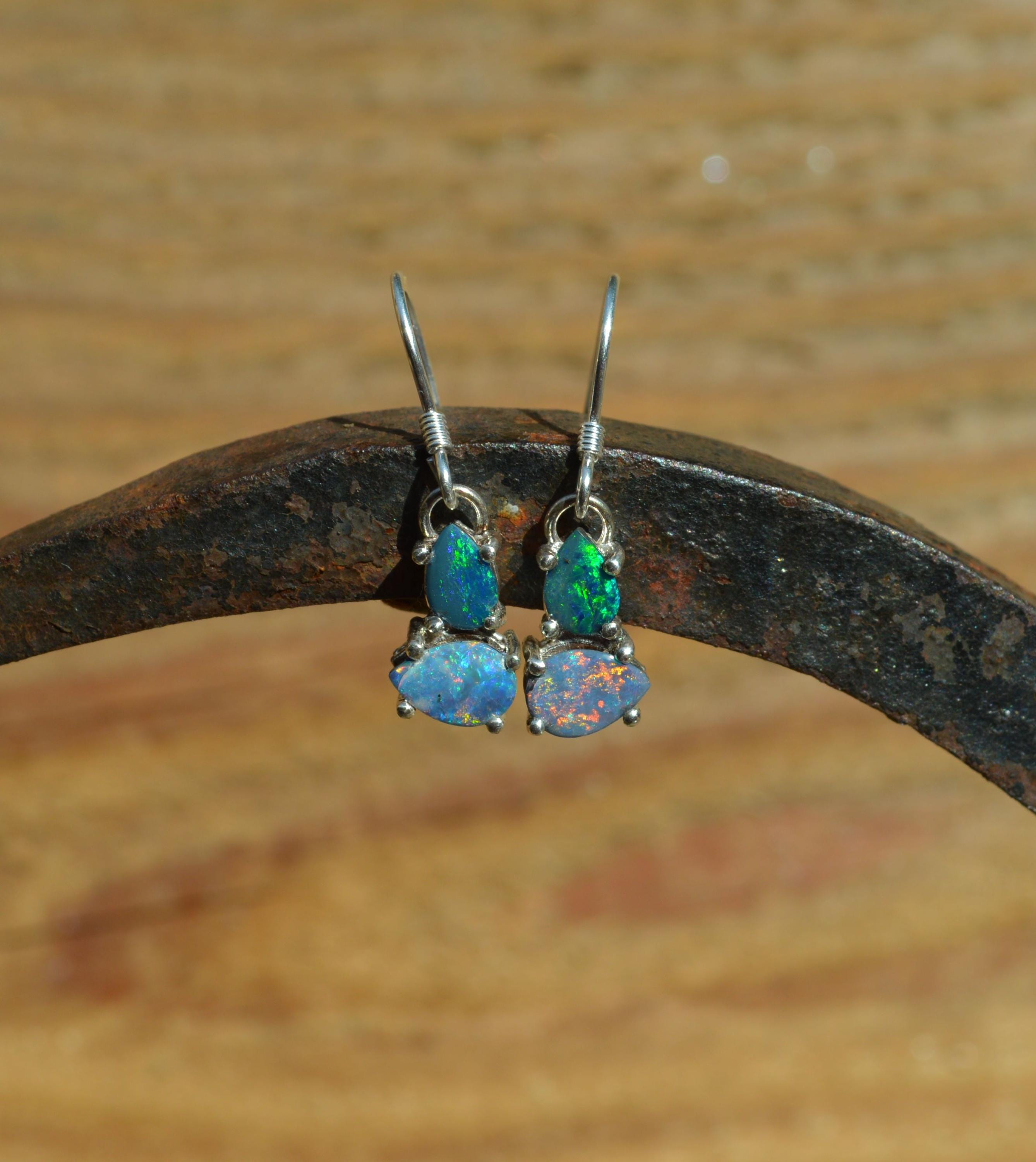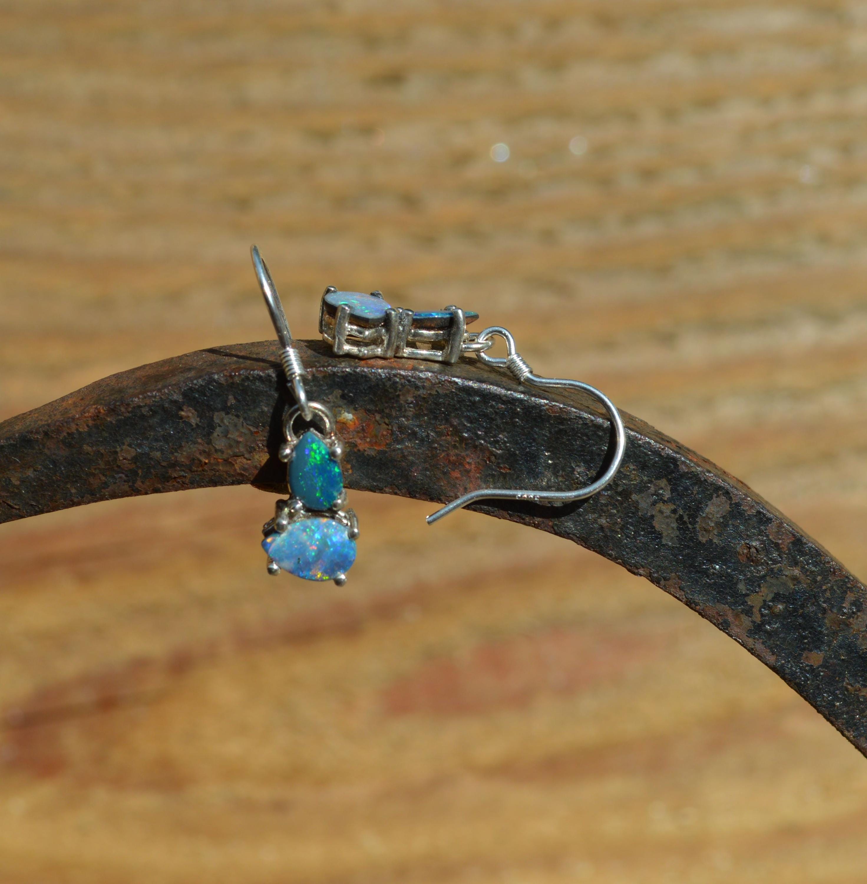 Australian Opal and Silver Drop Earrings, Opal Doublets