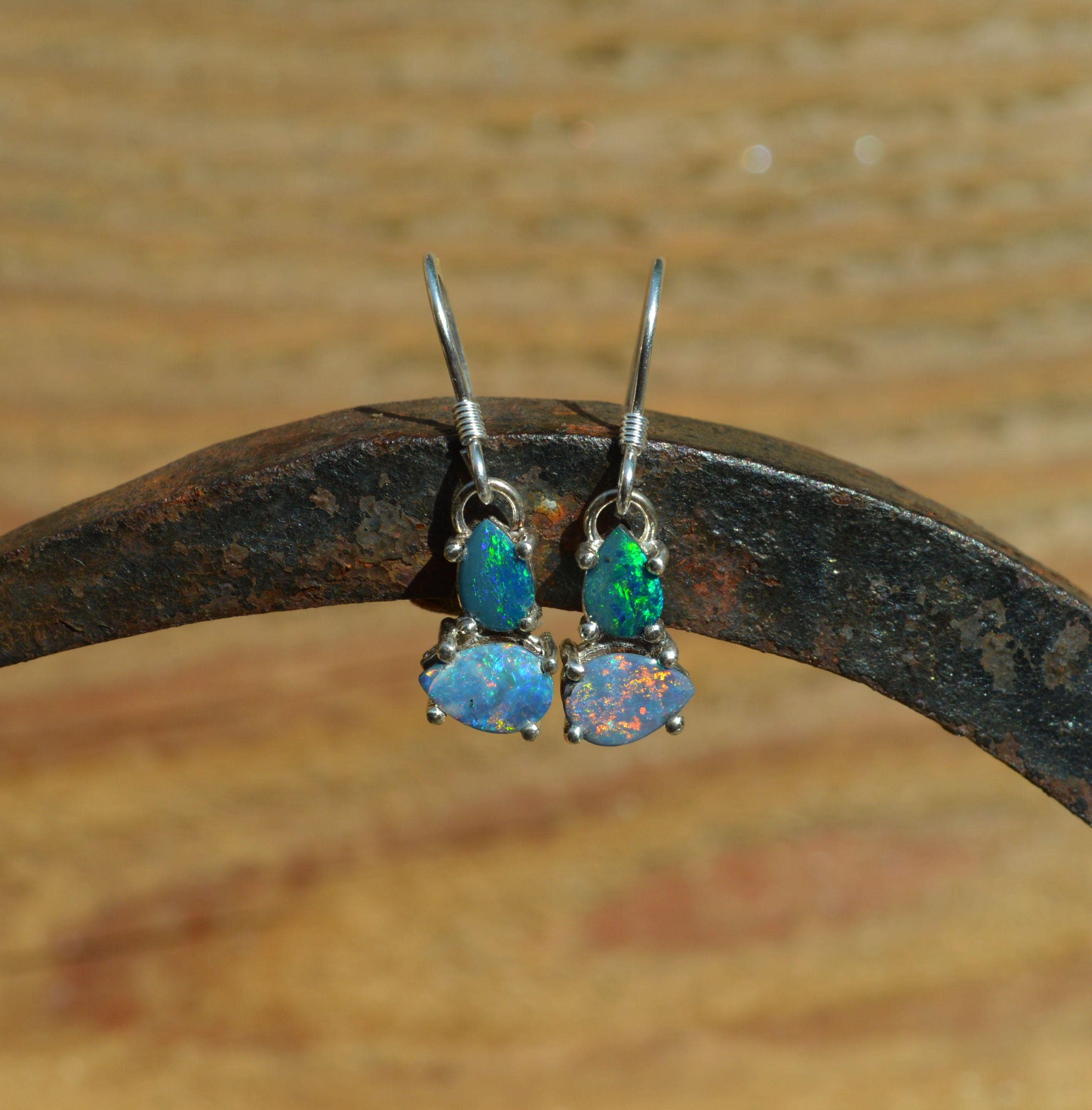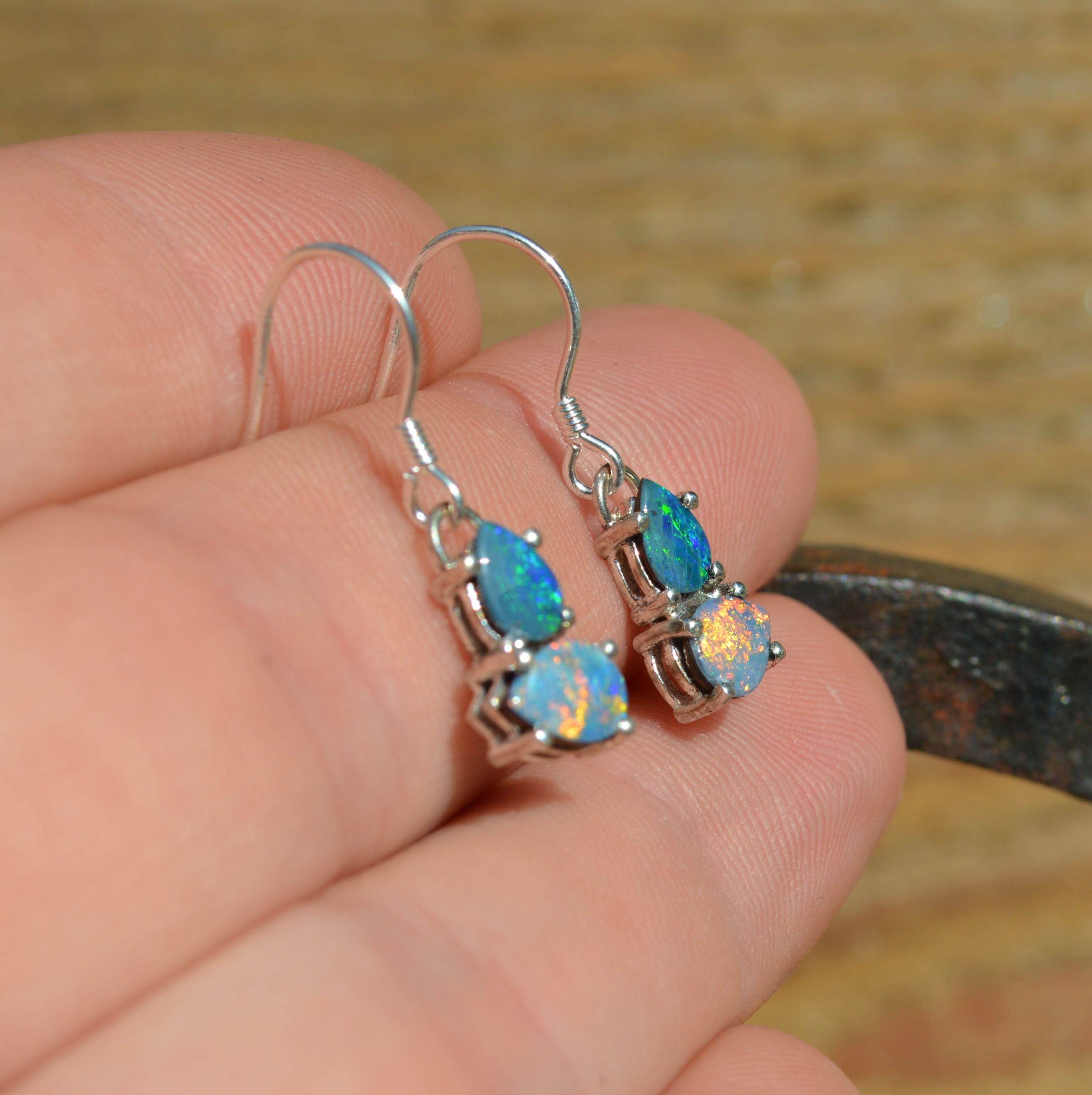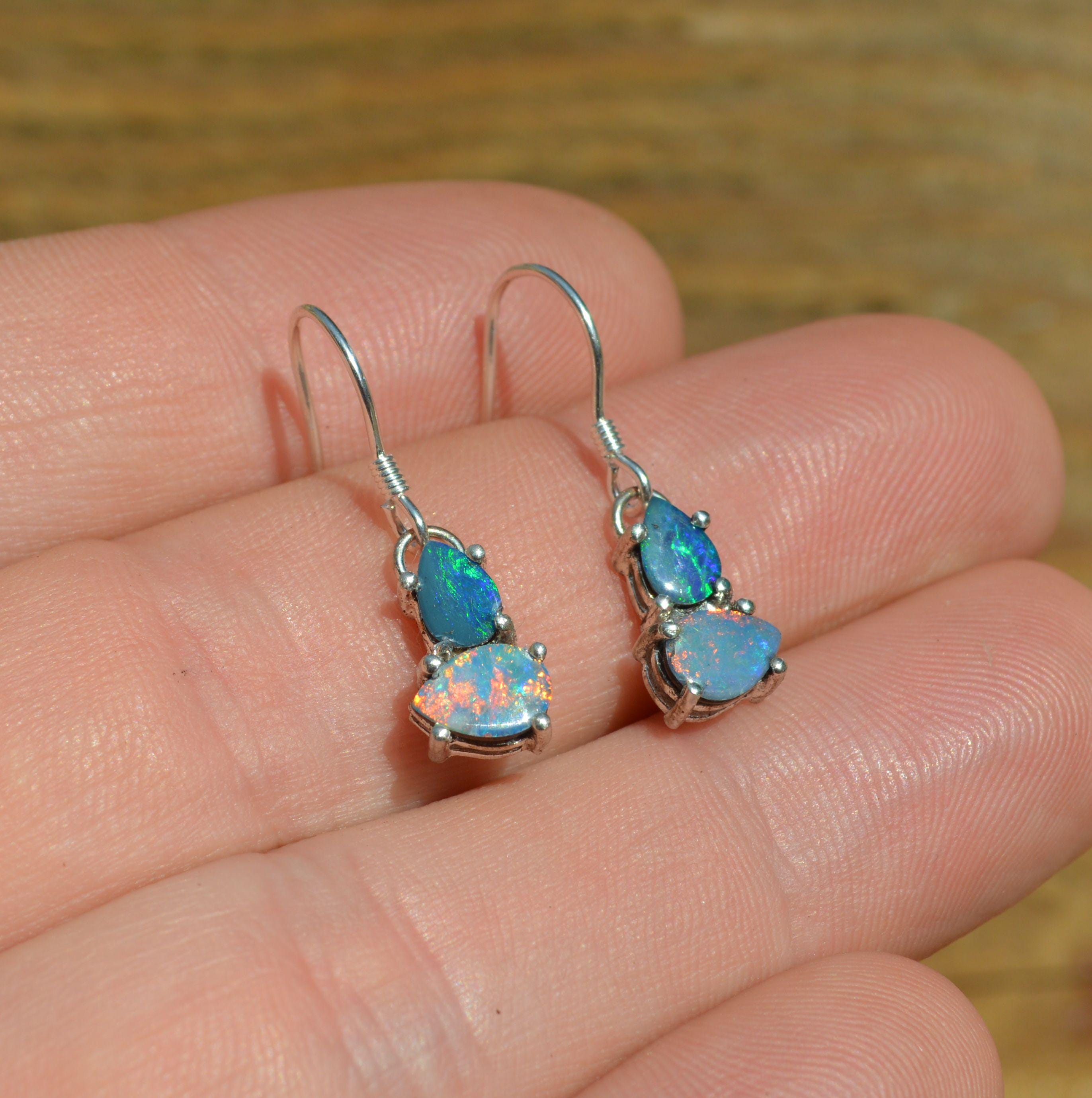 Australian Opal and Silver Drop Earrings, Opal Doublets