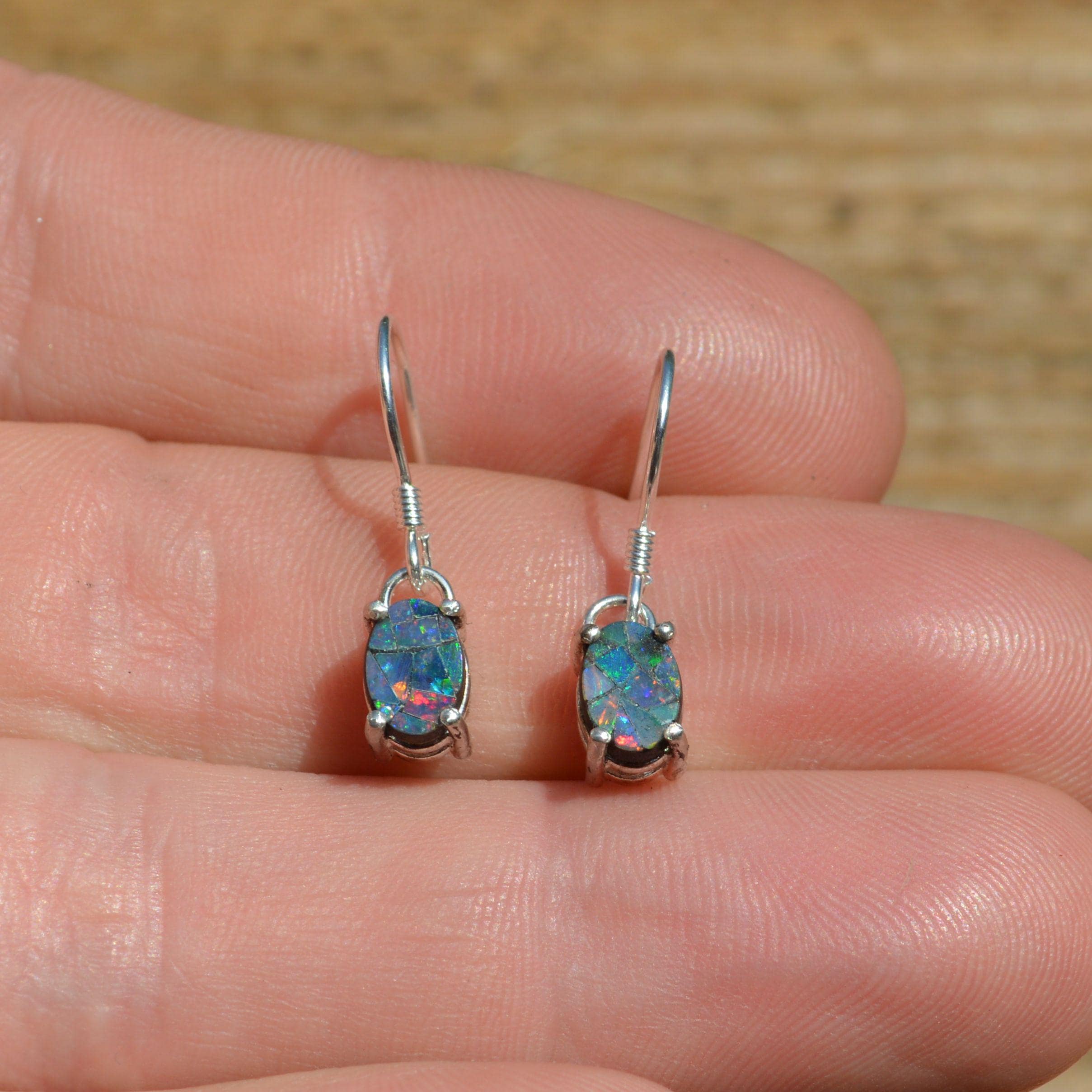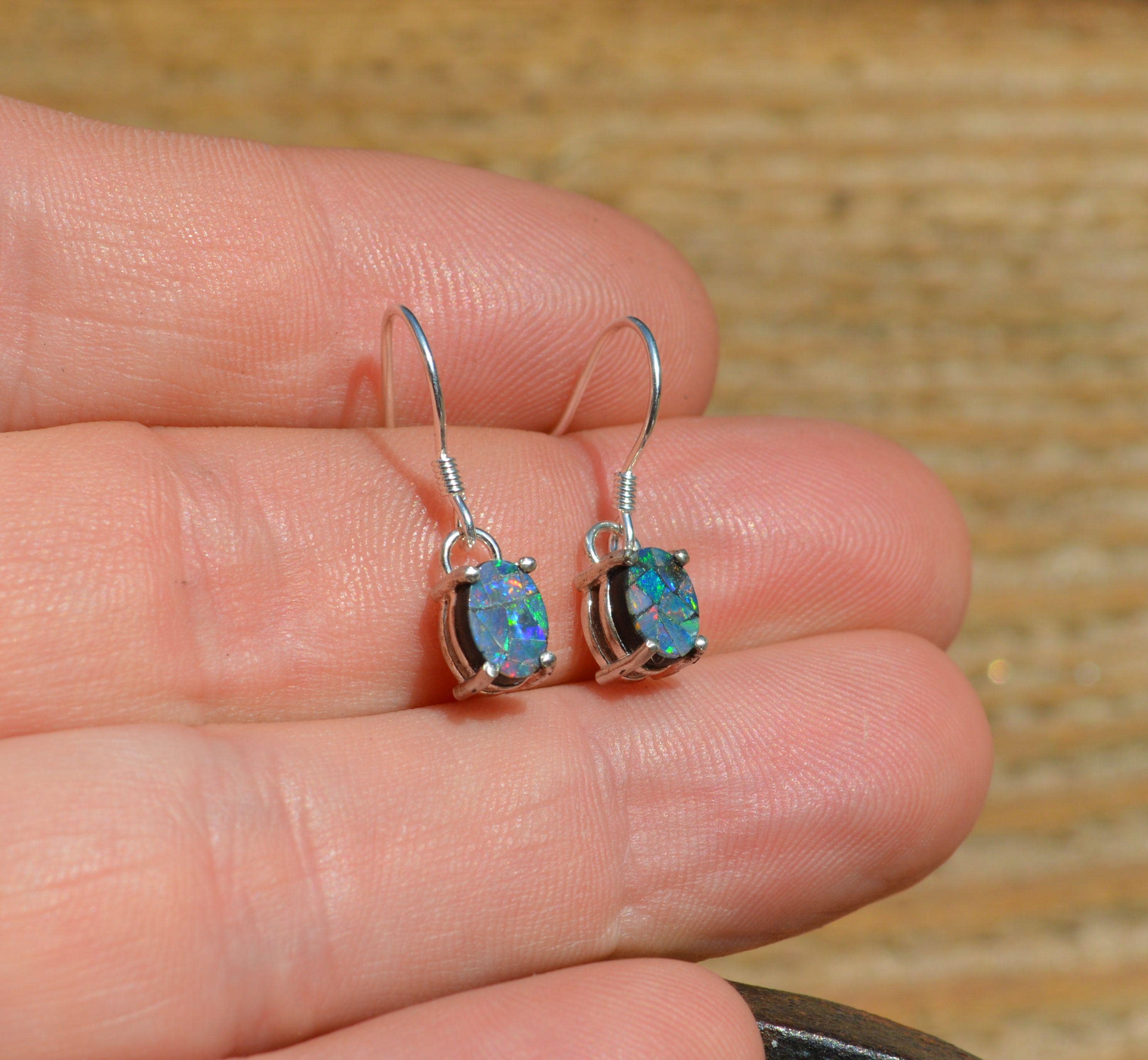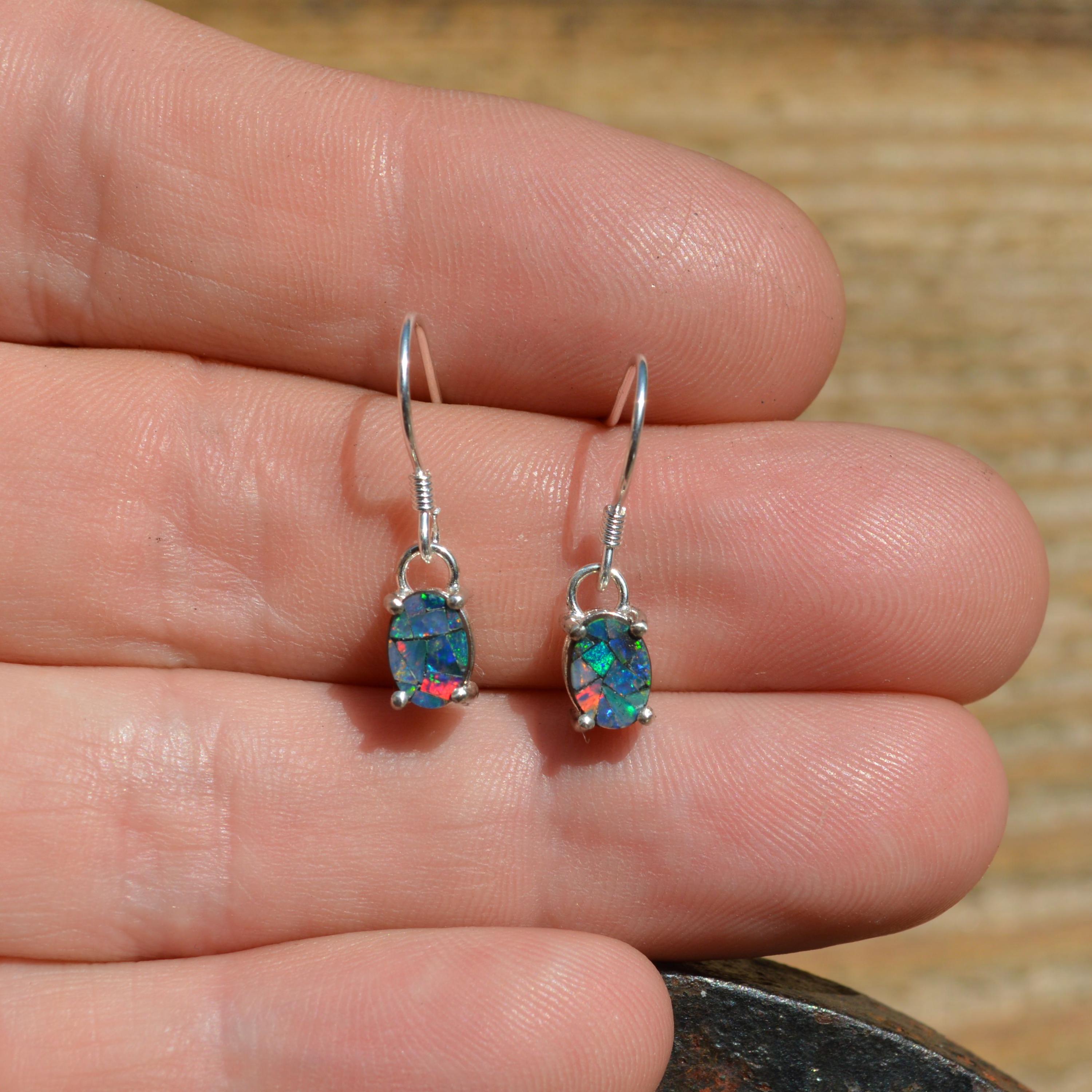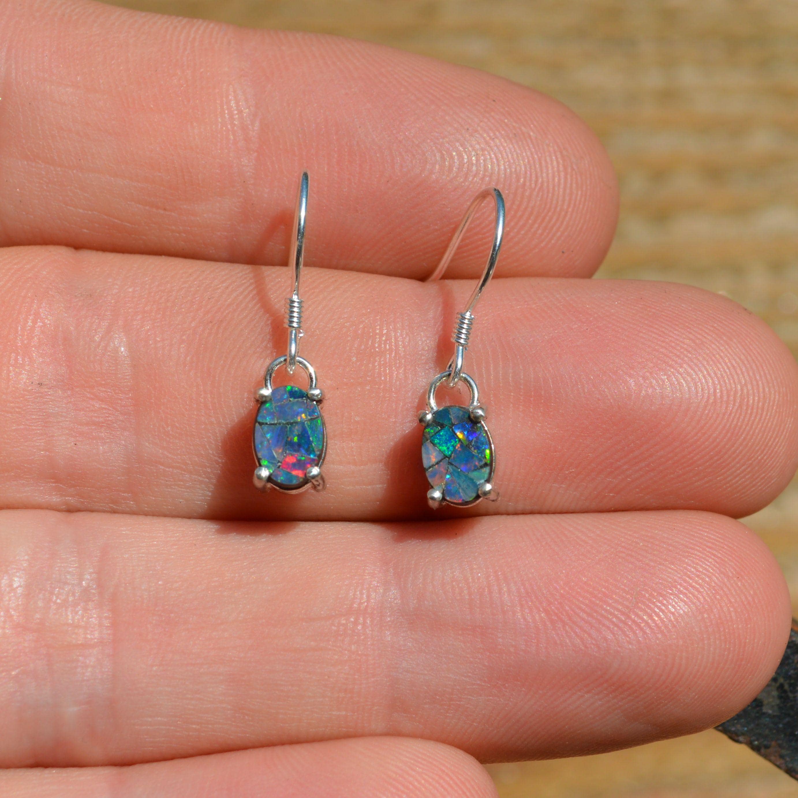 Sterling Silver Triplet Opal Dangle Earrings, Oval