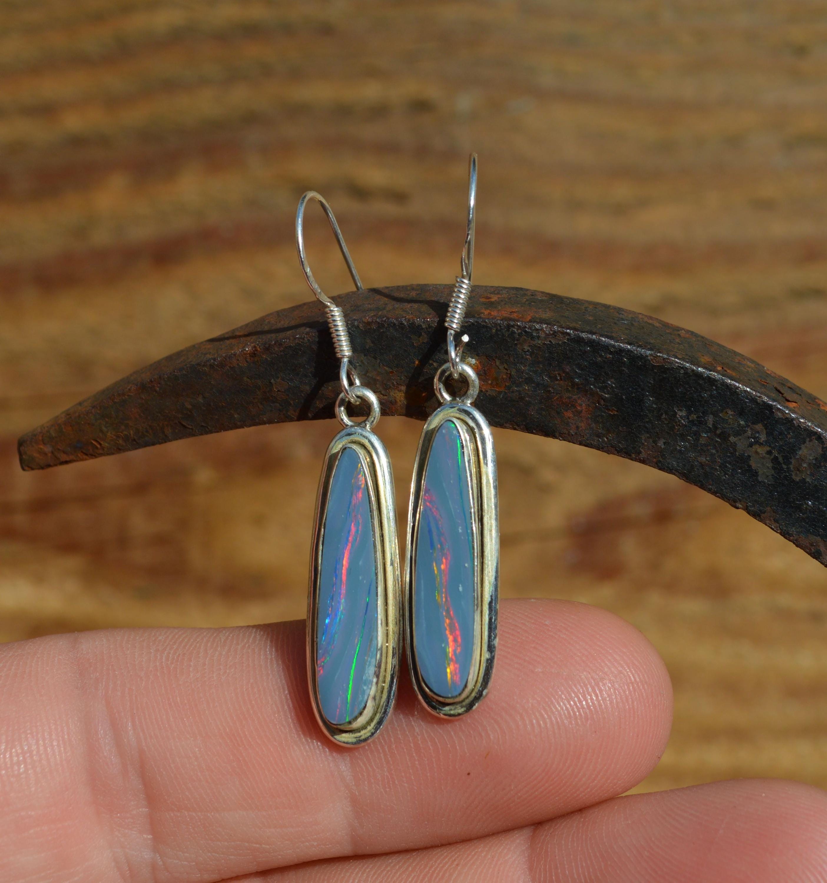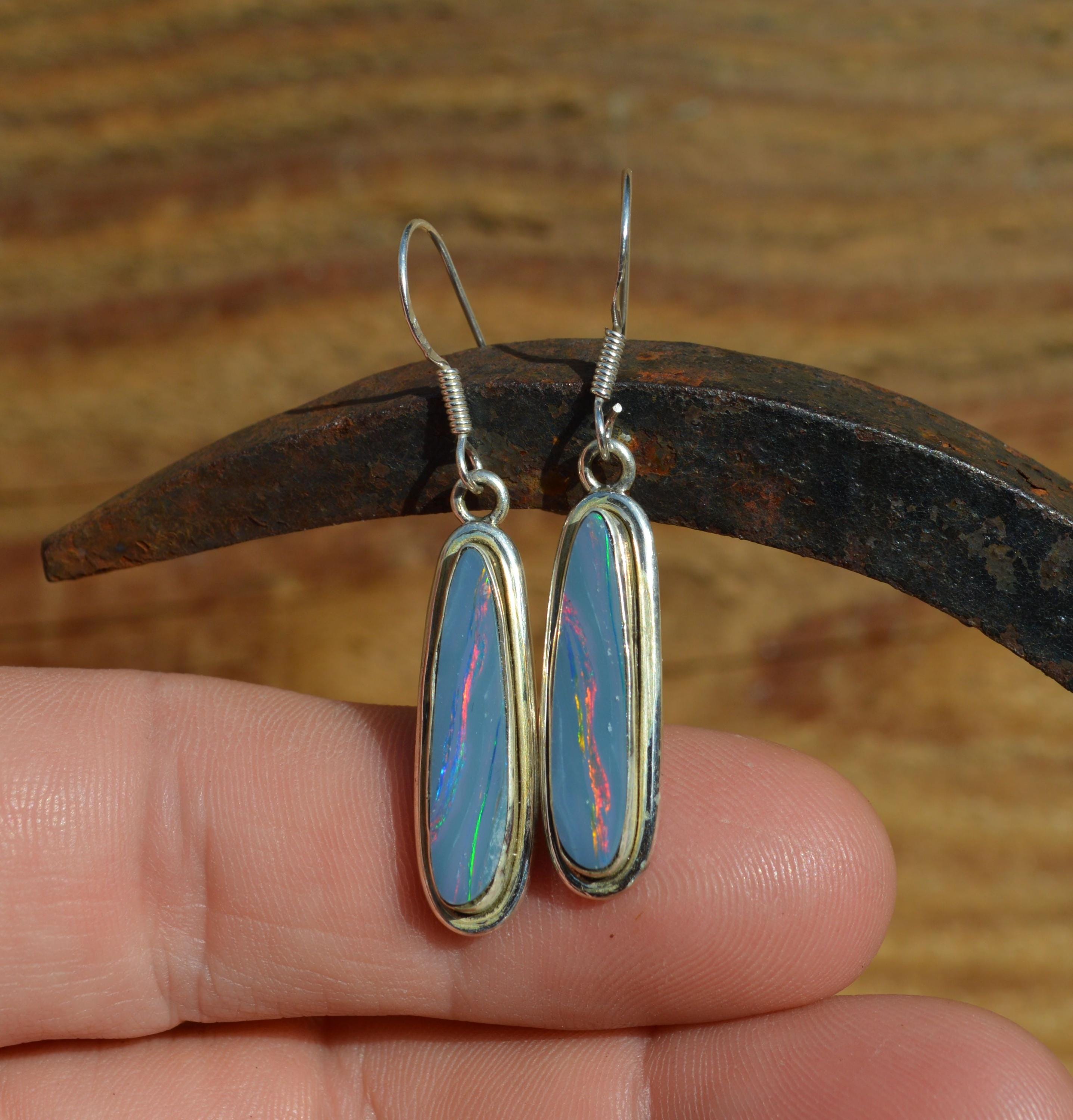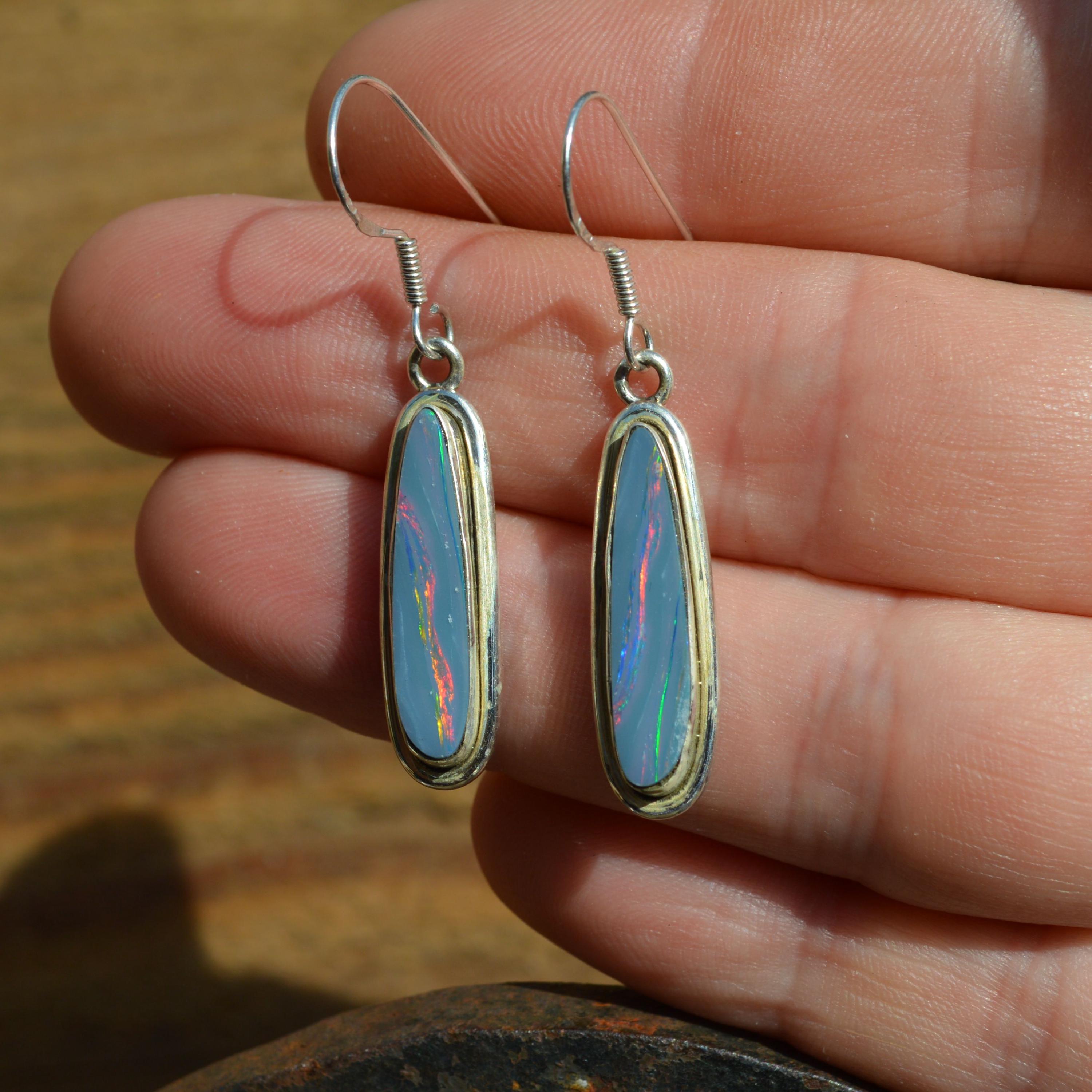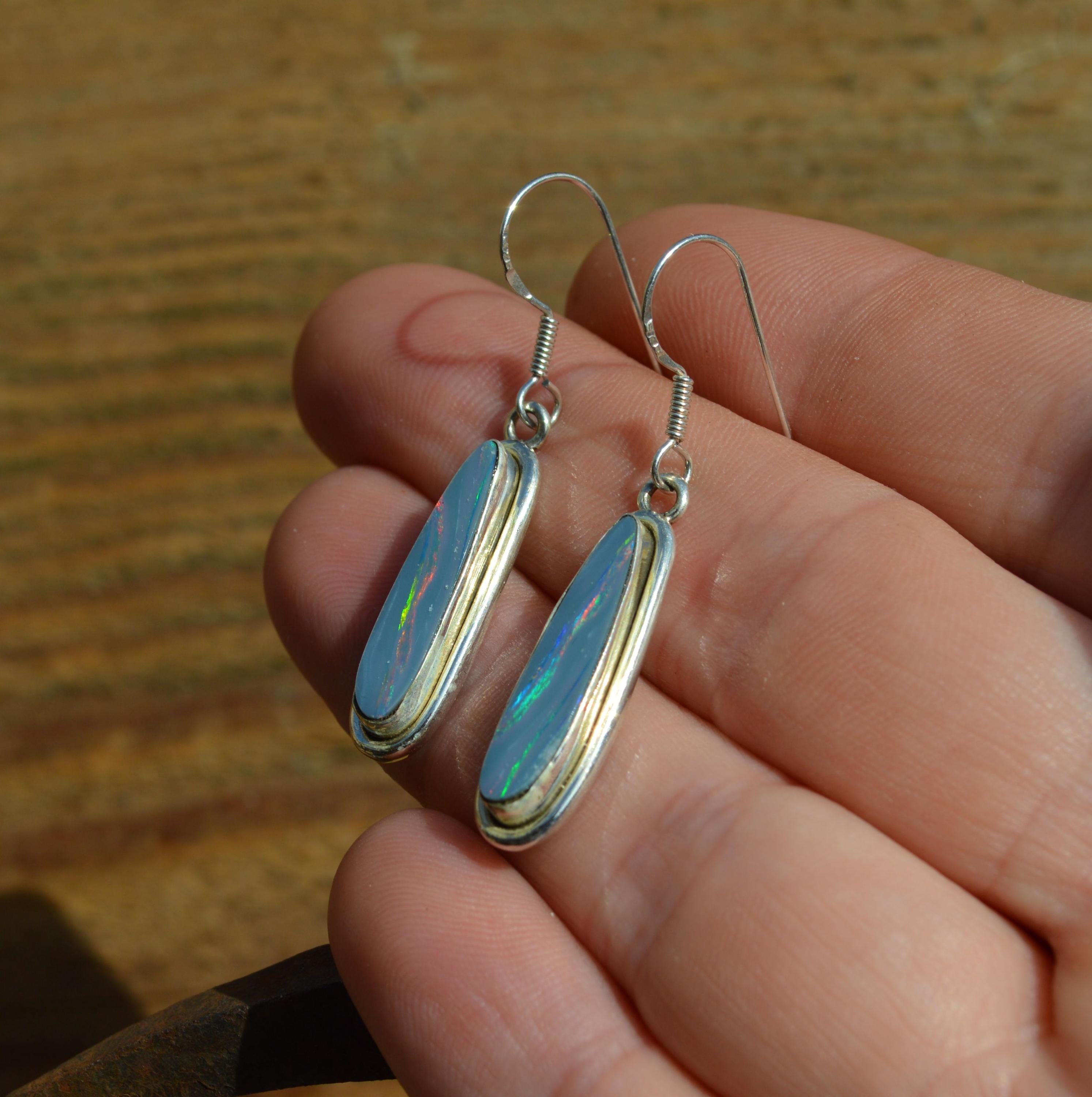 Handmade Sterling Silver Opal Doublet Drop Earrings
