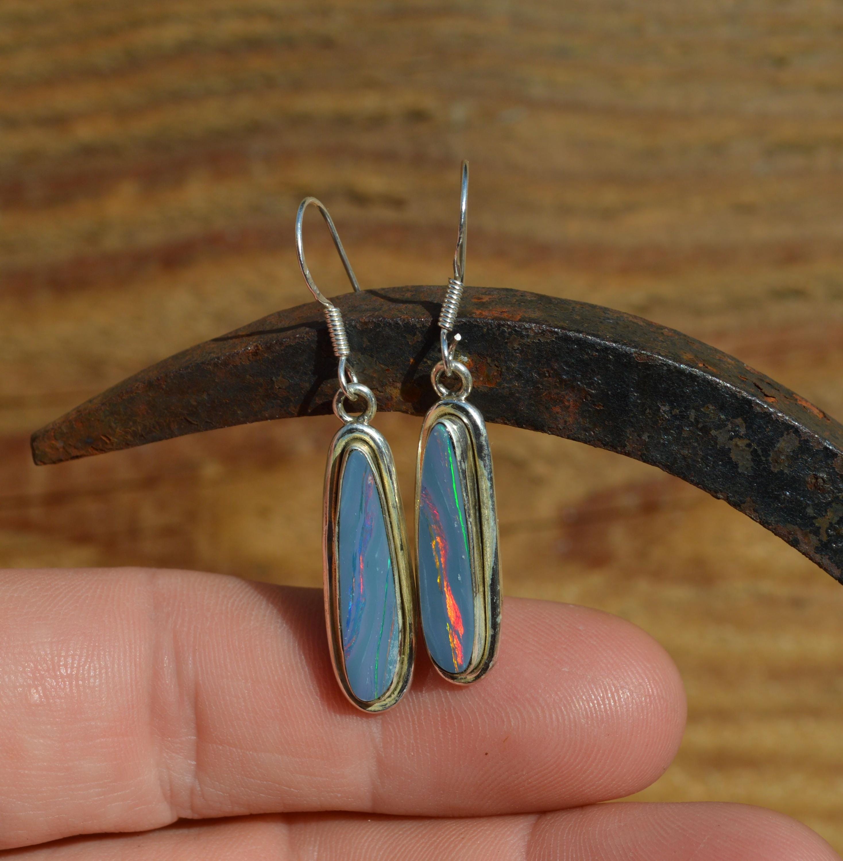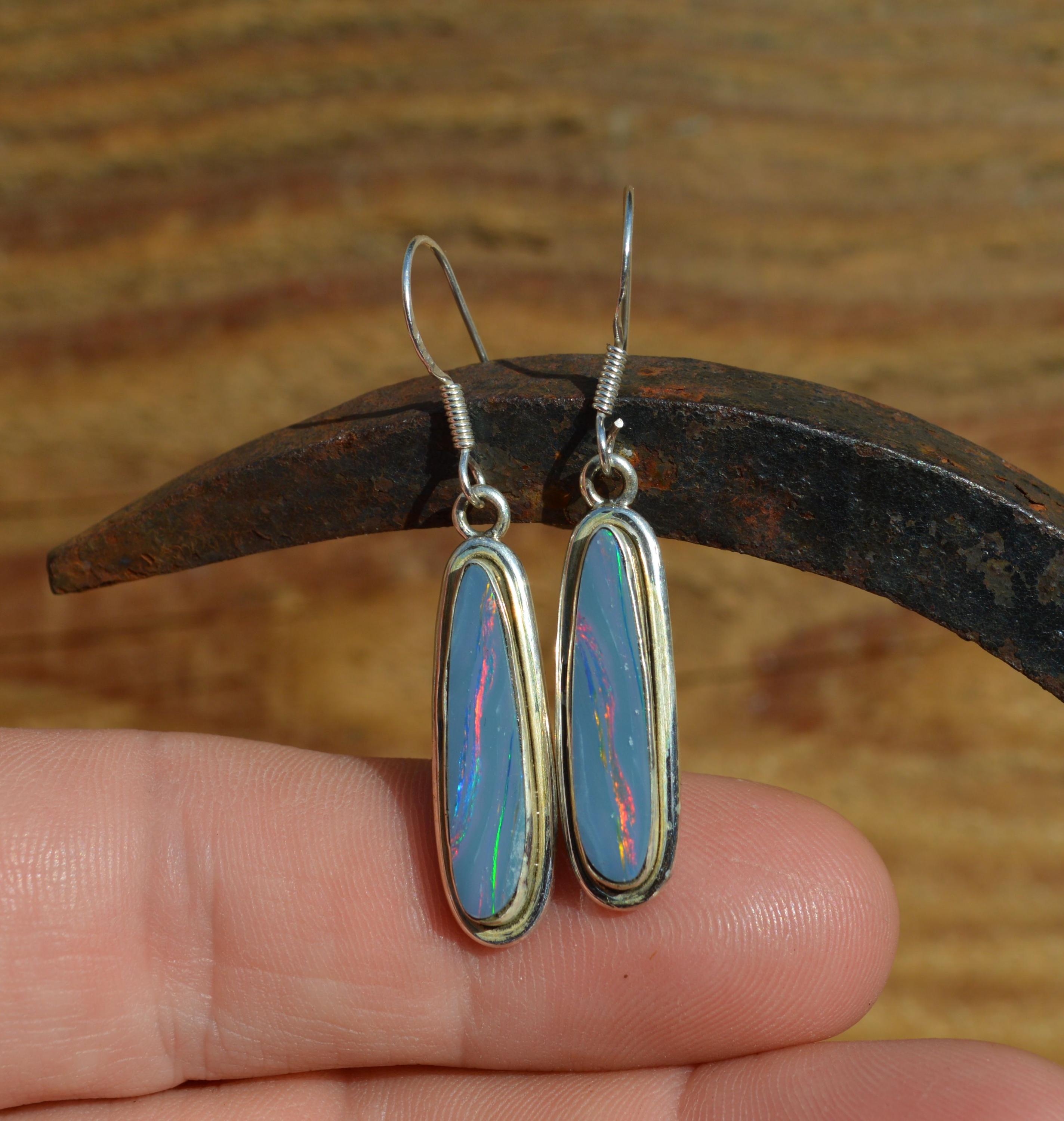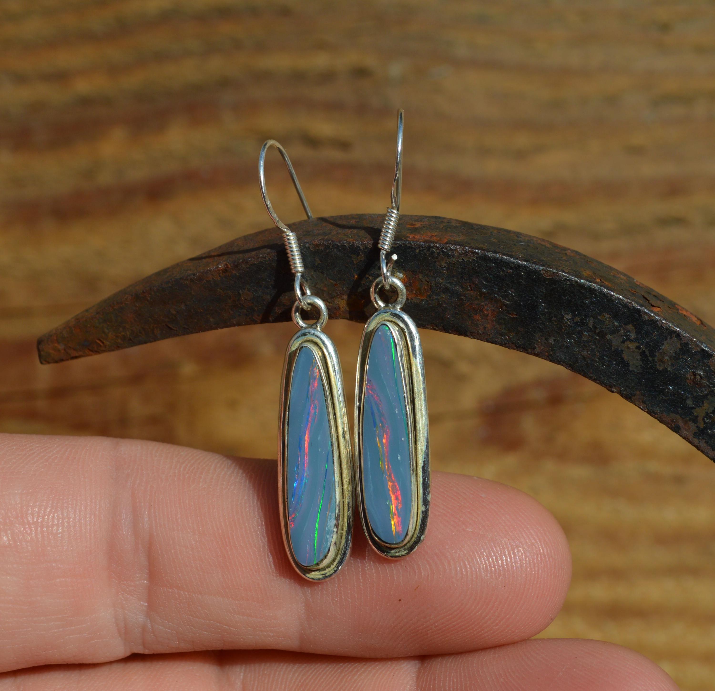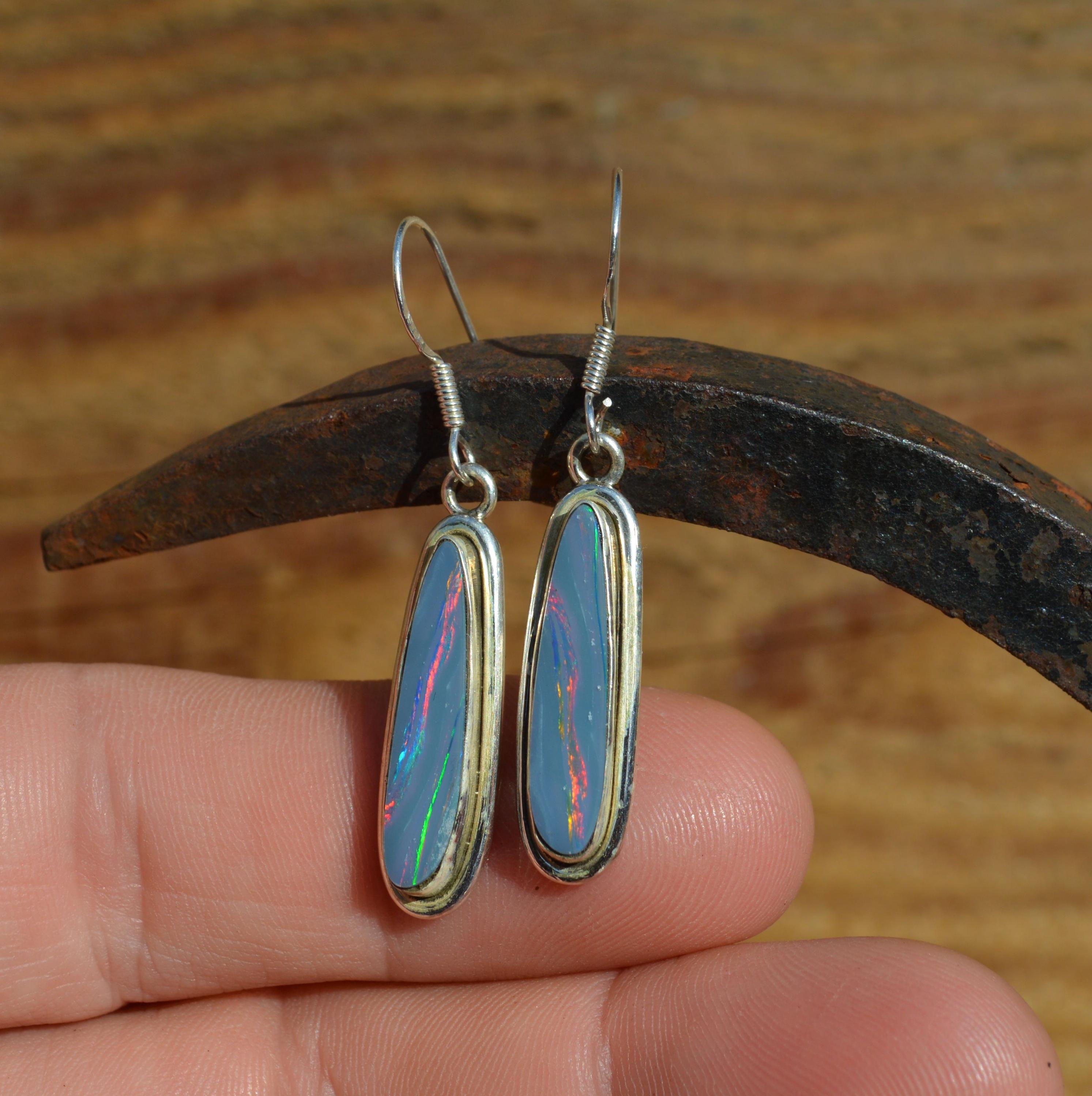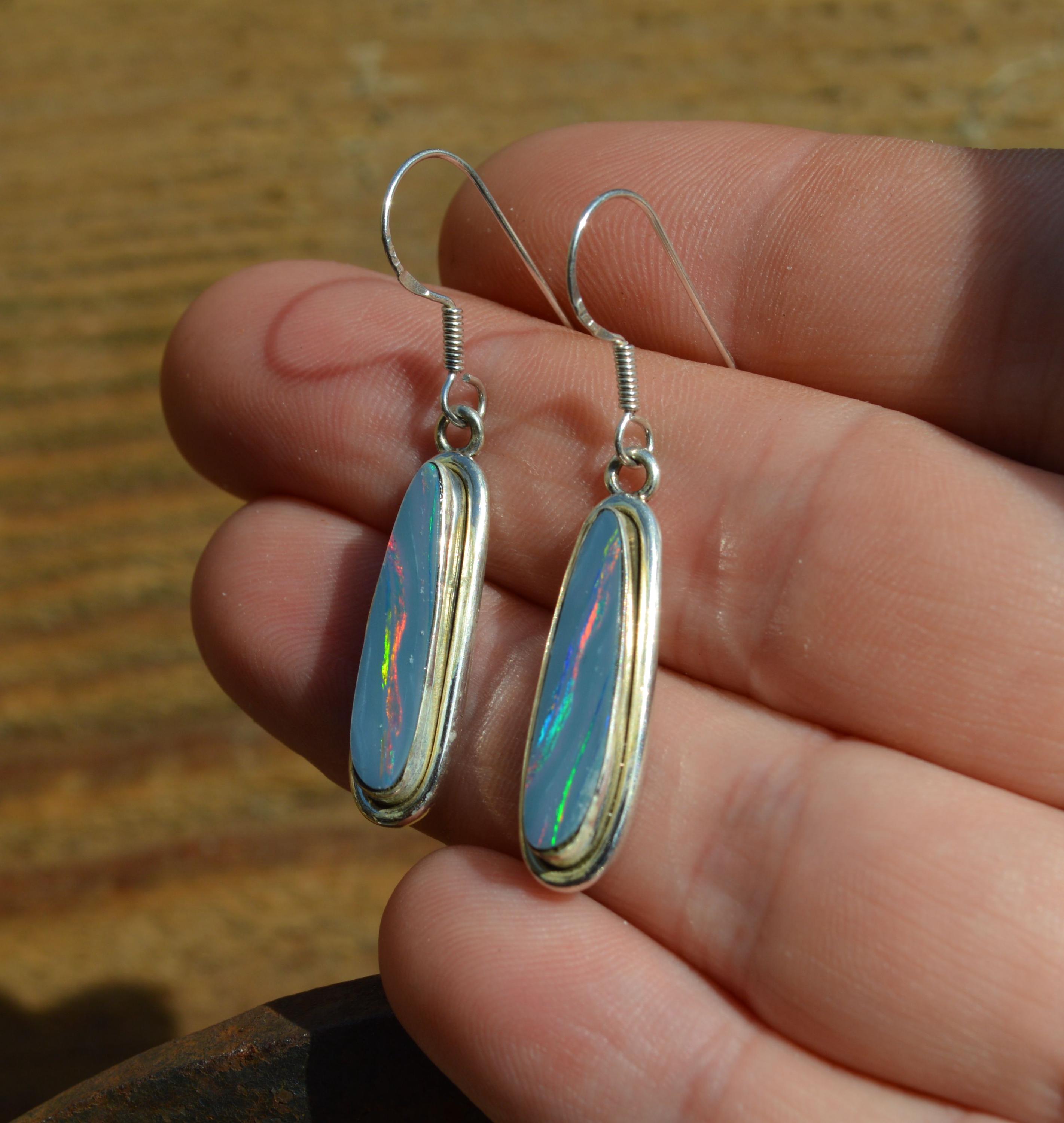 Handmade Sterling Silver Opal Doublet Drop Earrings