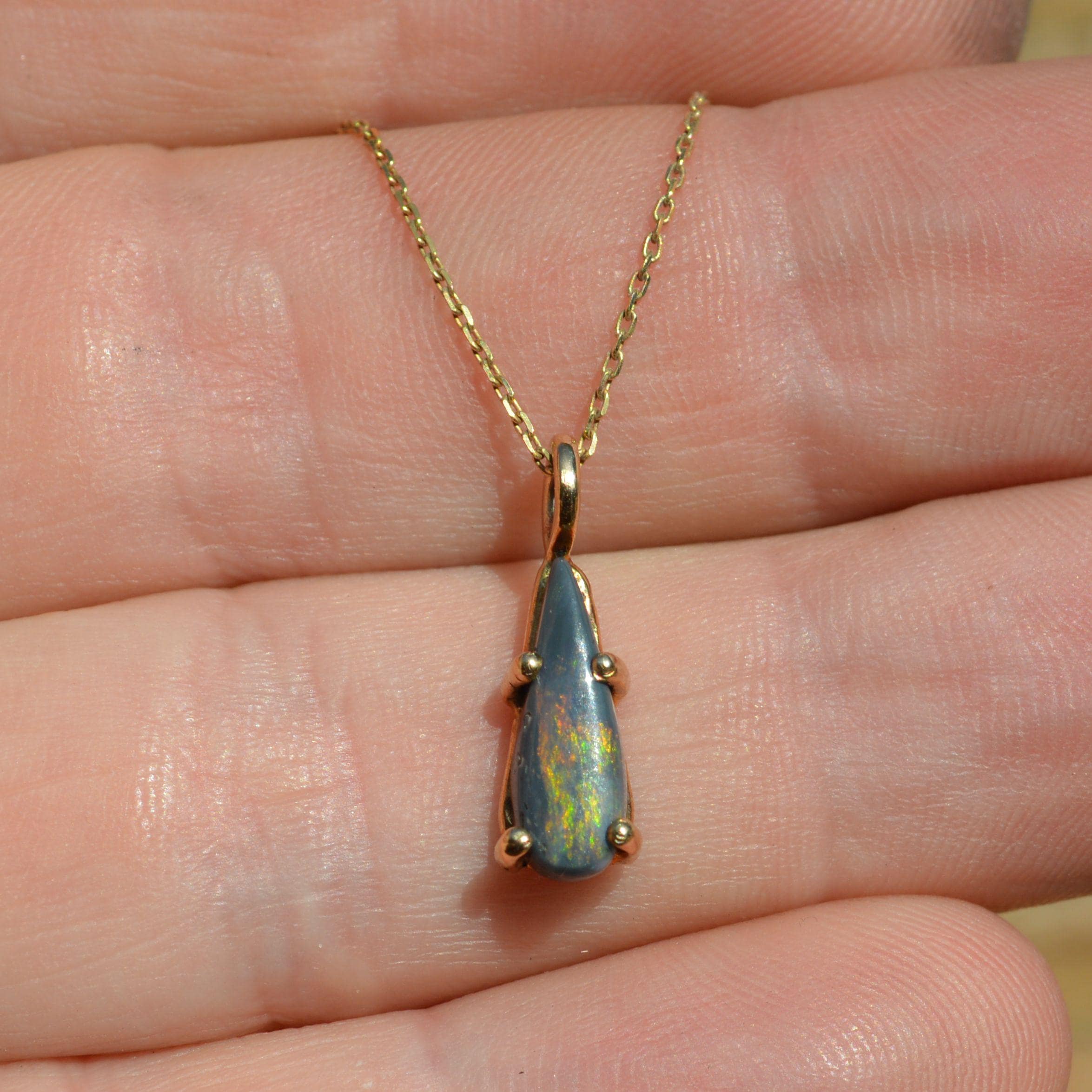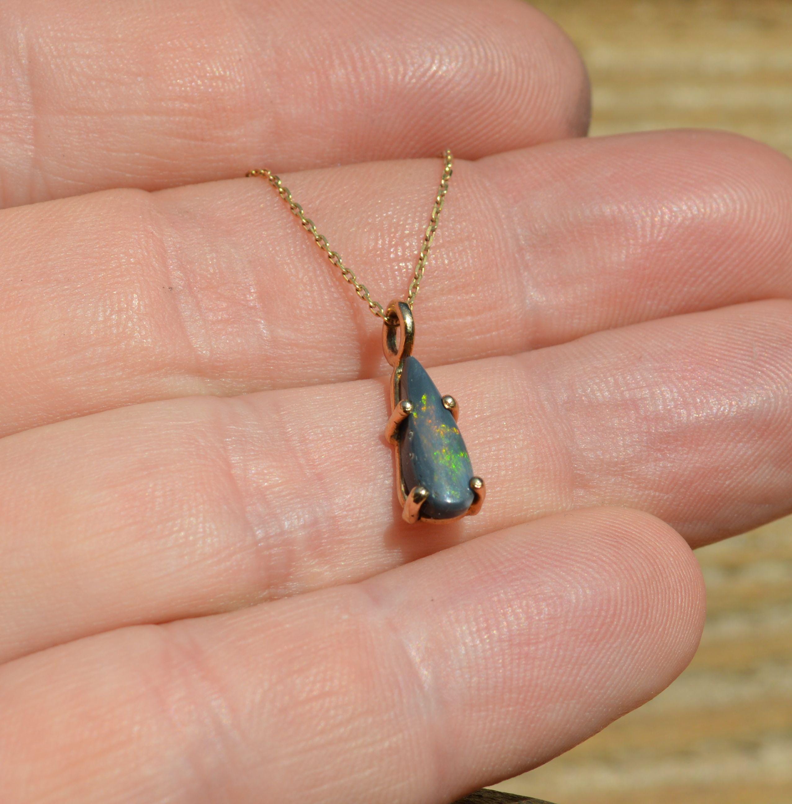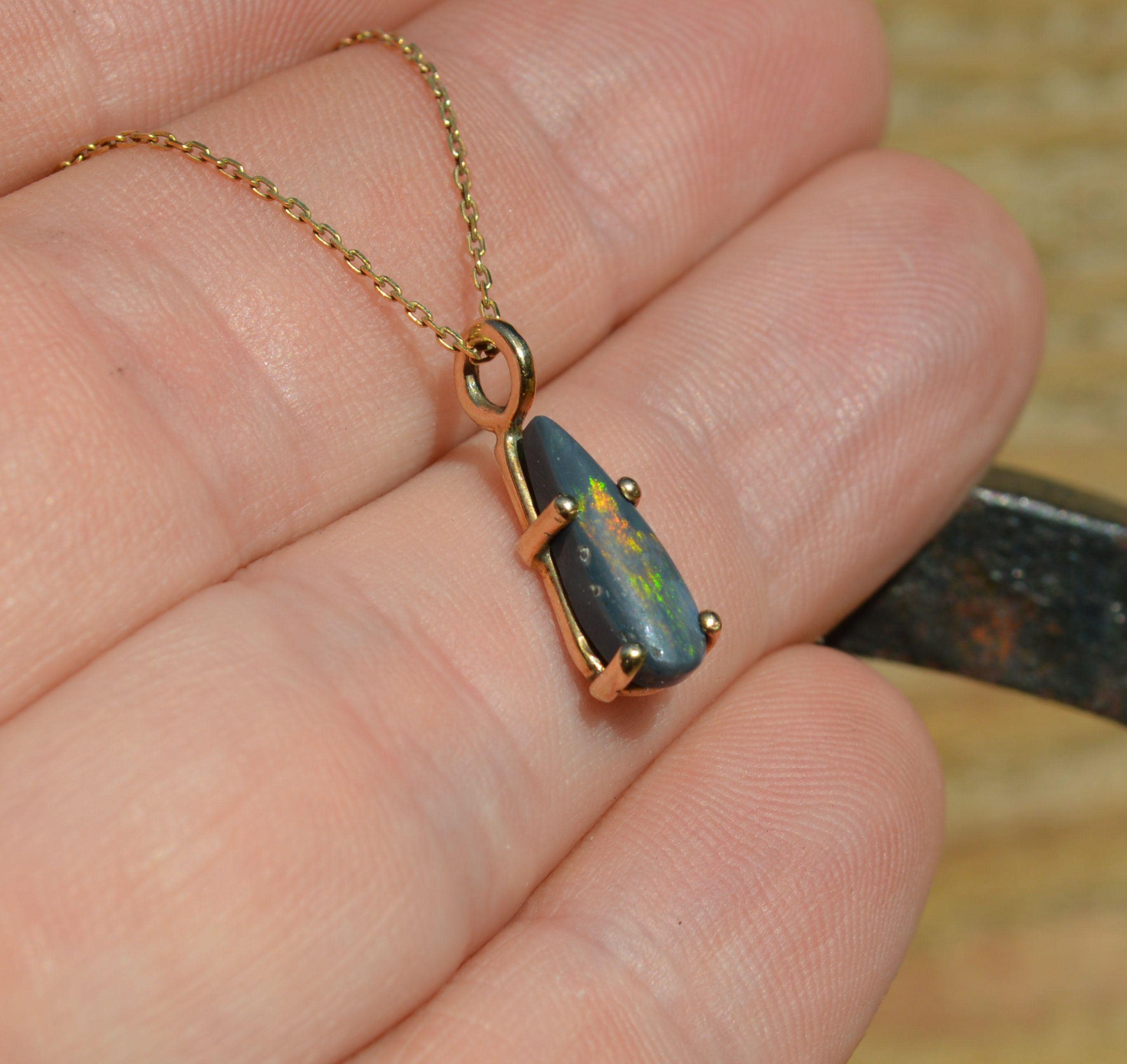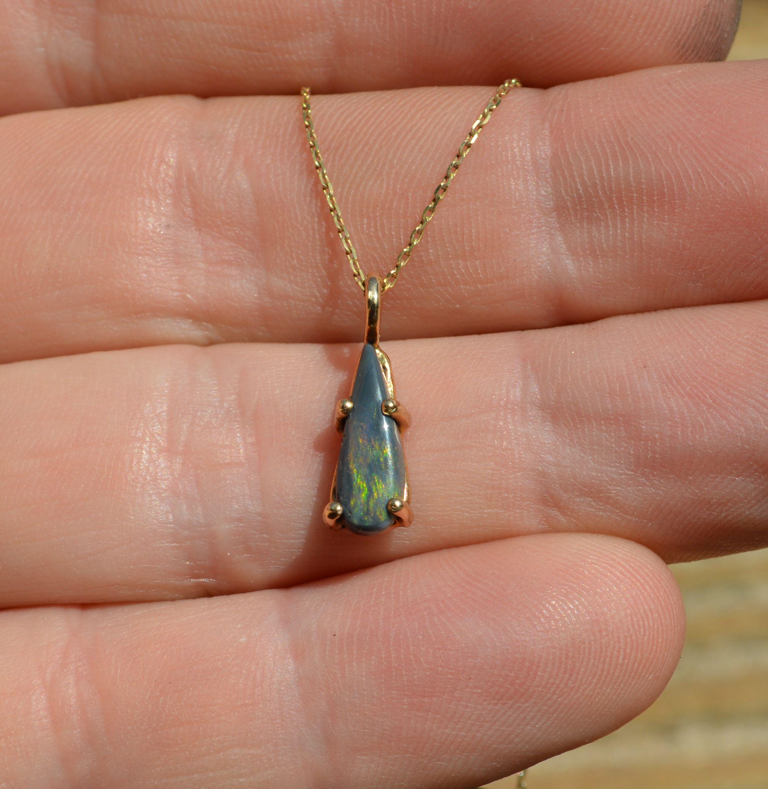9ct Gold Australian Black Opal Crystal Pendant, Teardrop 0.98 Carats