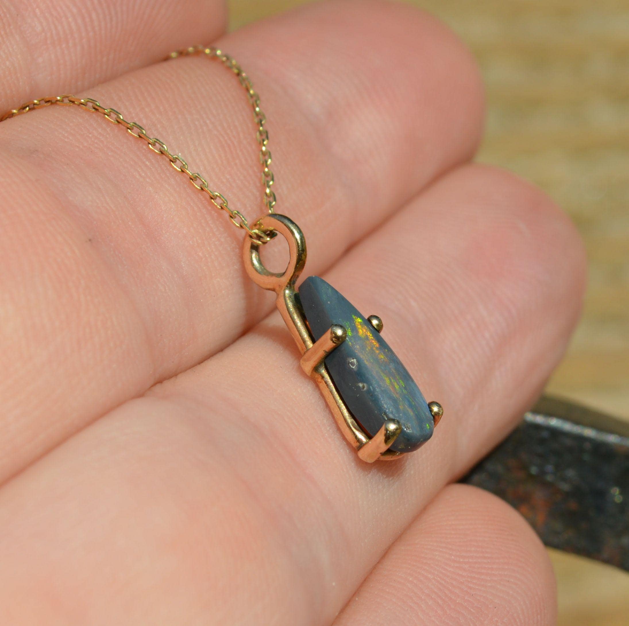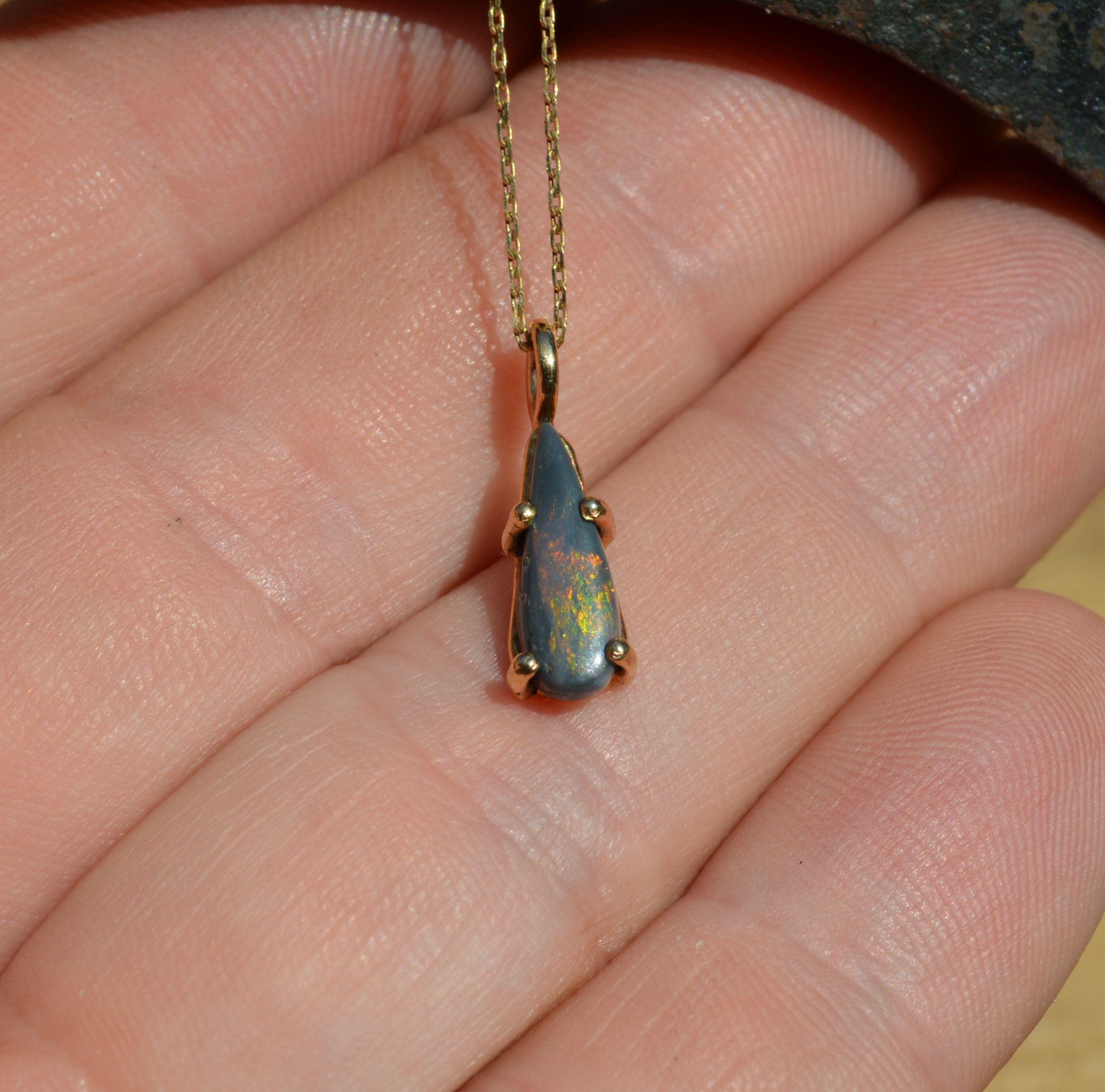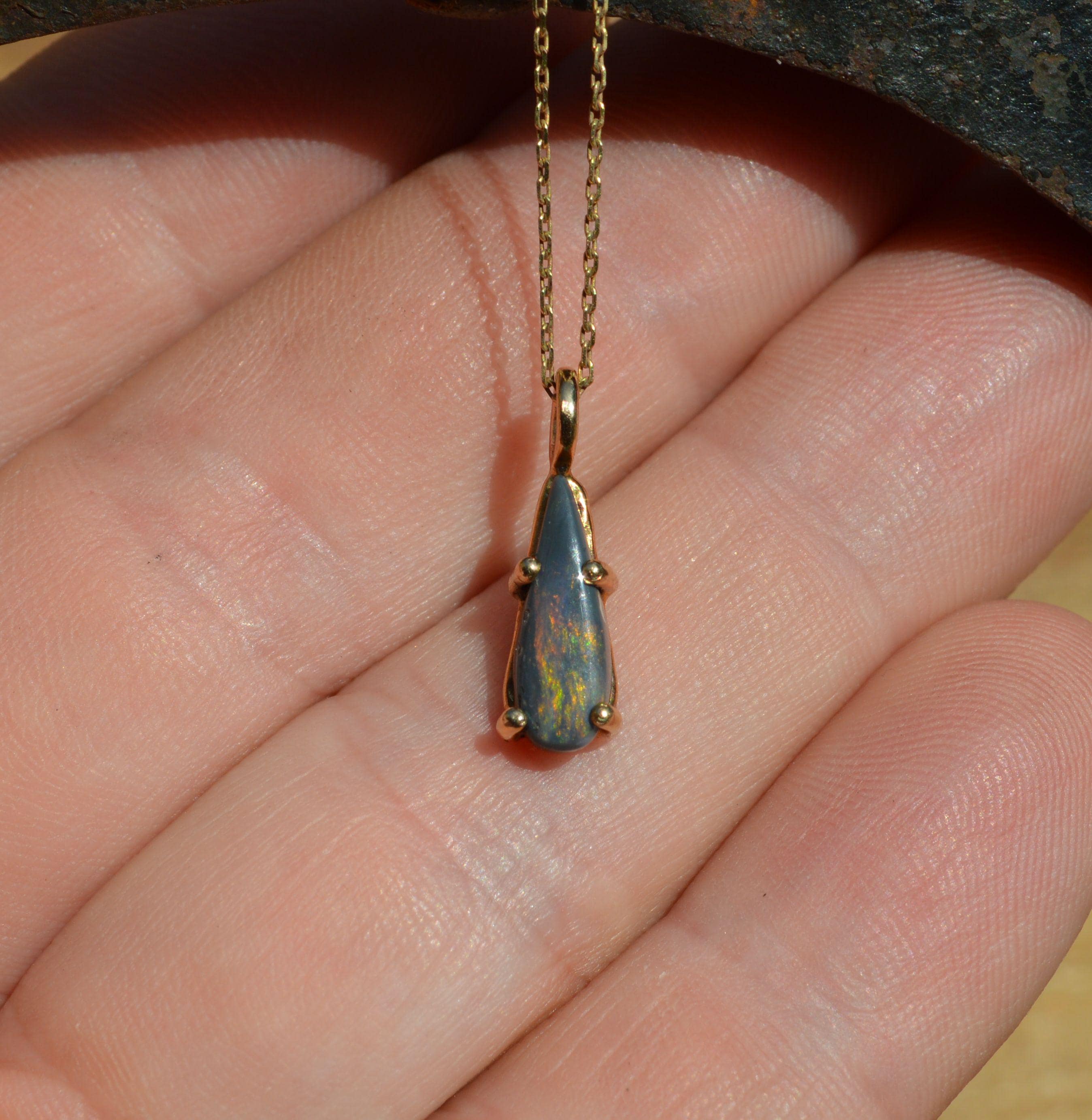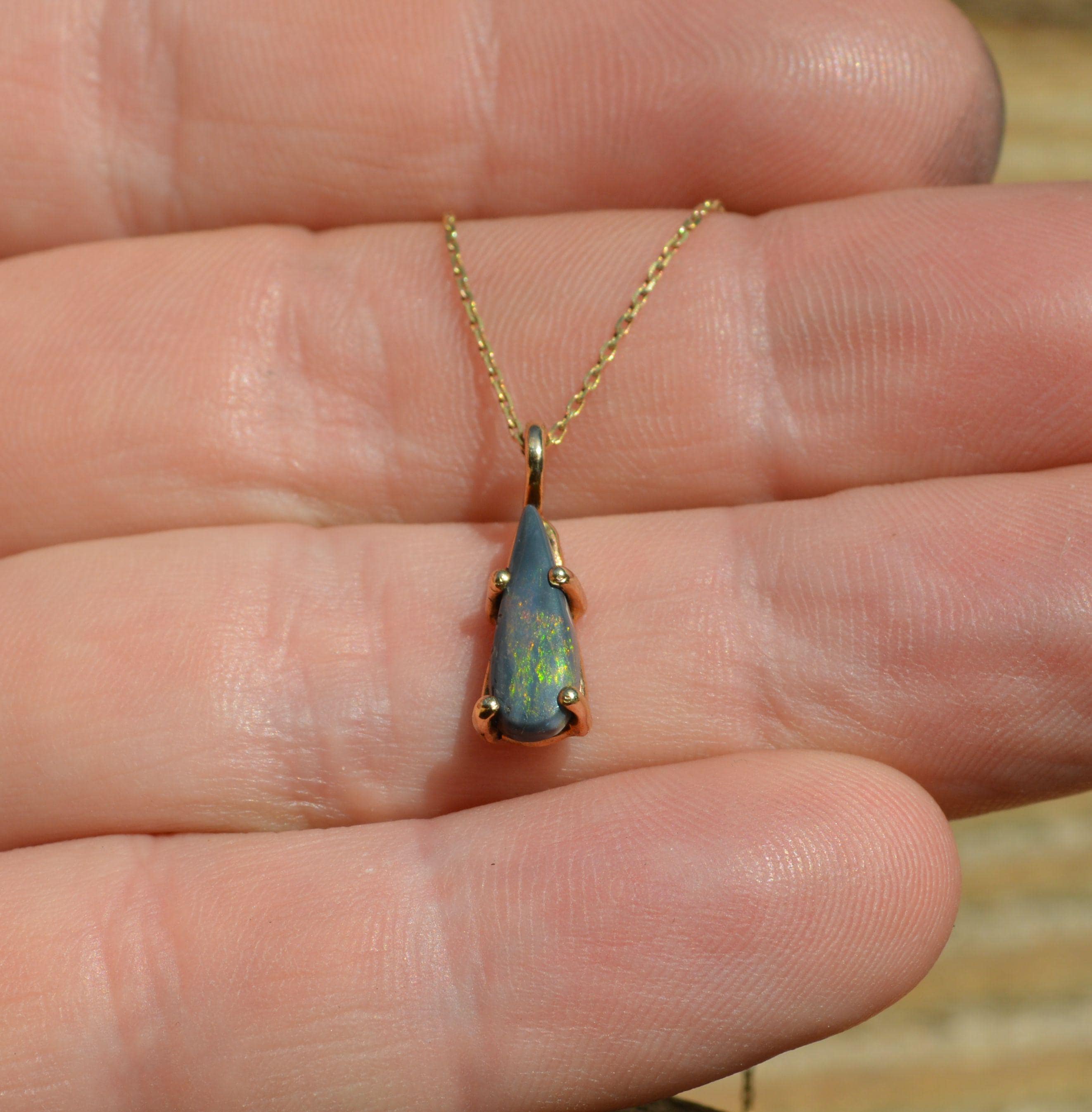 9ct Gold Australian Black Opal Crystal Pendant, Teardrop 0.98 Carats