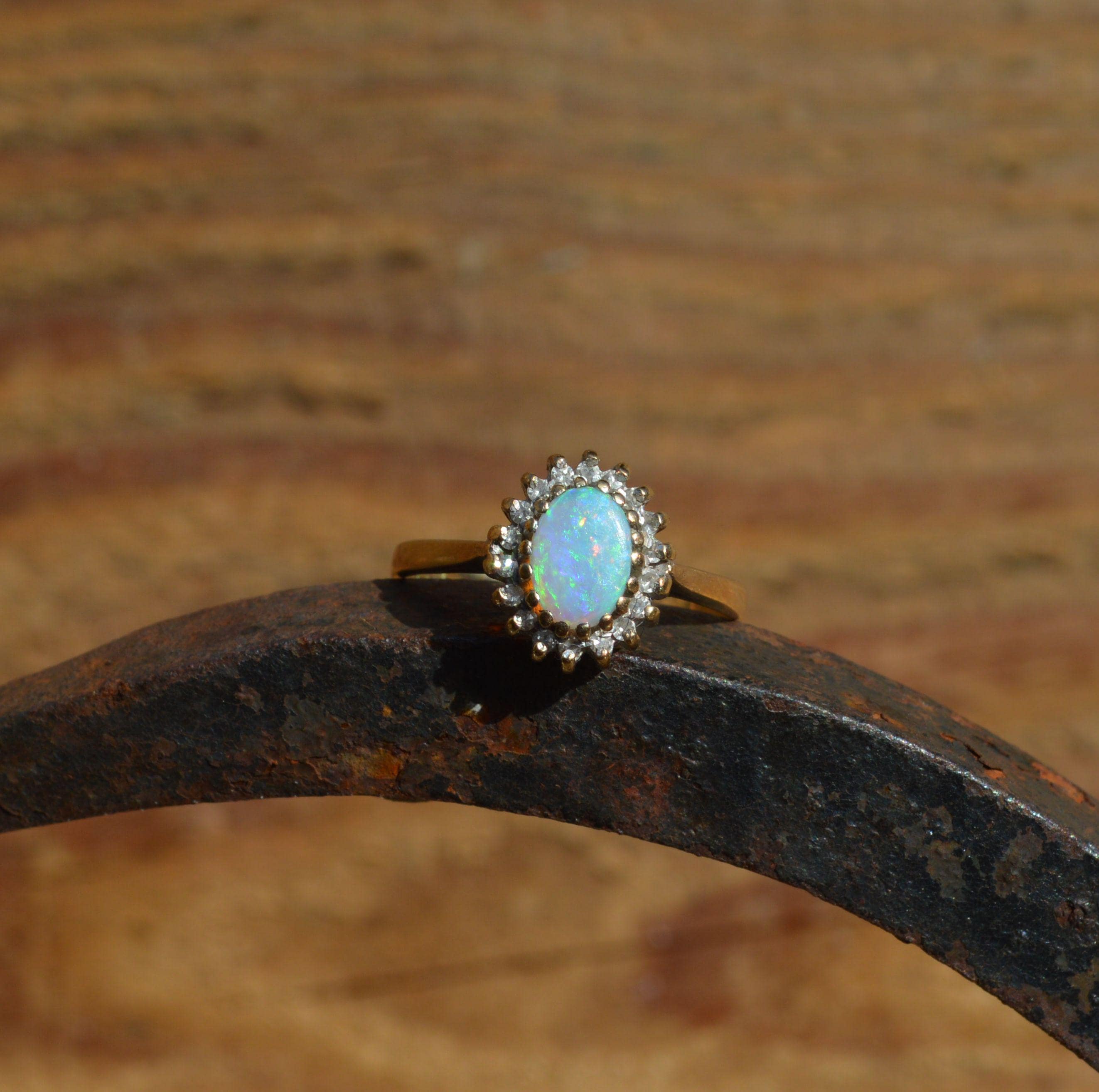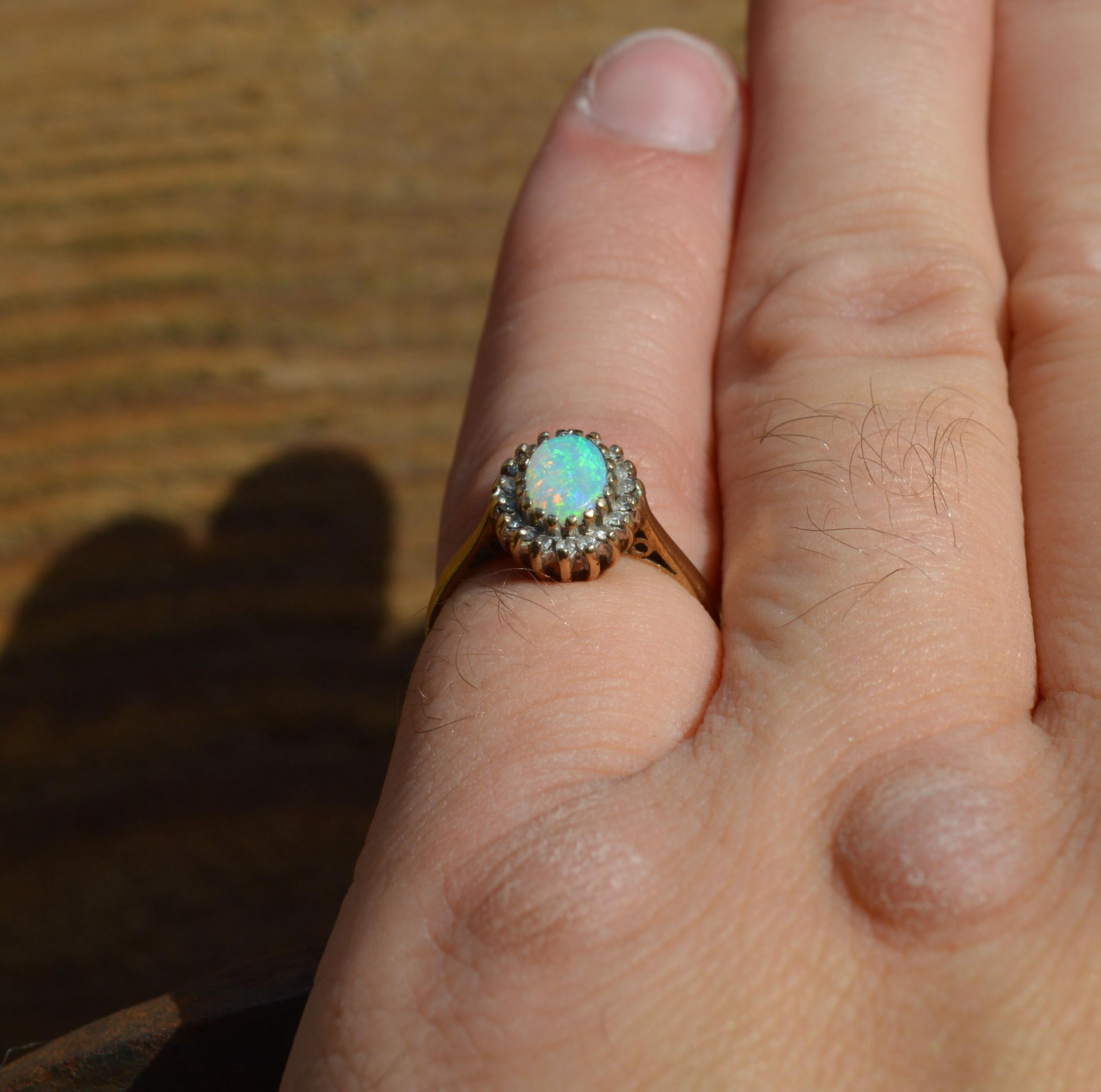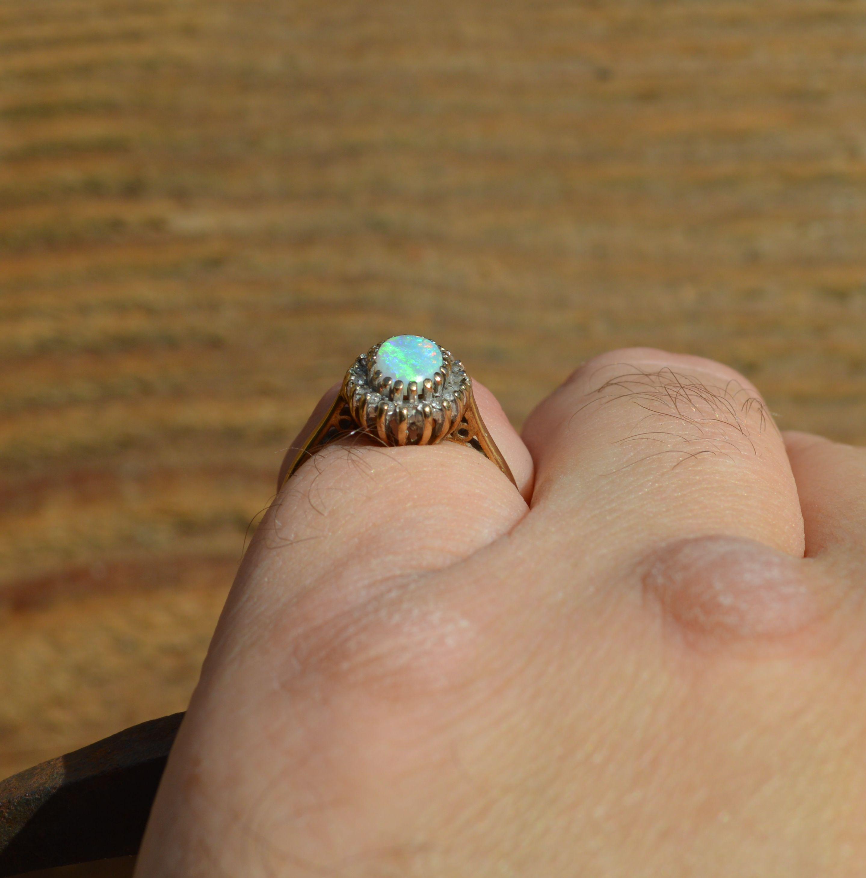 Gold Opal Diamond Cluster Ring, 9ct Opal Cluster Ring