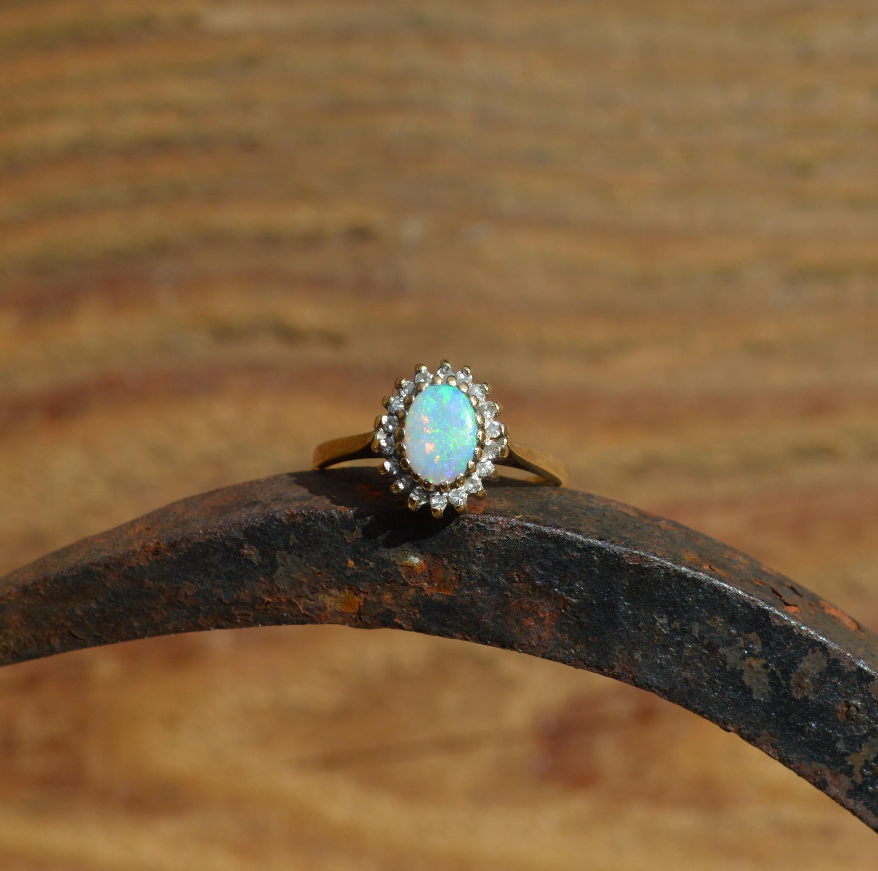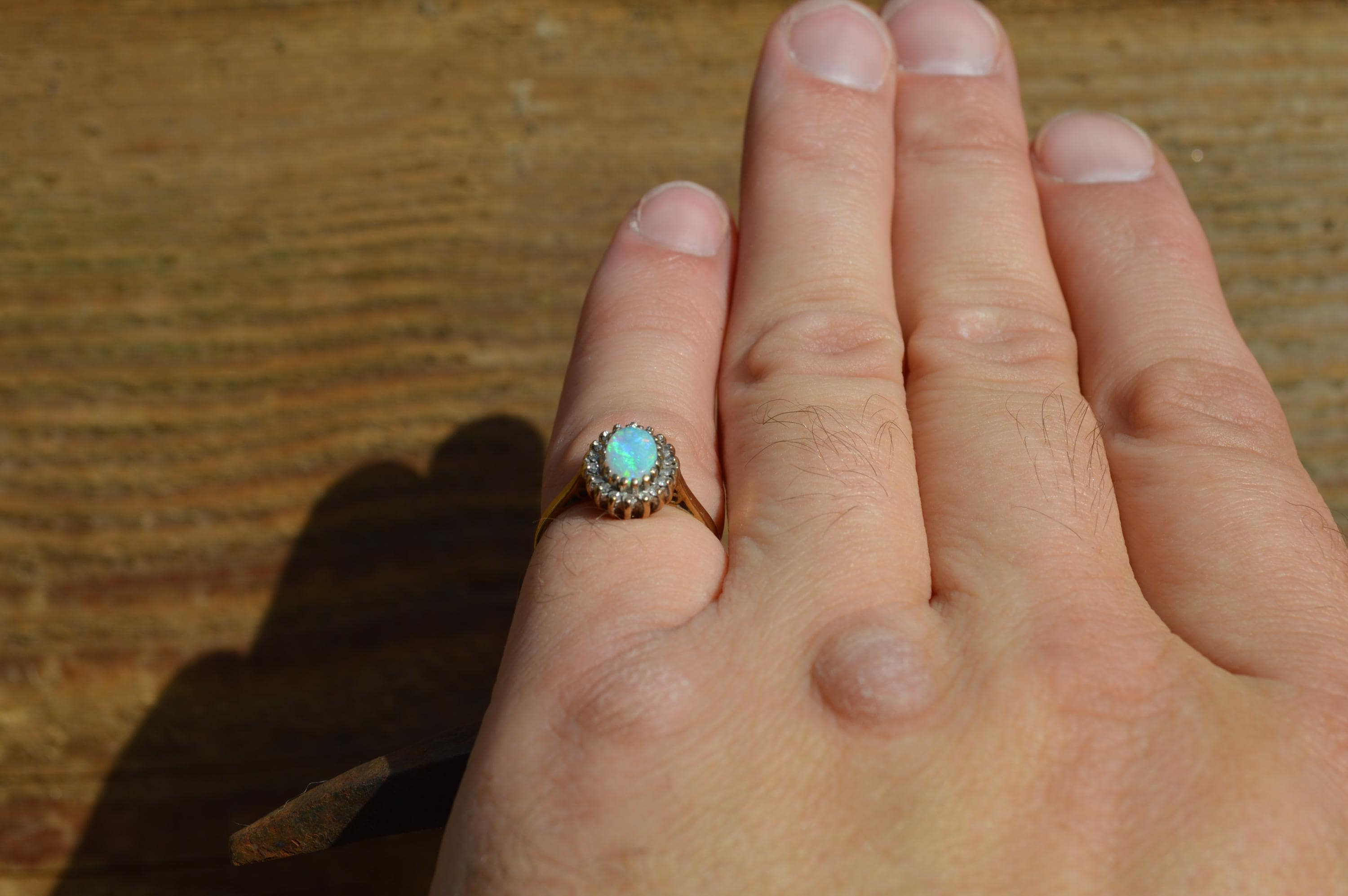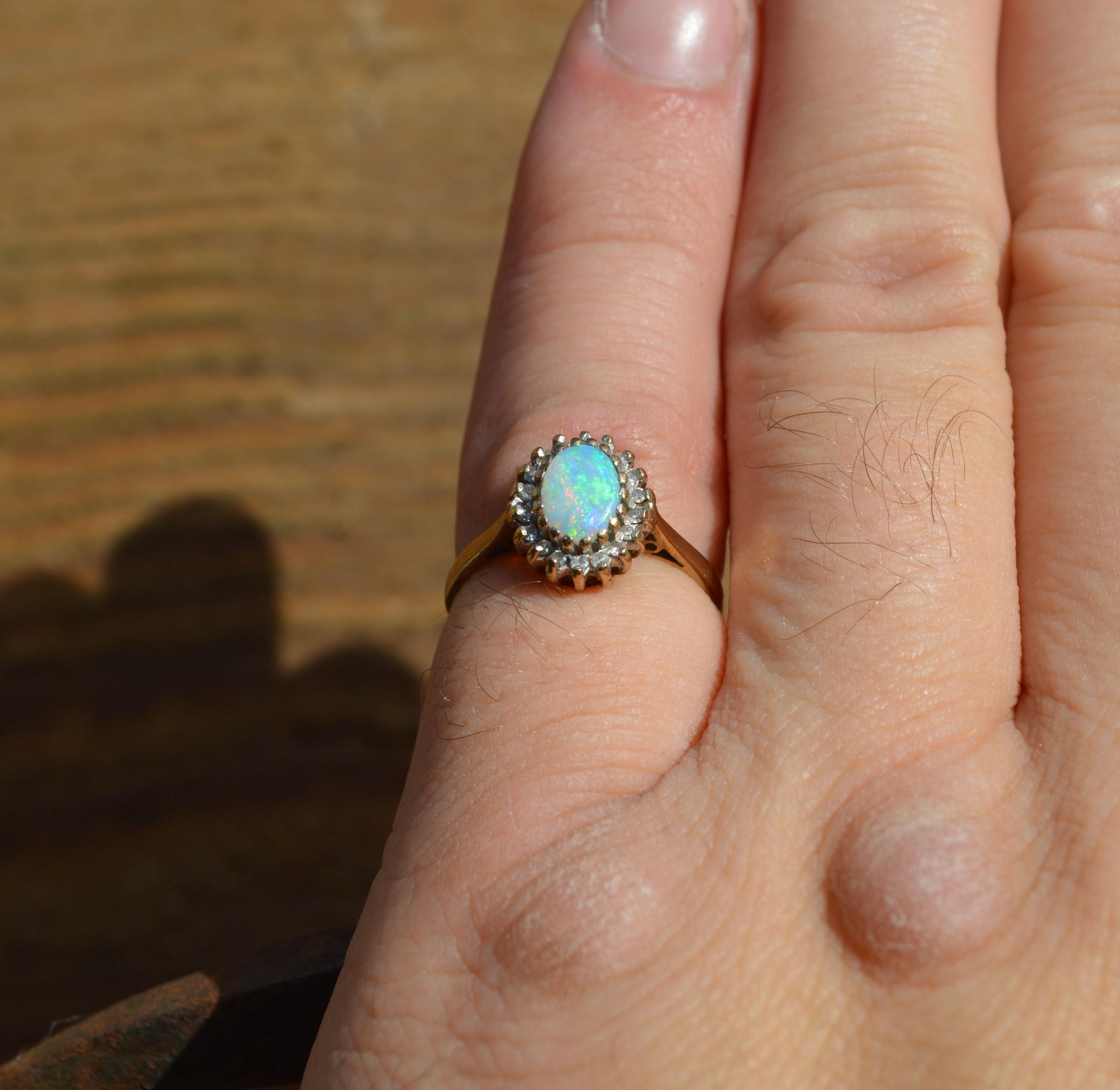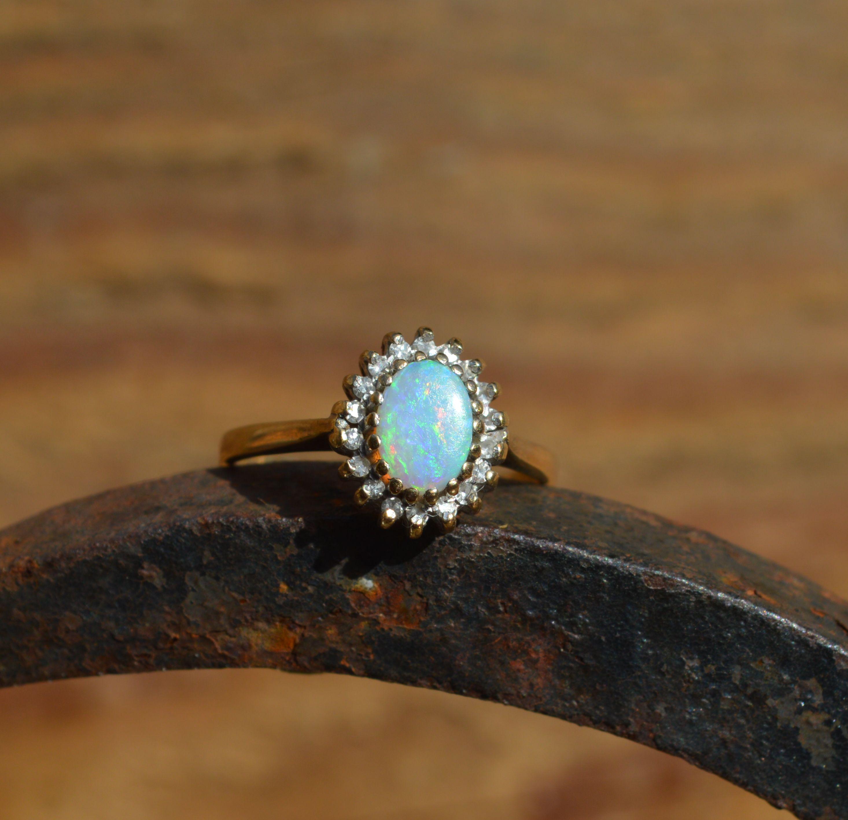 Gold Opal Diamond Cluster Ring, 9ct Opal Cluster Ring