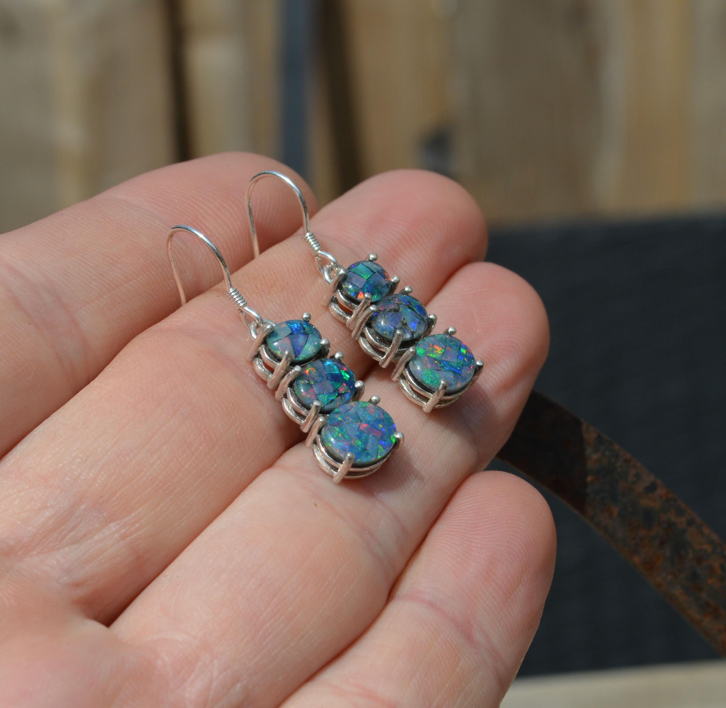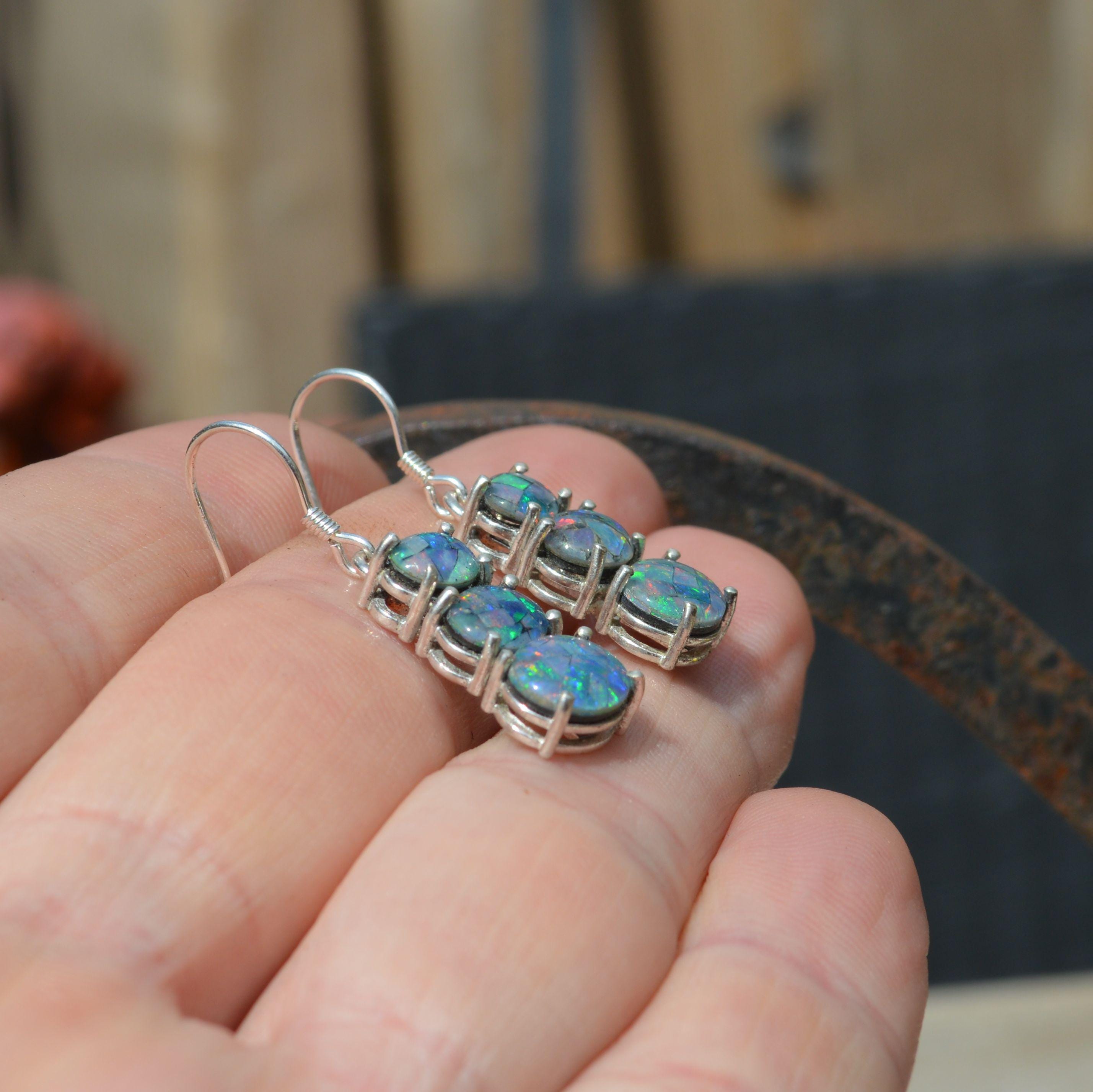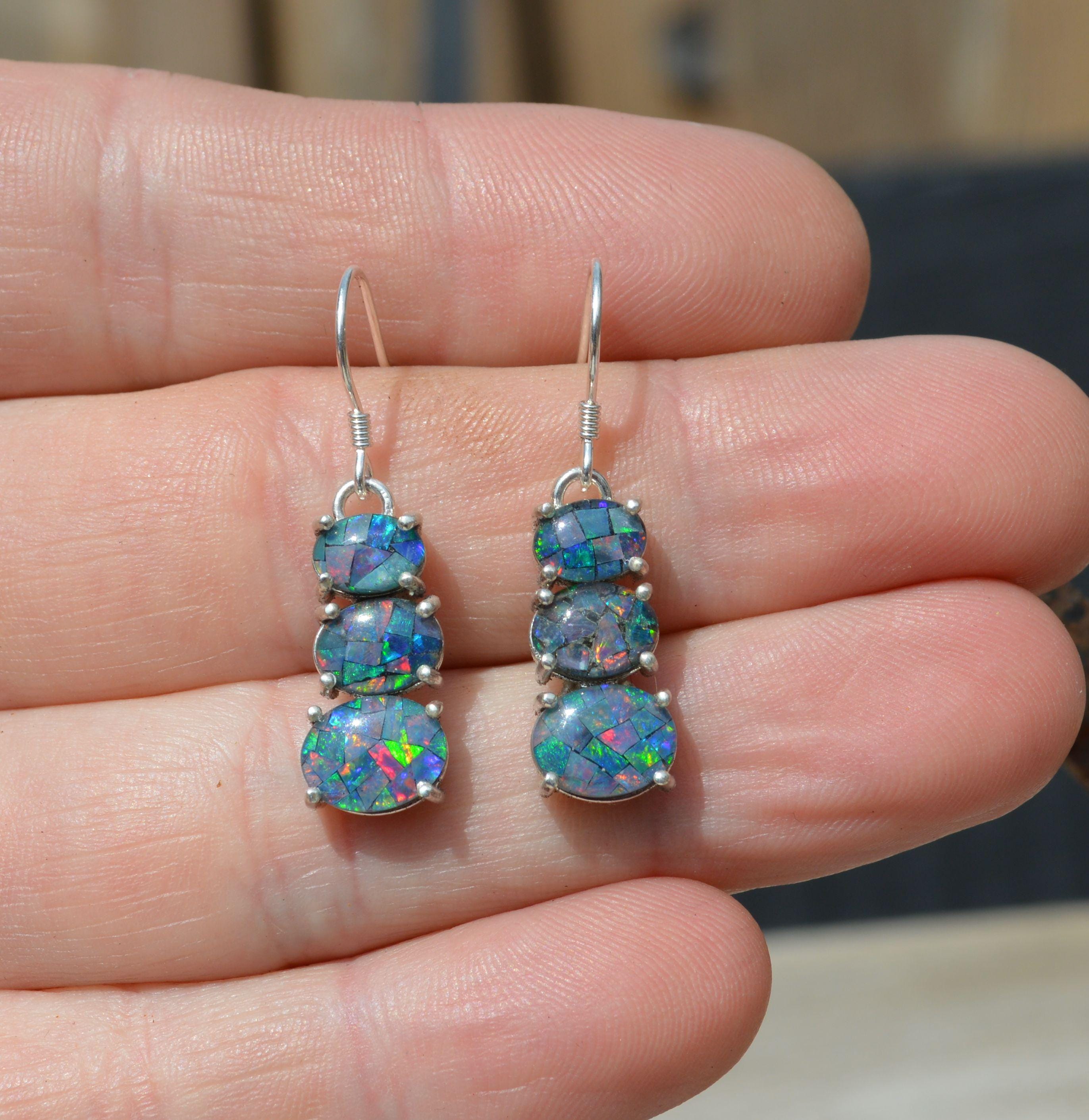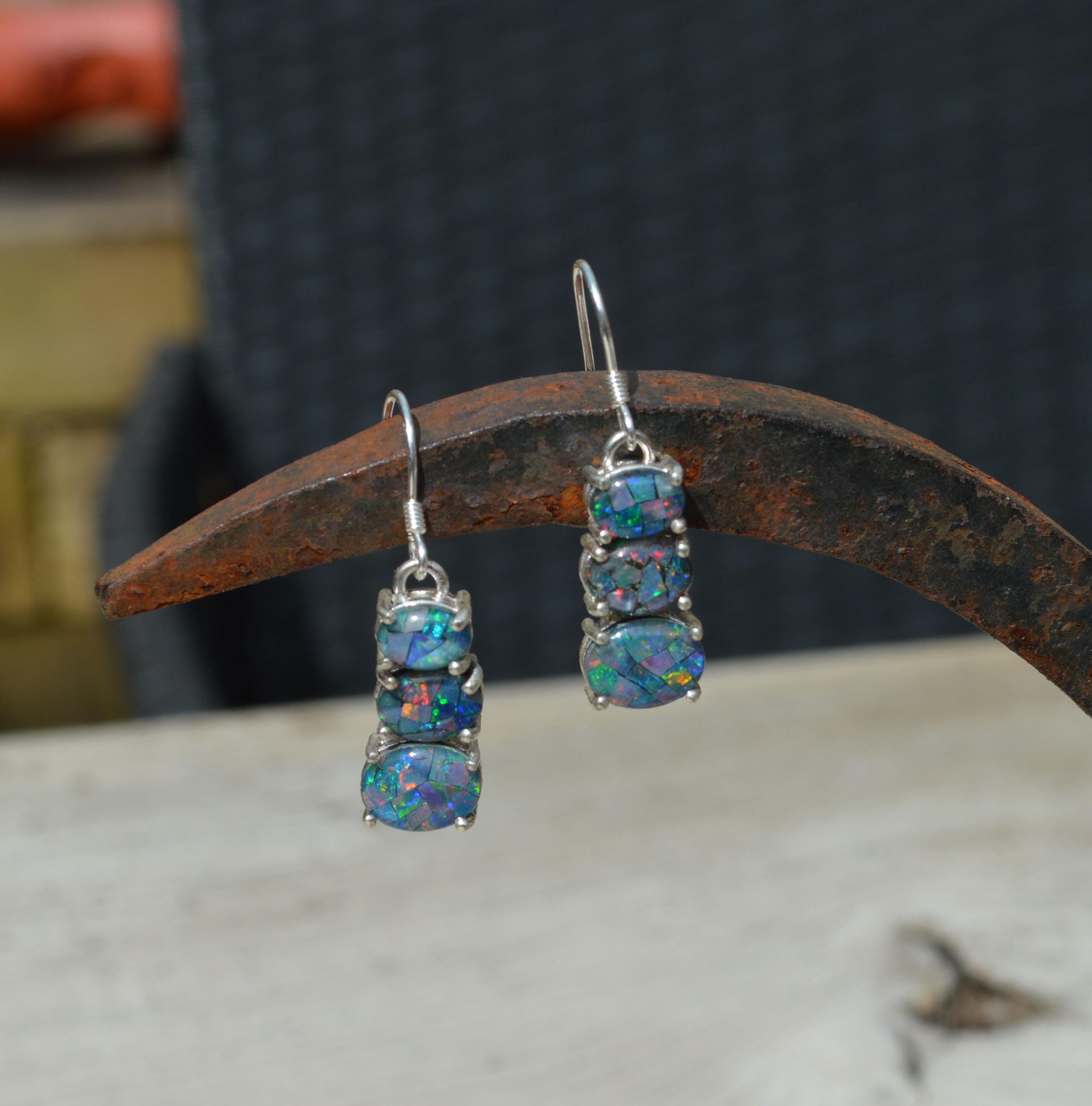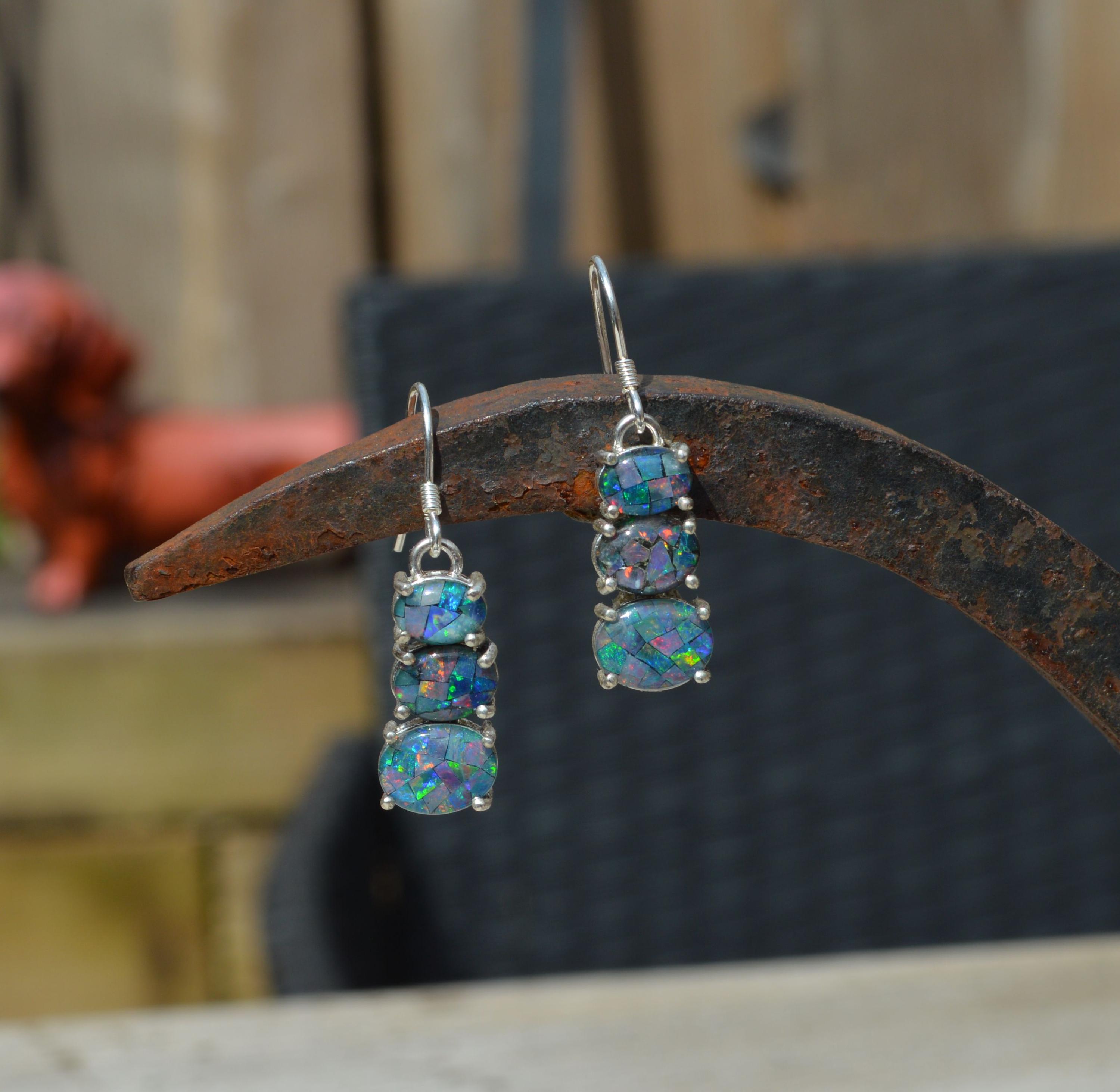 Sterling Silver Triplet Opal Dangle Earrings, Oval Australian Triplet Opals