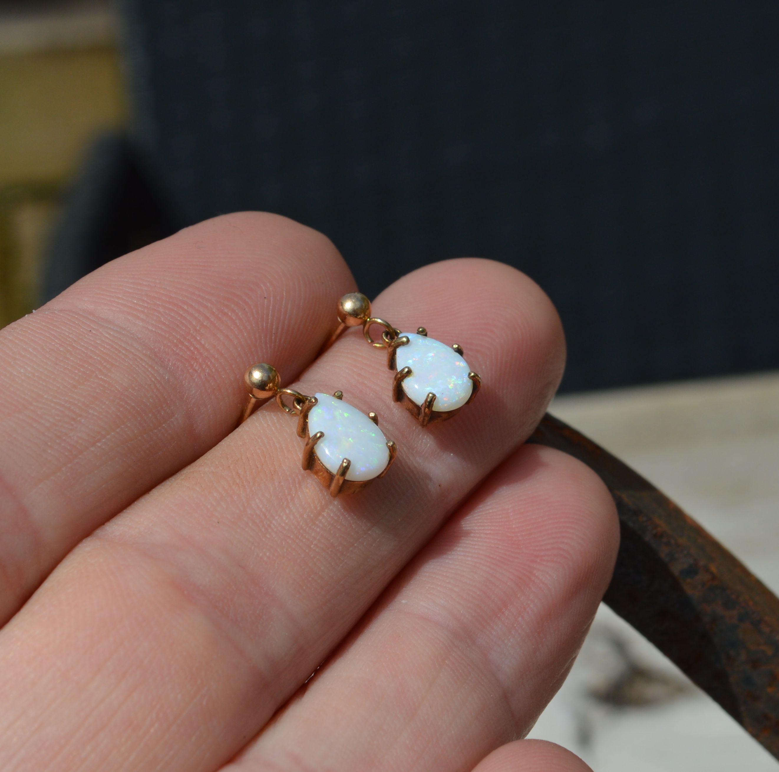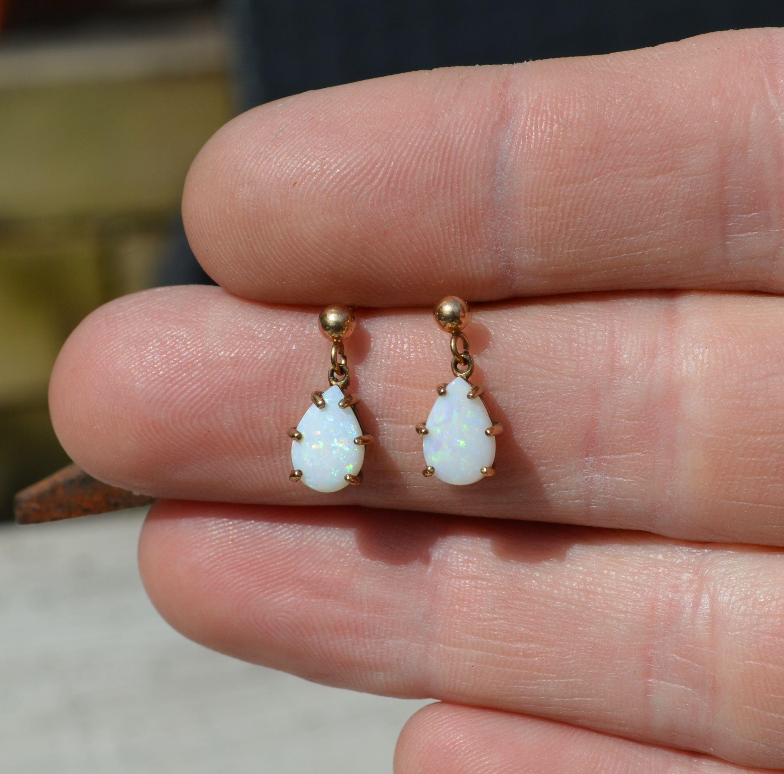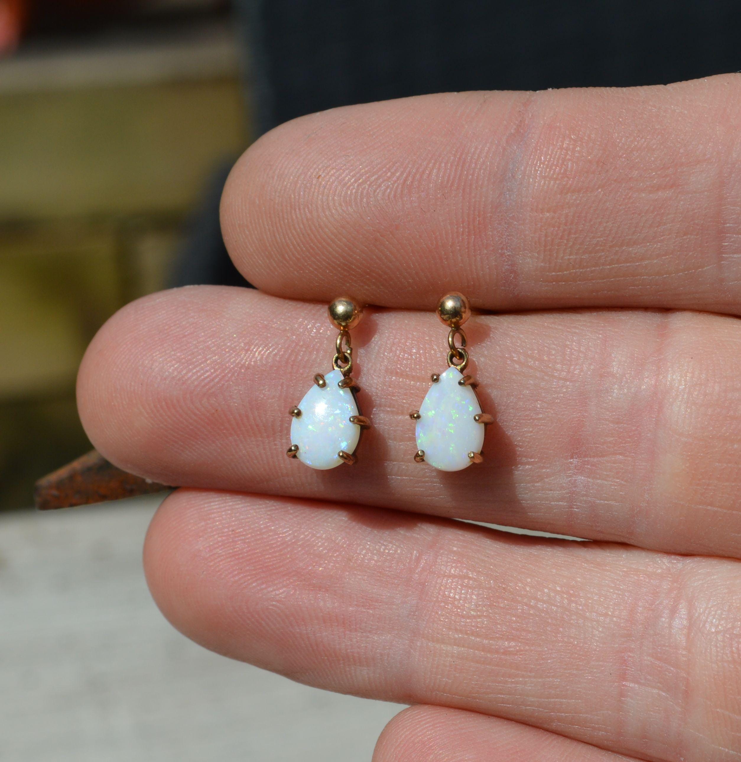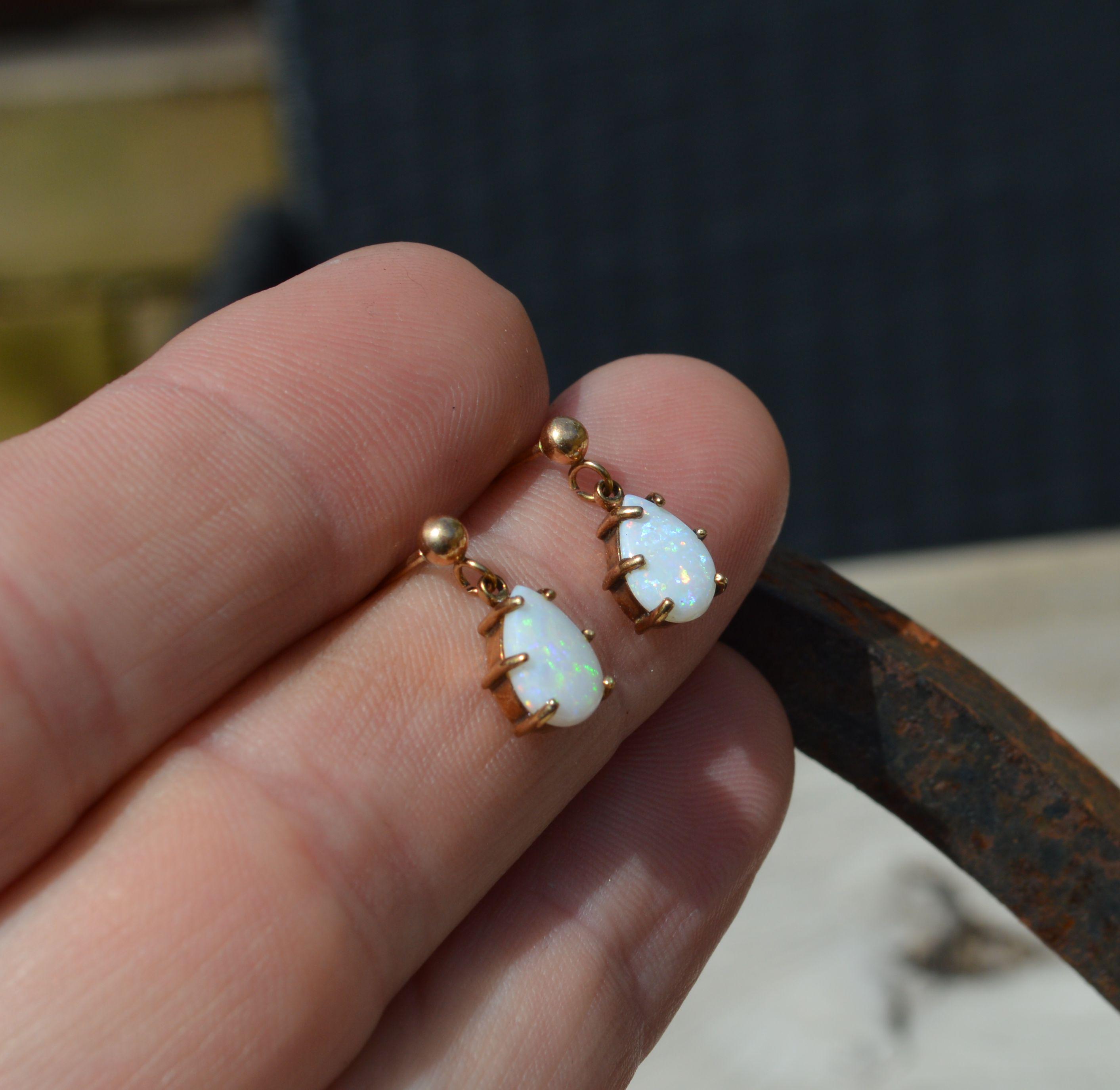 Teardrop 9ct Gold and Australian Opal Drop Earrings