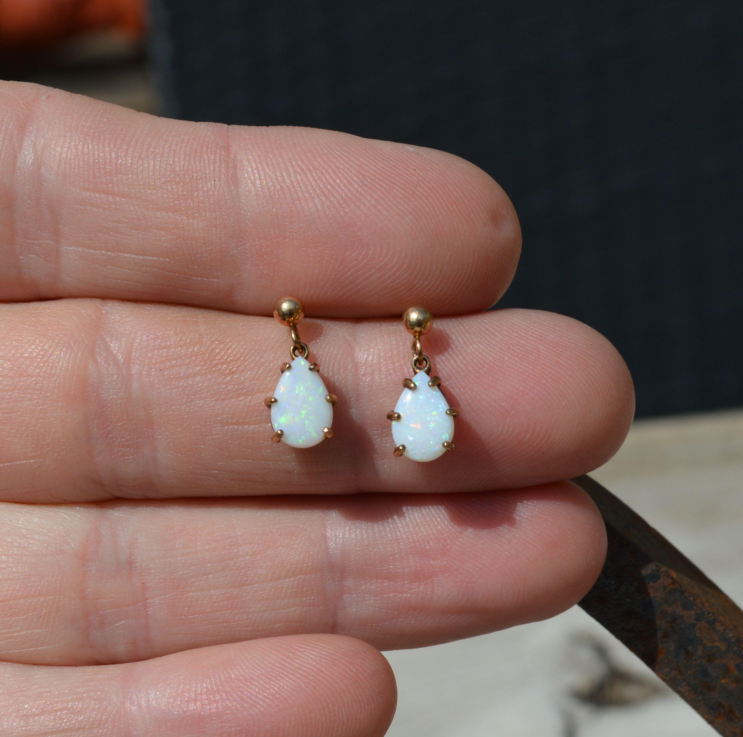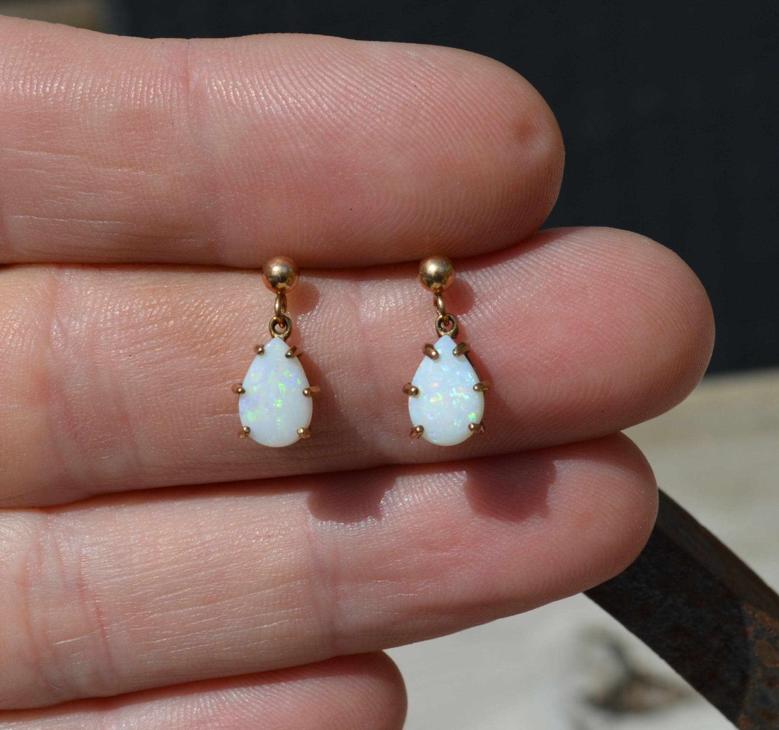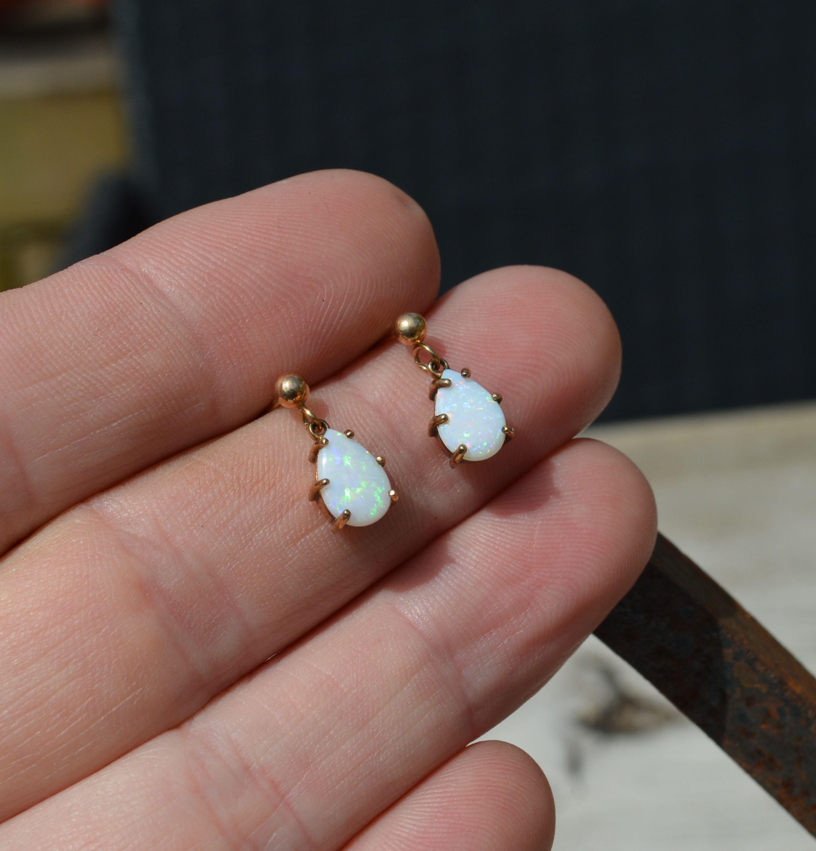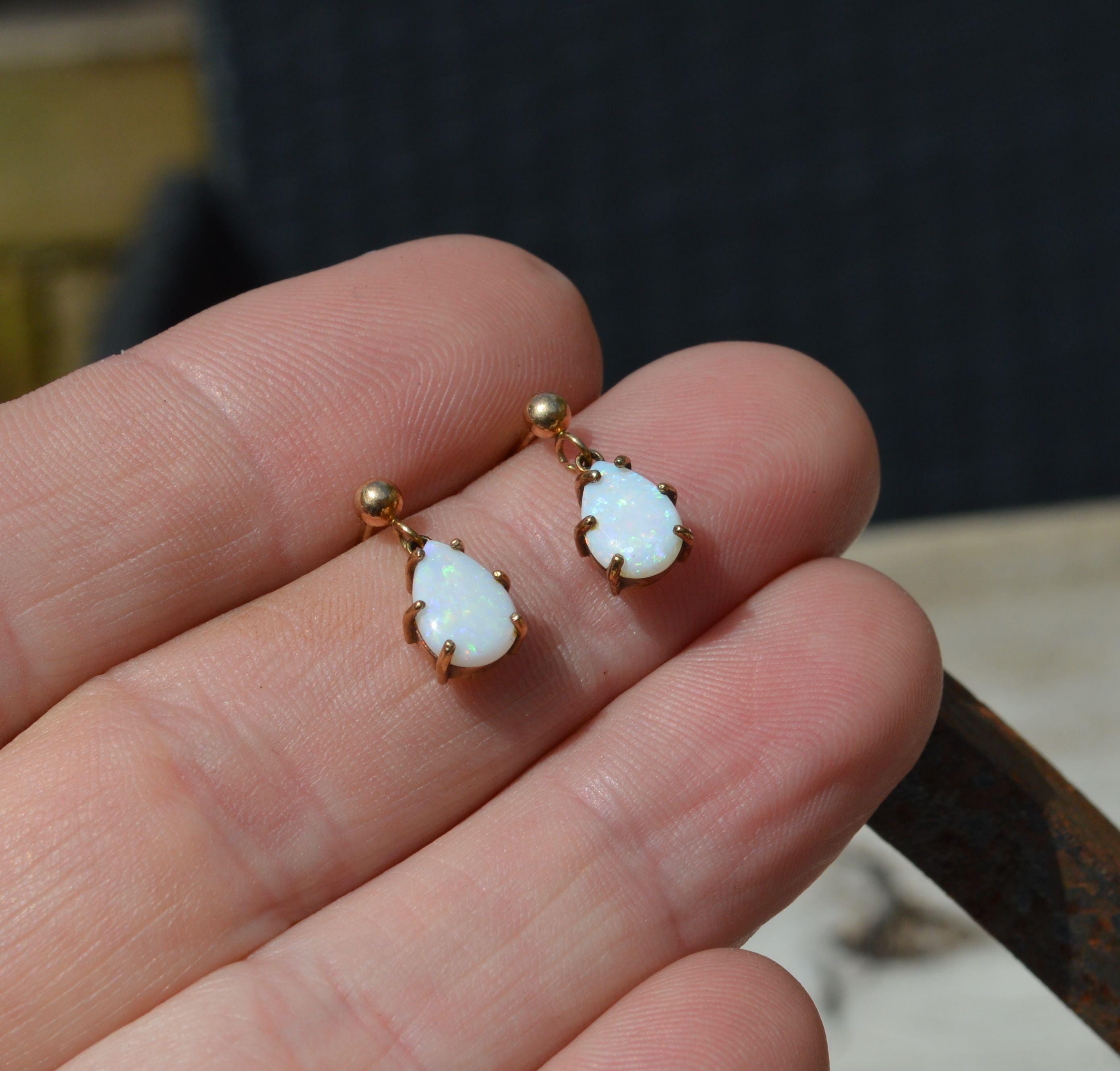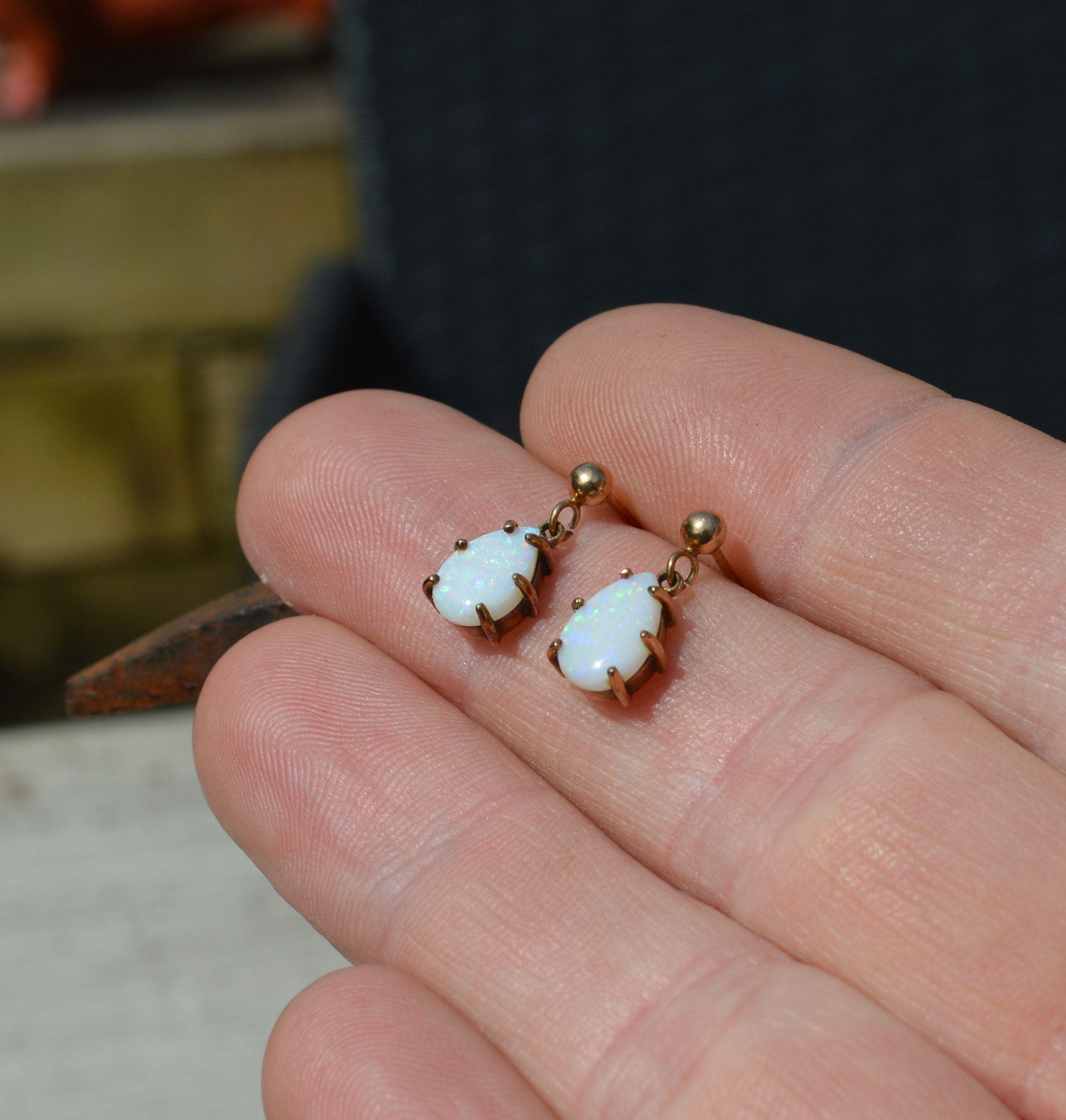 Teardrop 9ct Gold and Australian Opal Drop Earrings