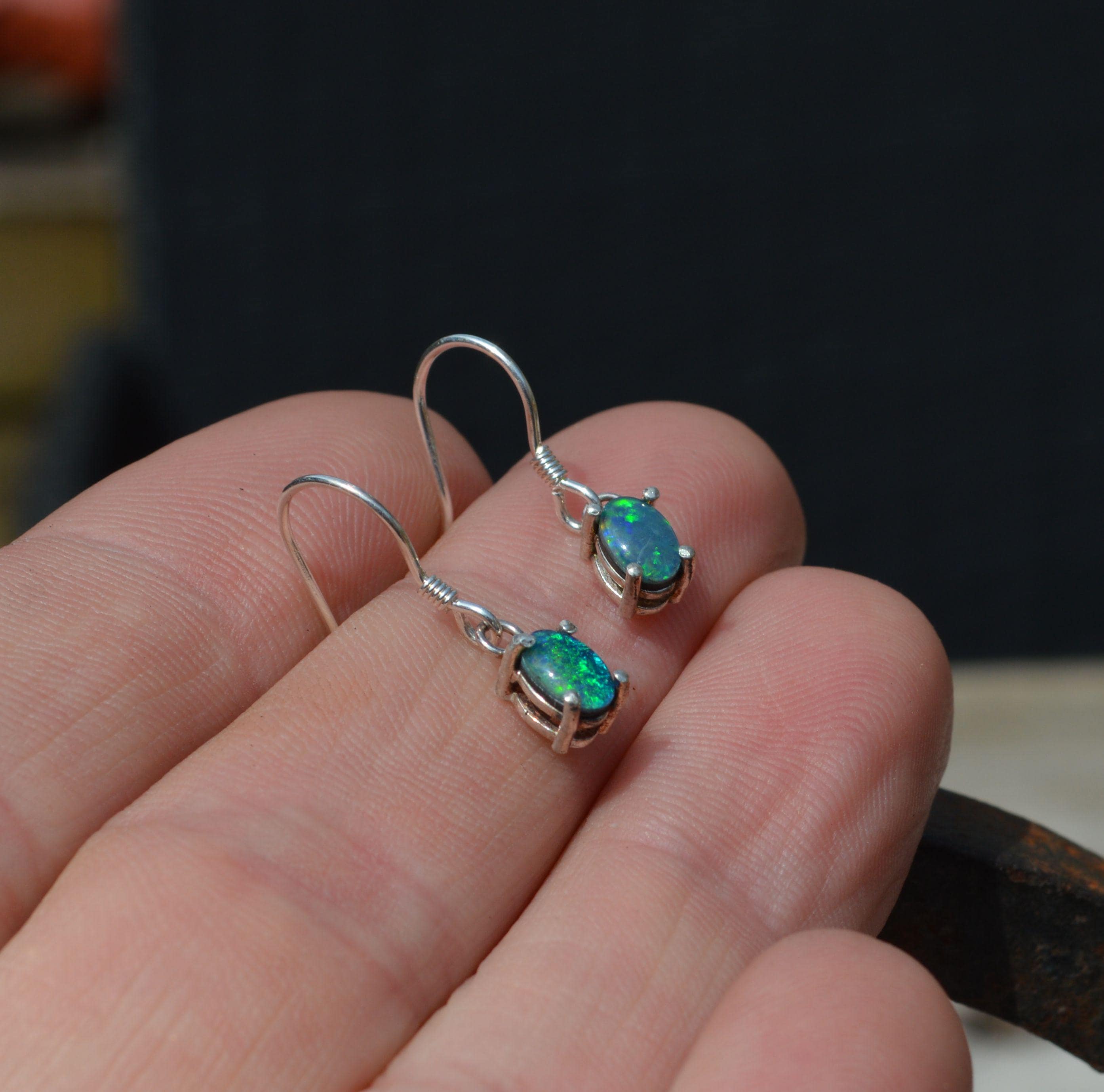 Sterling Silver Triplet Opal Dangle Earrings, Oval