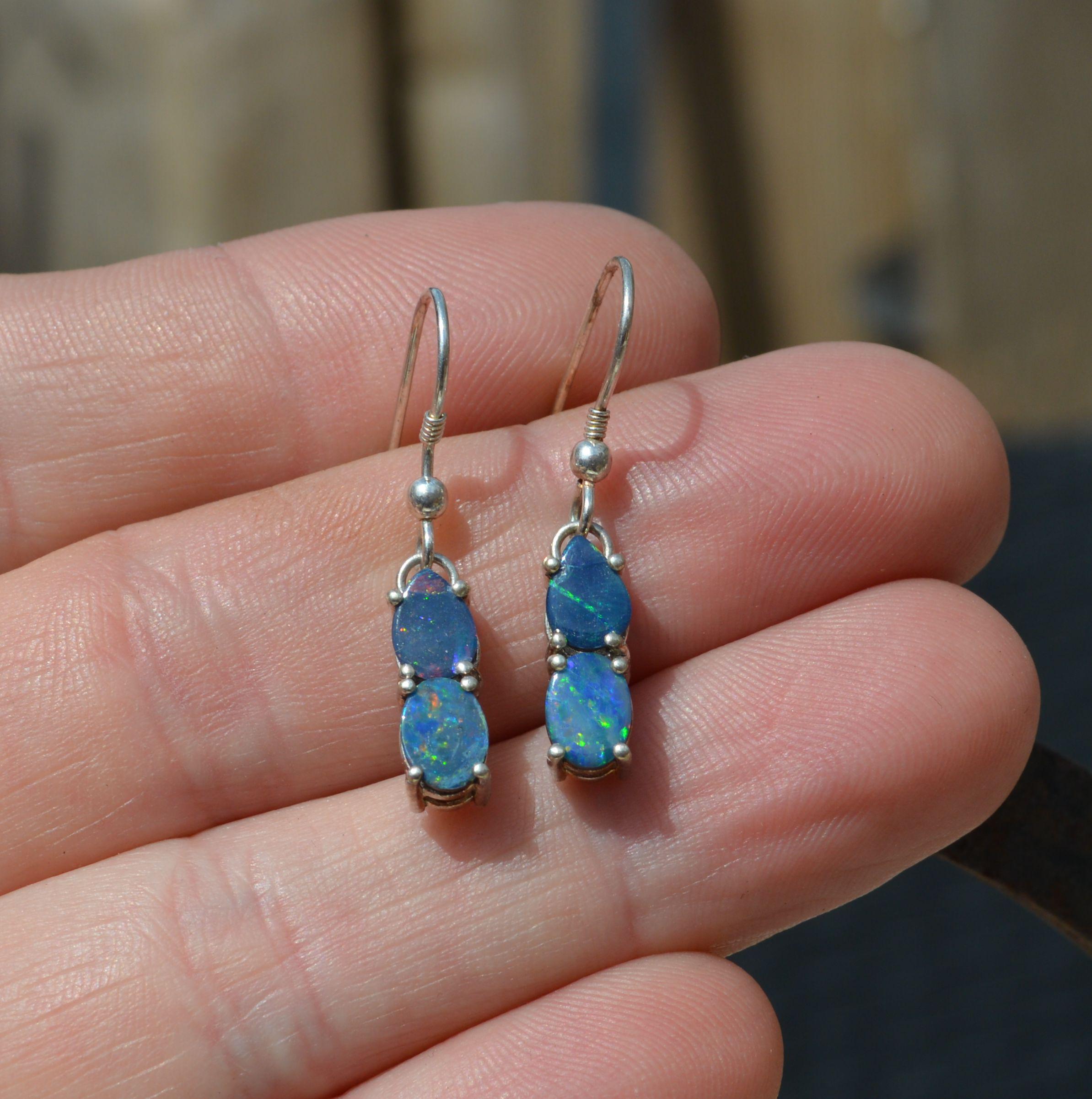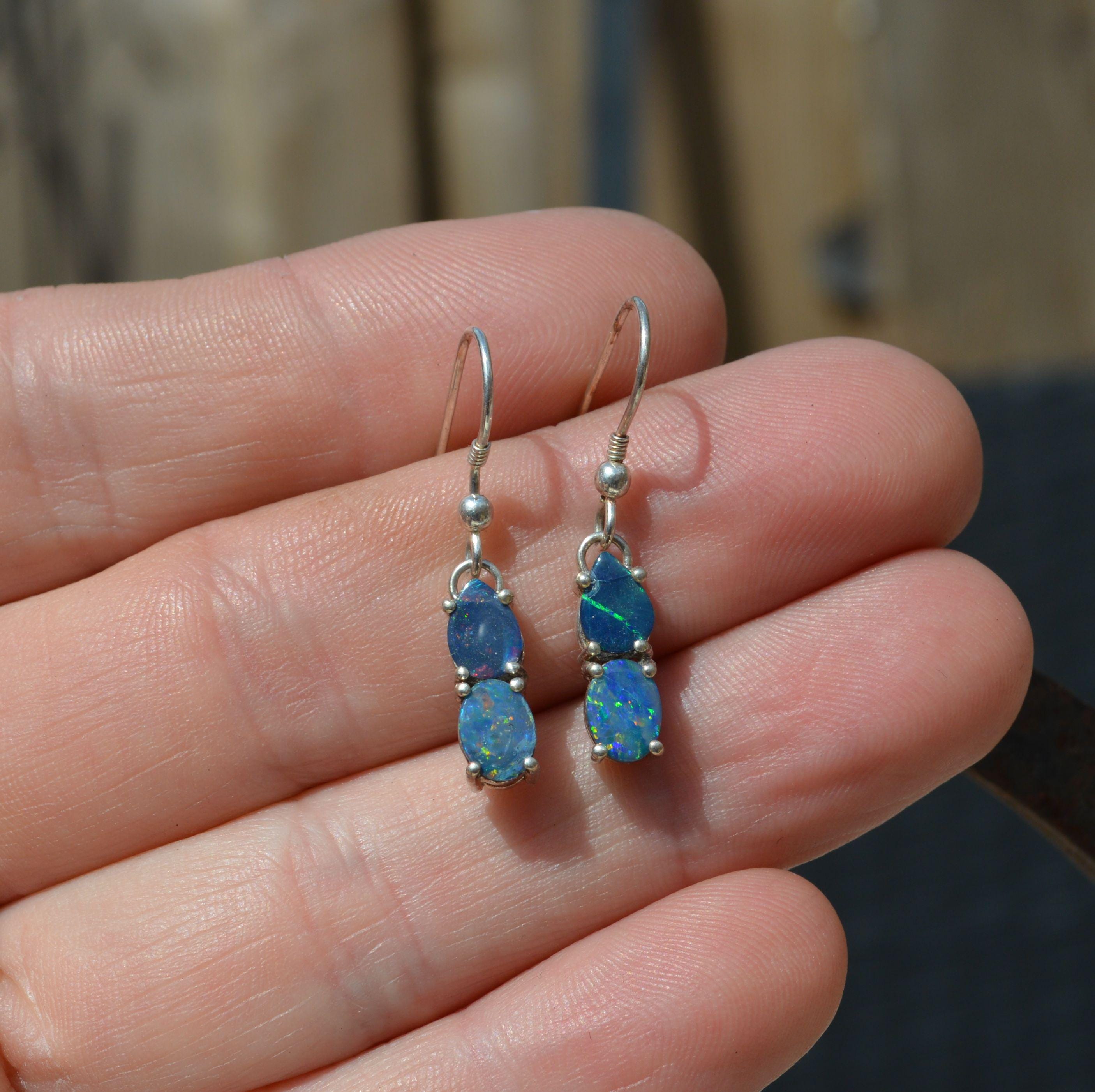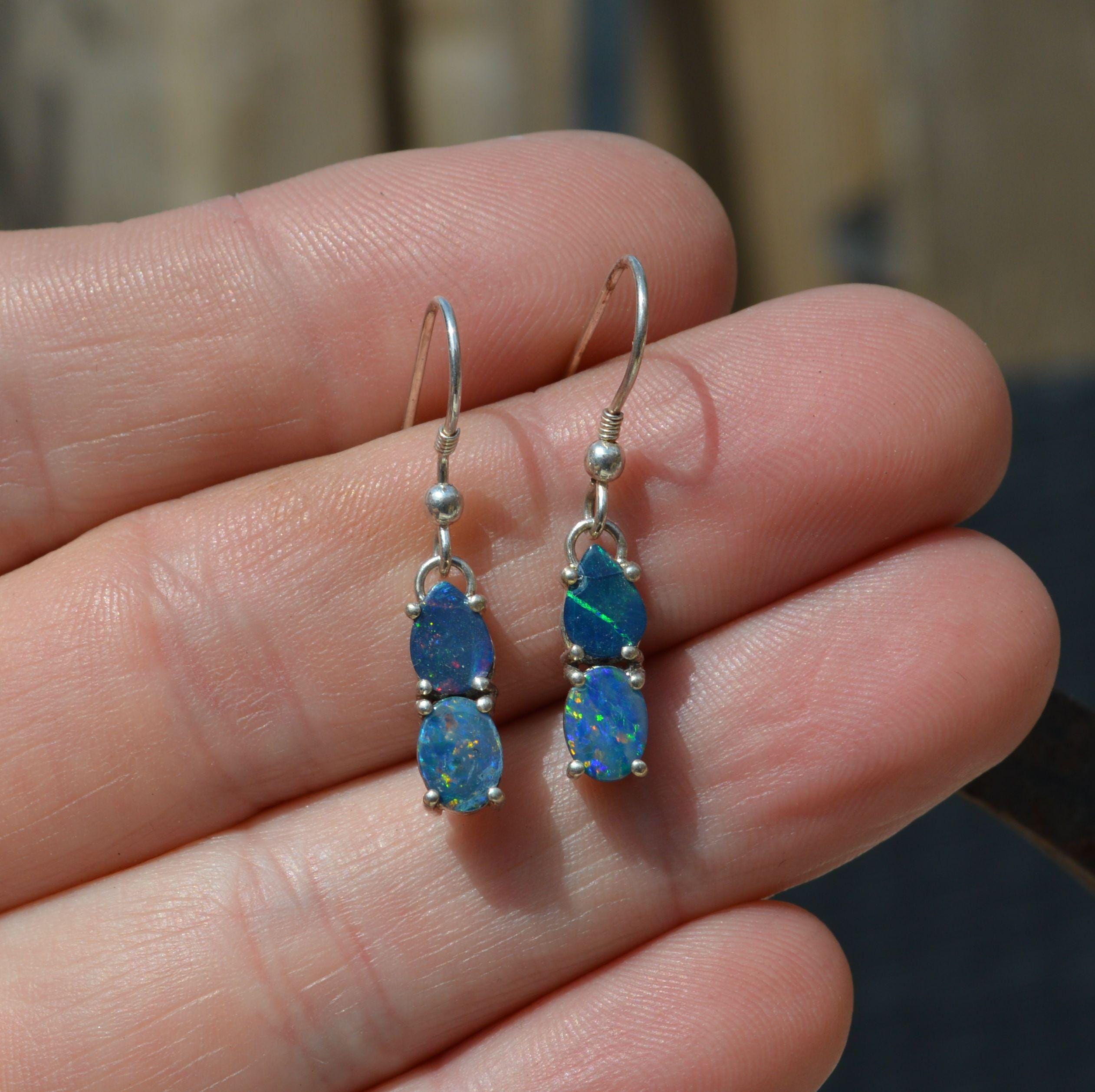 Silver Blue Opal Drop Earrings, Australian Crystal Opal Doublets
