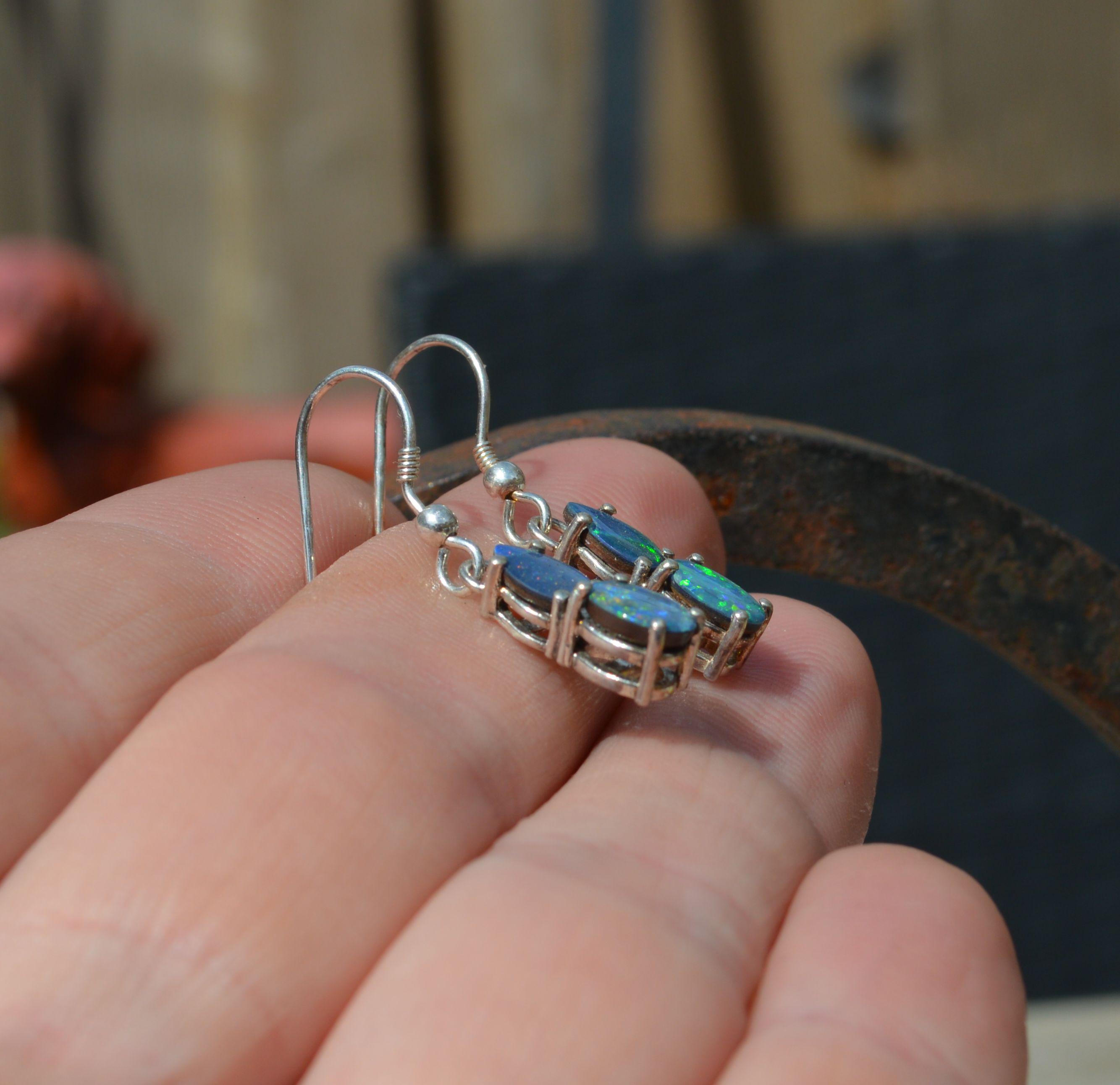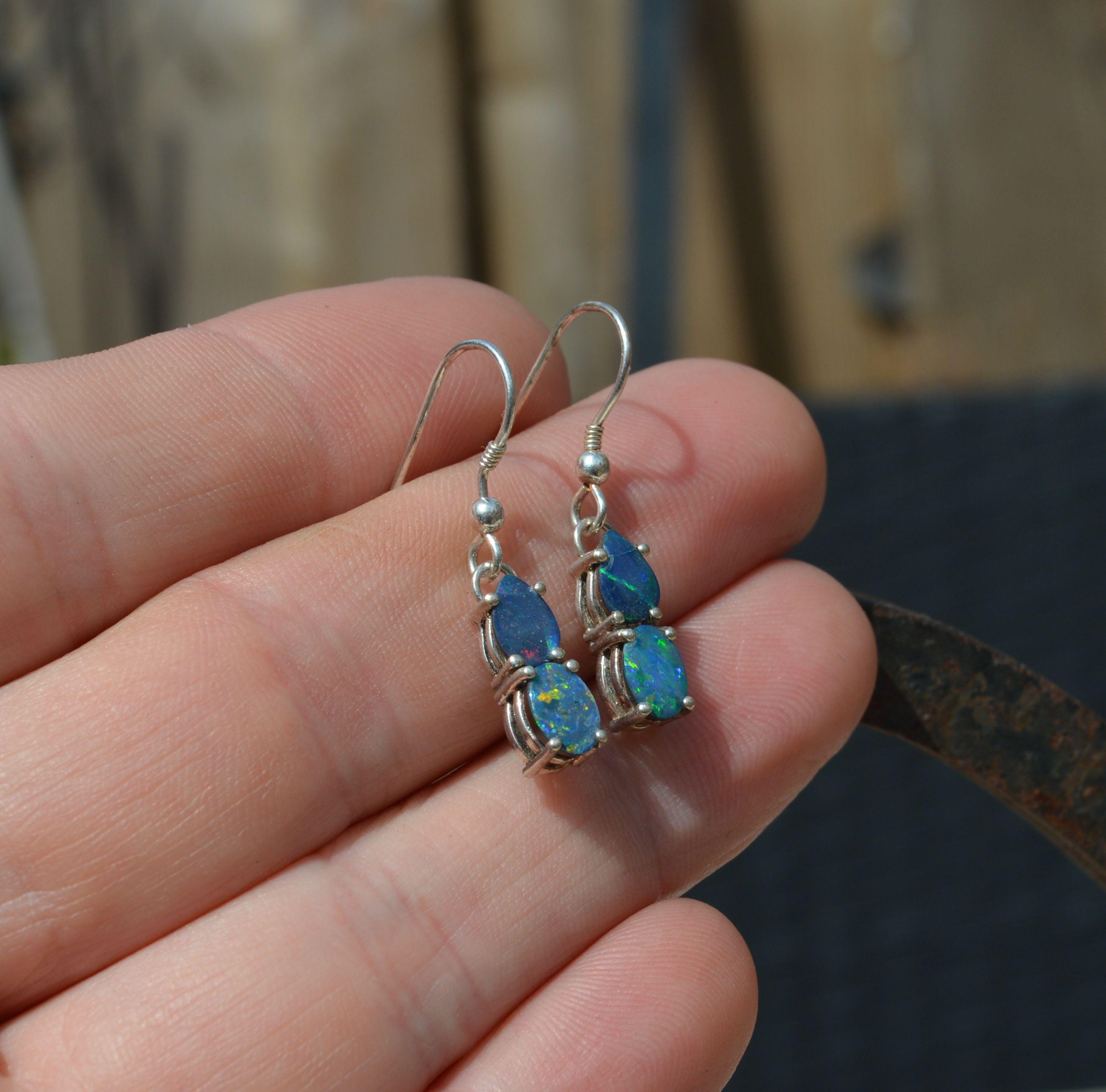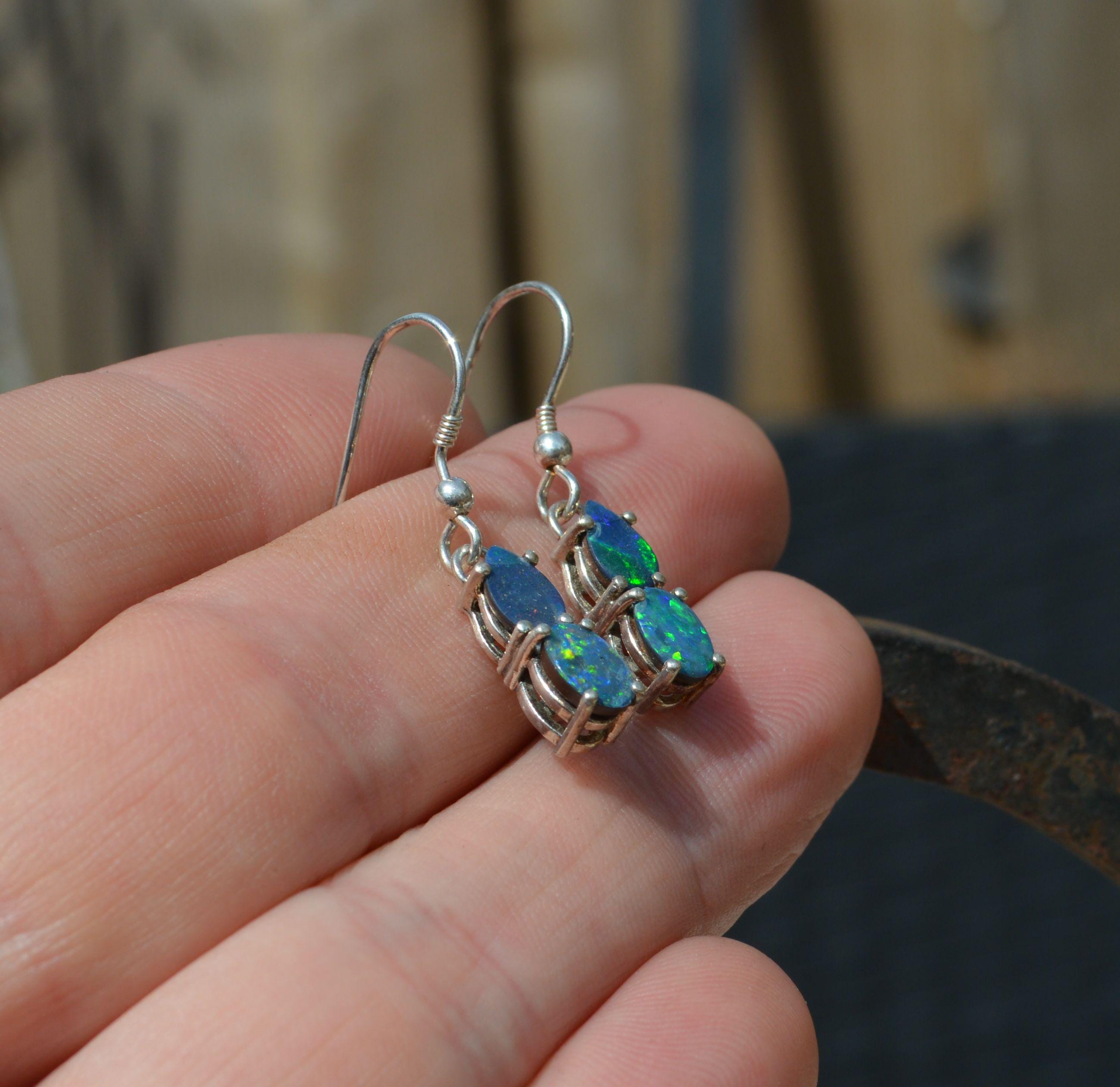 Silver Blue Opal Drop Earrings, Australian Crystal Opal Doublets