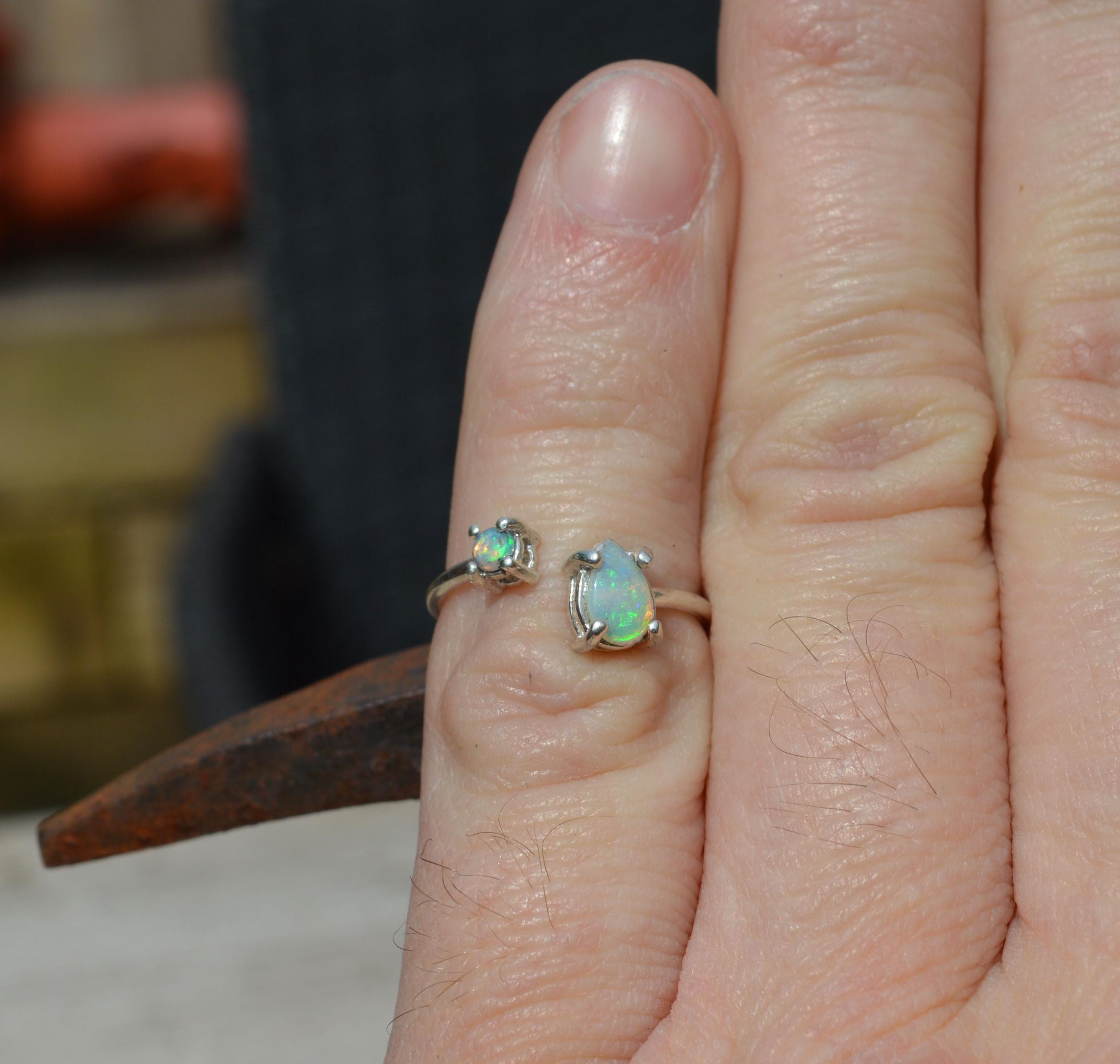 Sterling Silver Opal Ring, Australian Crystal Opal