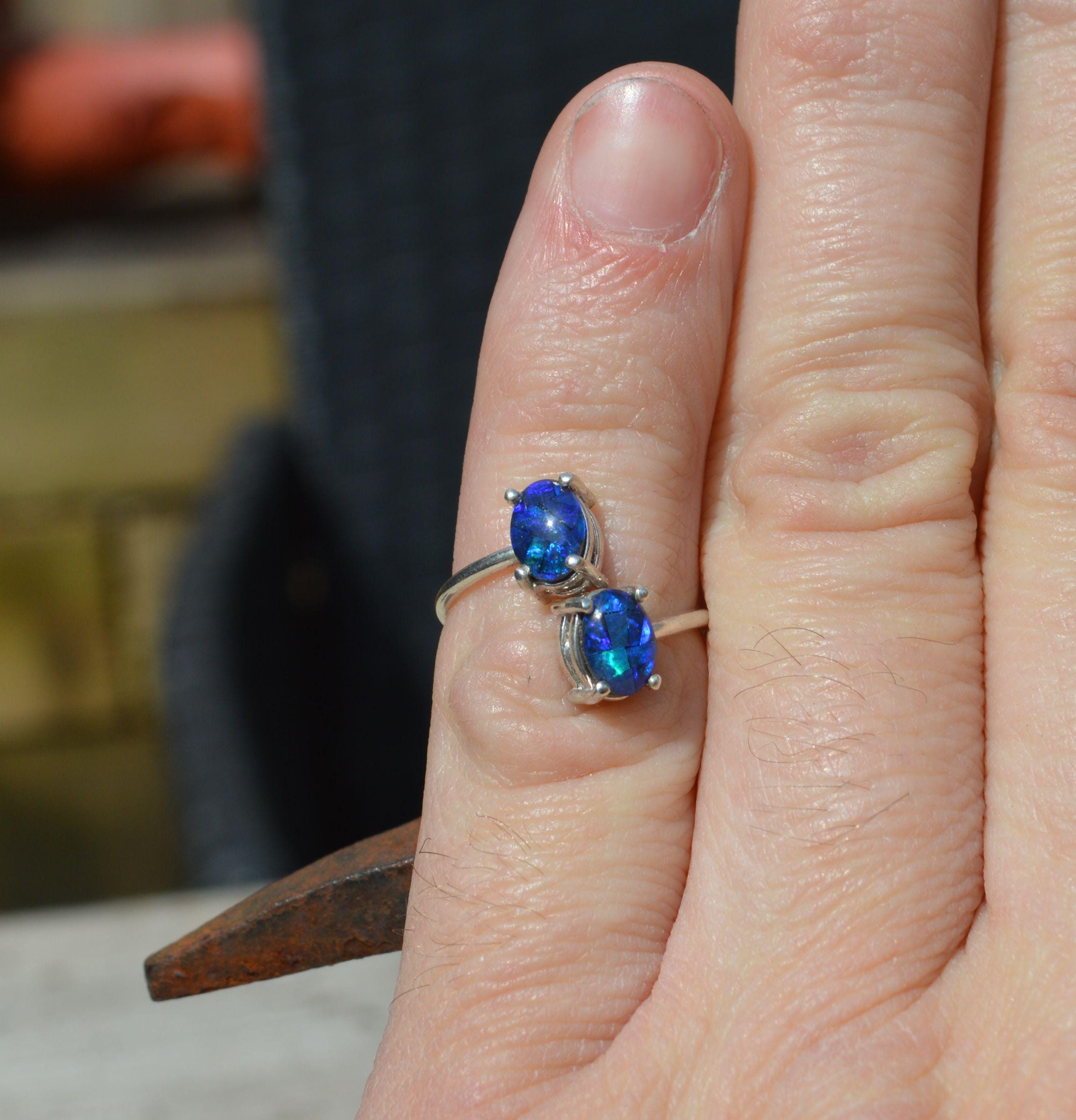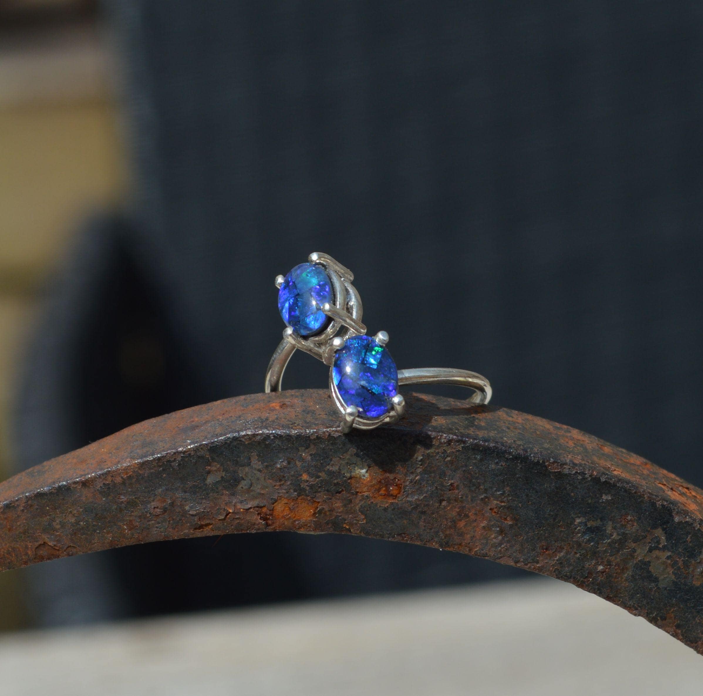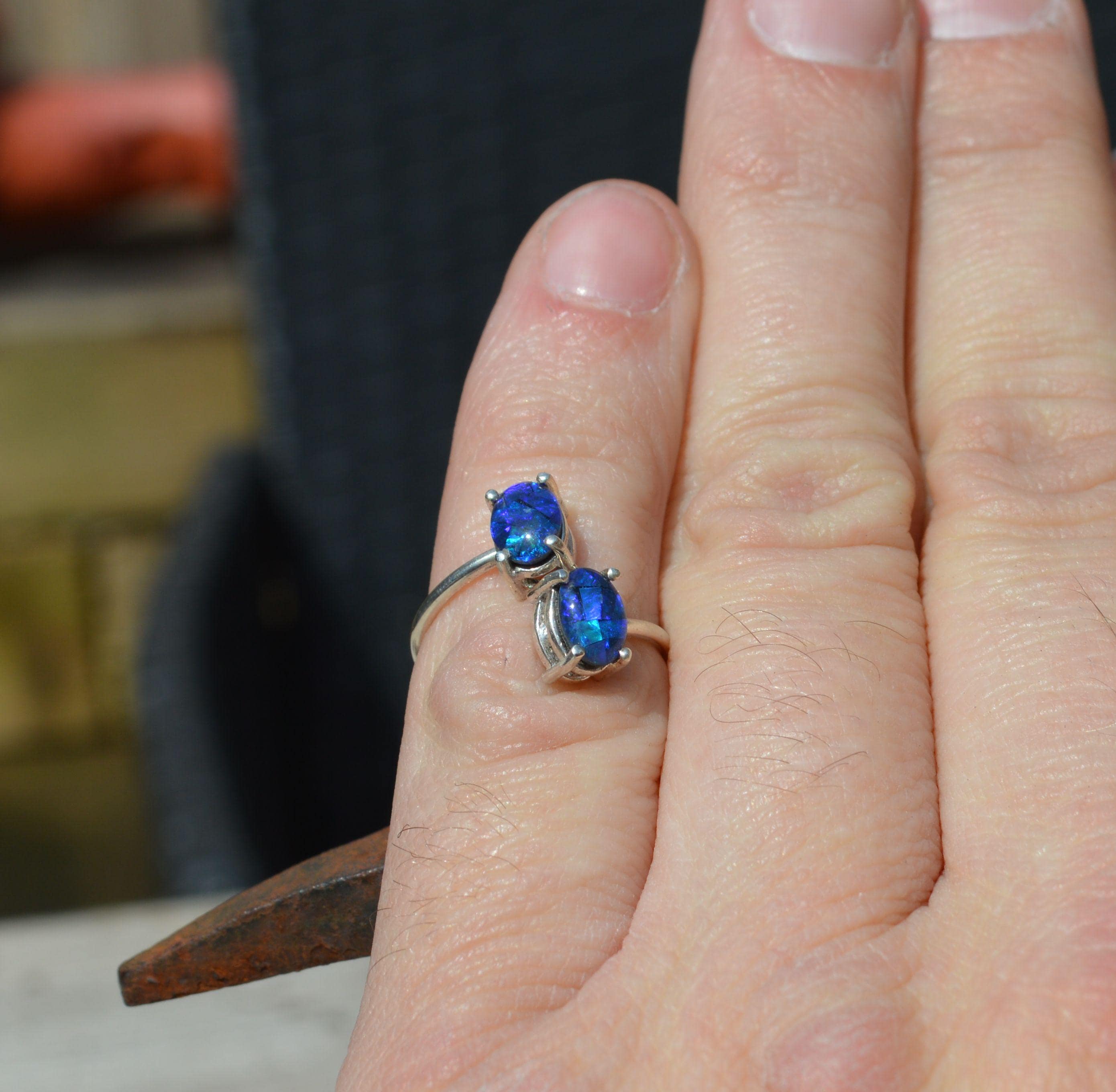 Sterling Silver Opal Ring, Oval Australian Opal Triplets