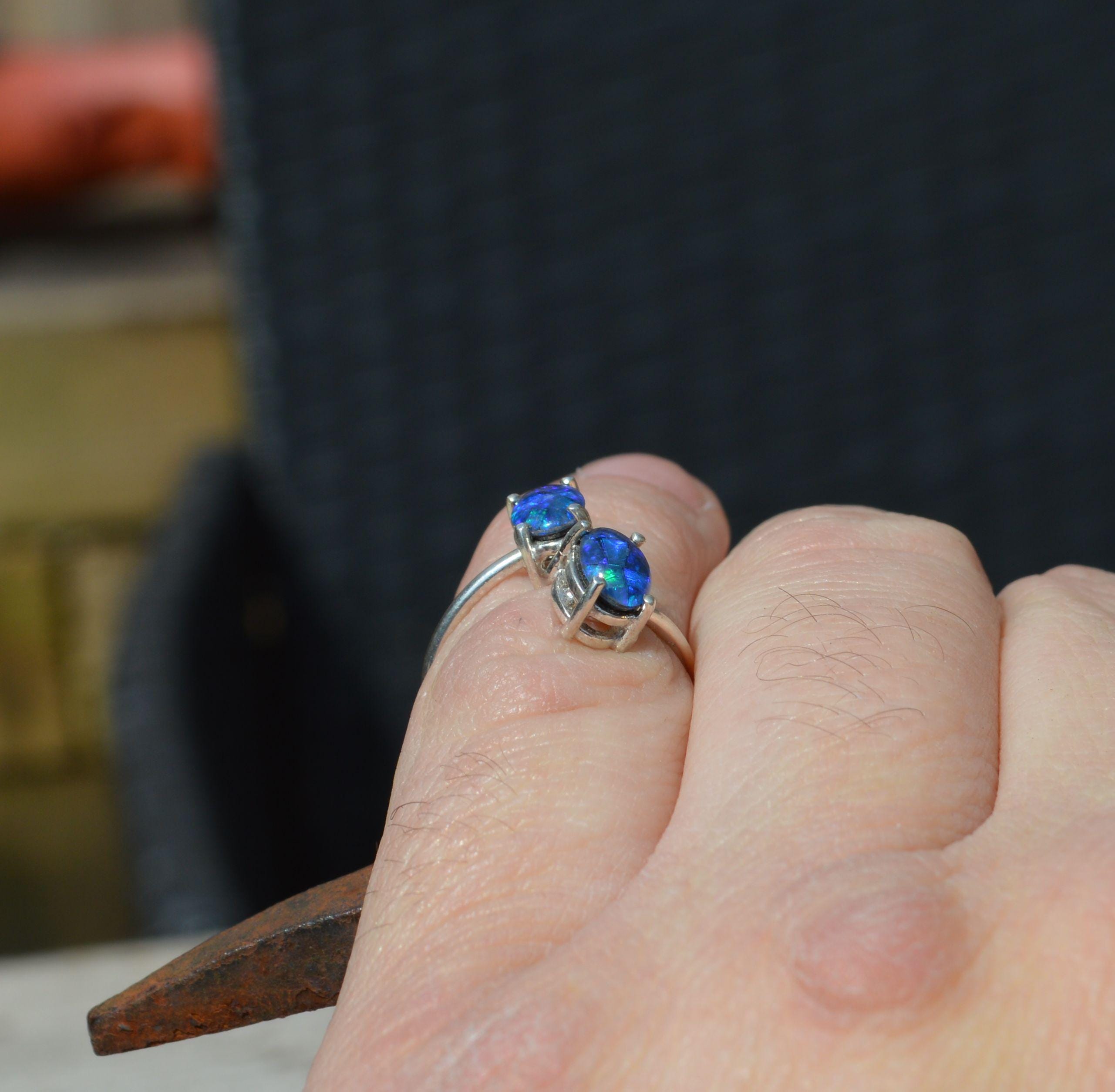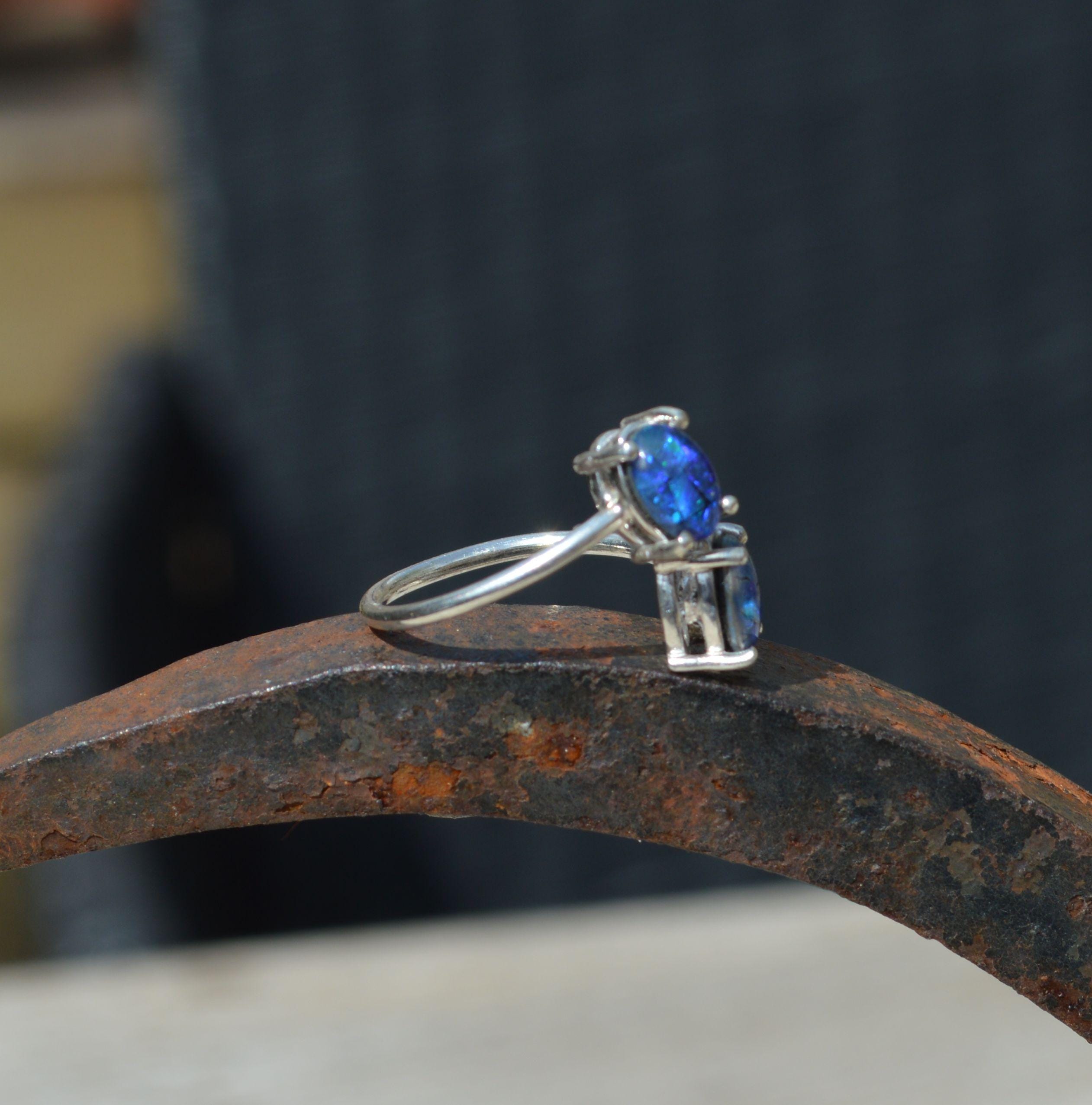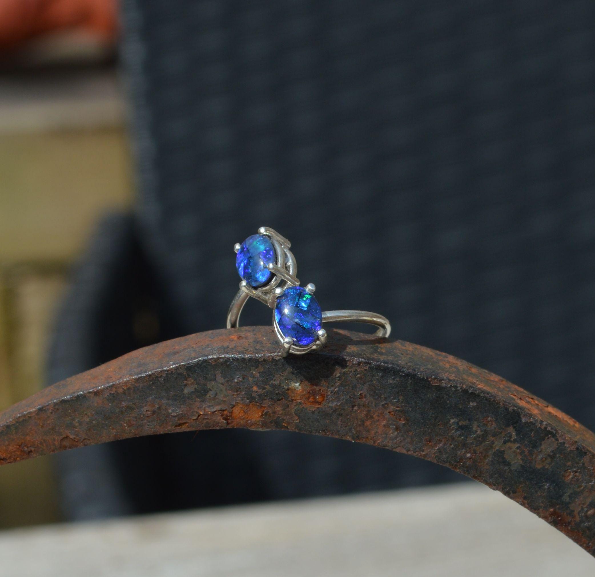 Sterling Silver Opal Ring, Oval Australian Opal Triplets