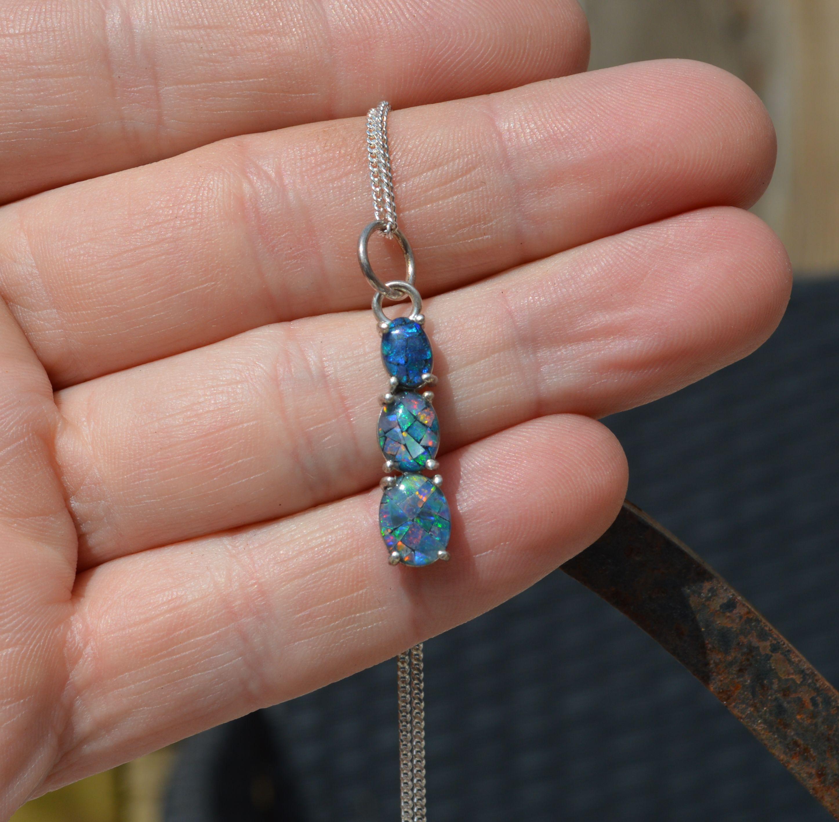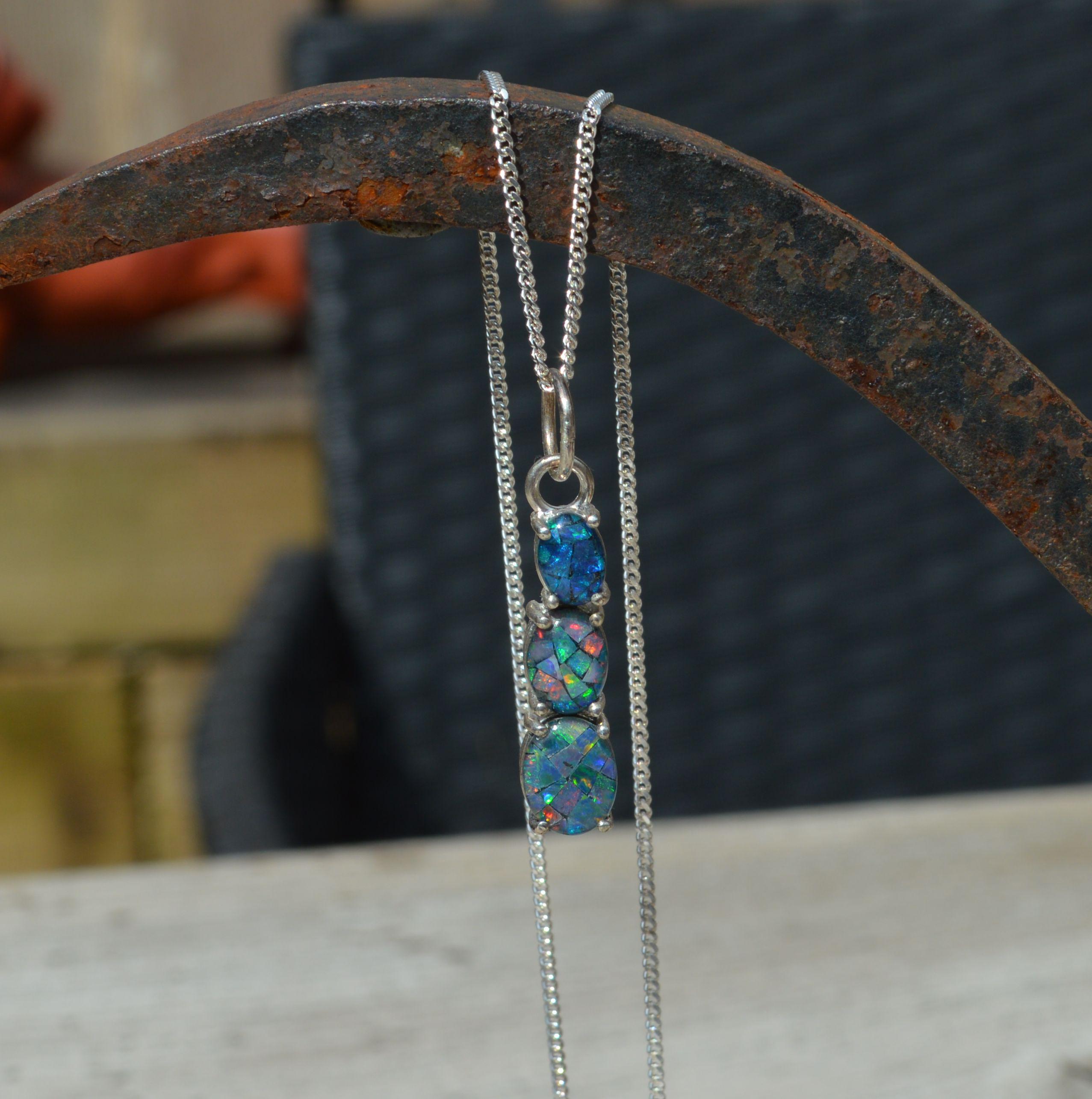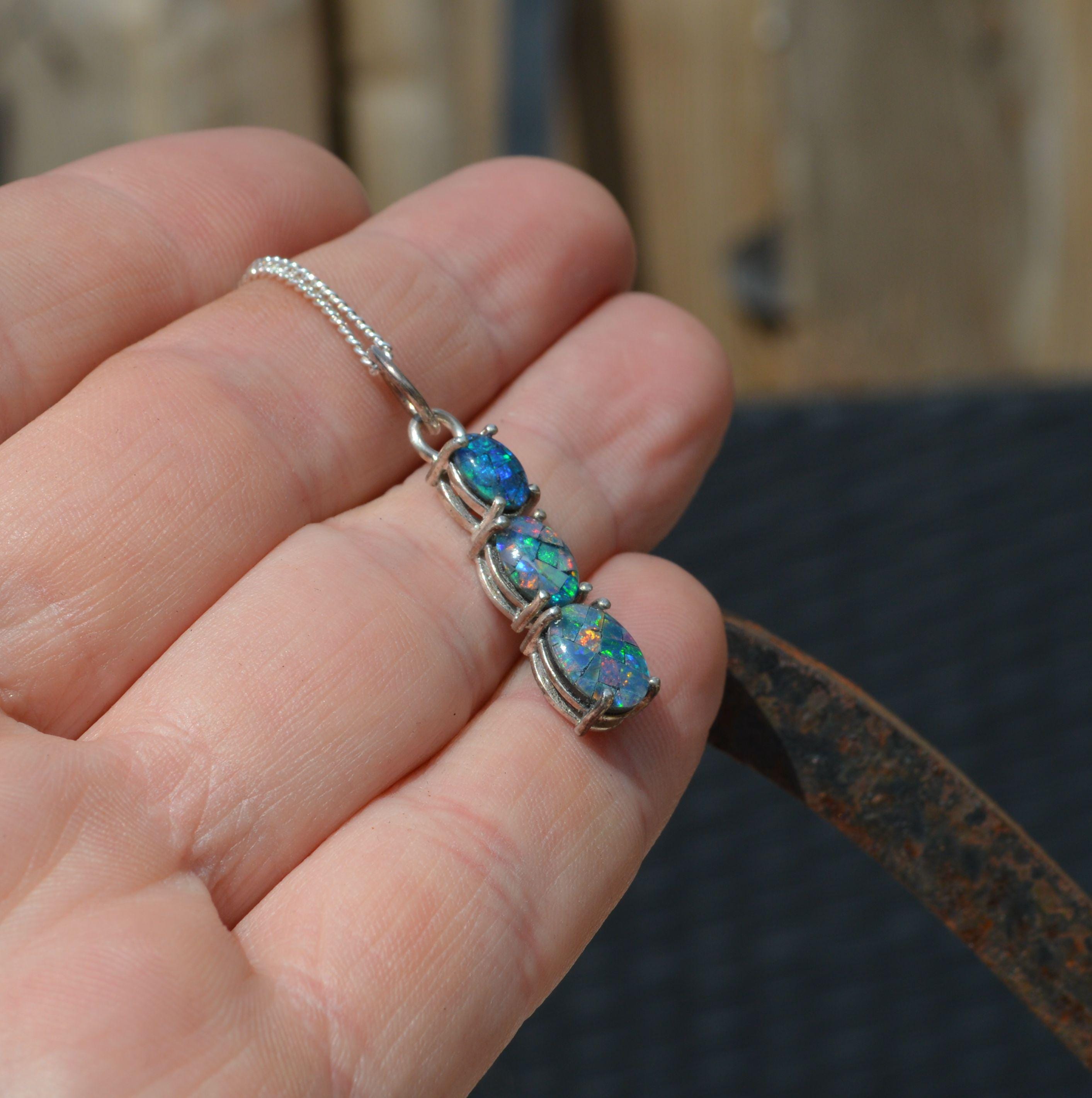 Silver and Opal Pendant, Oval Australian Opal Triplets
