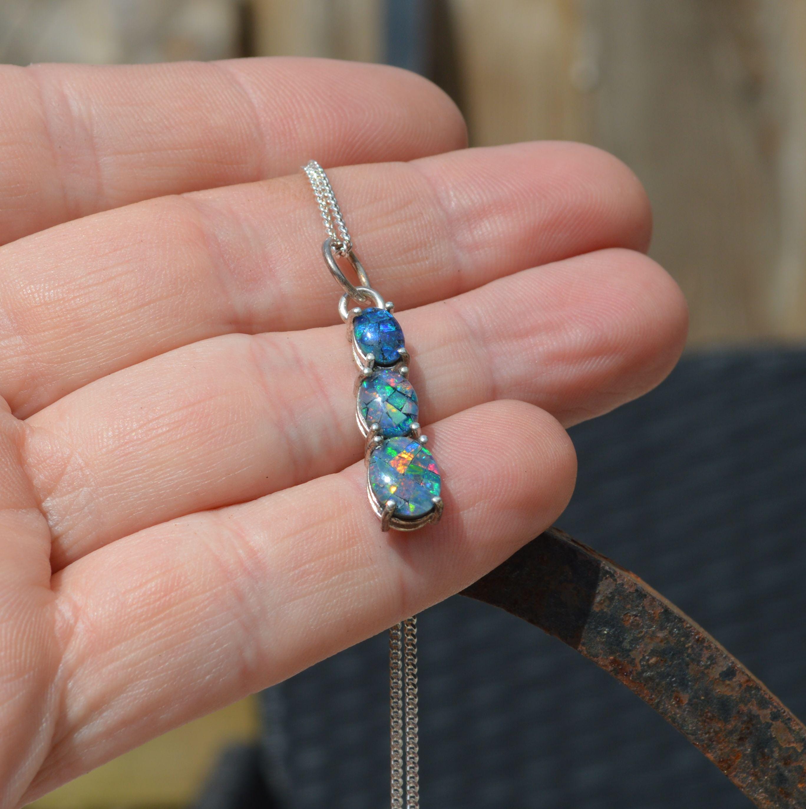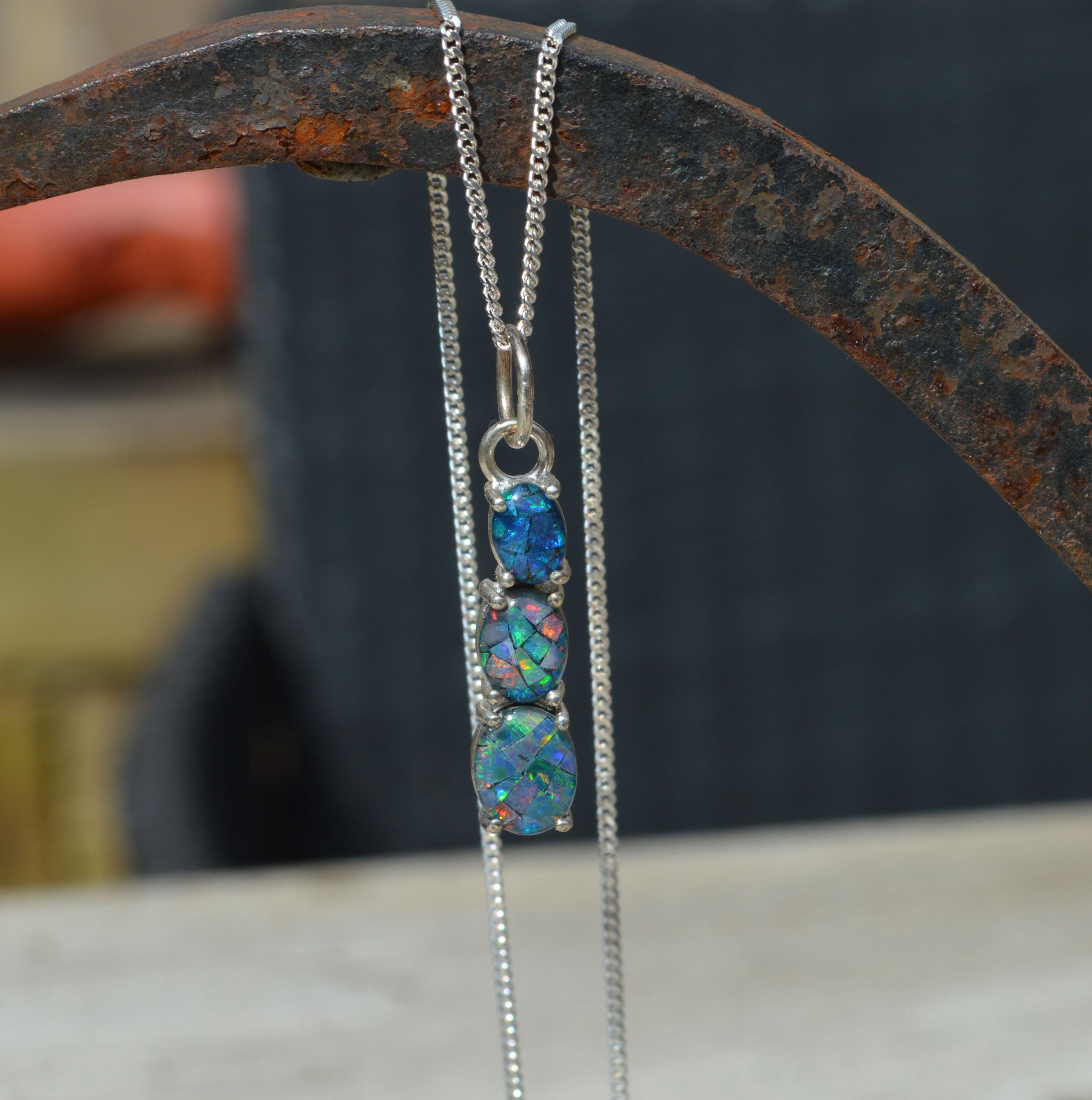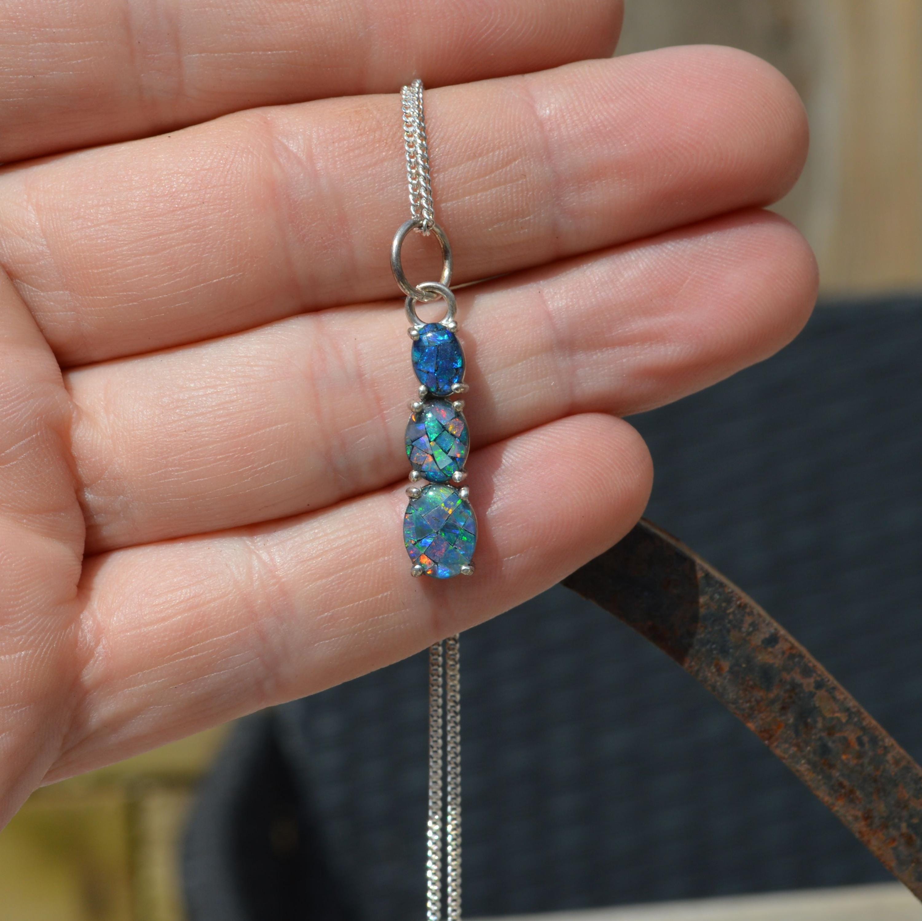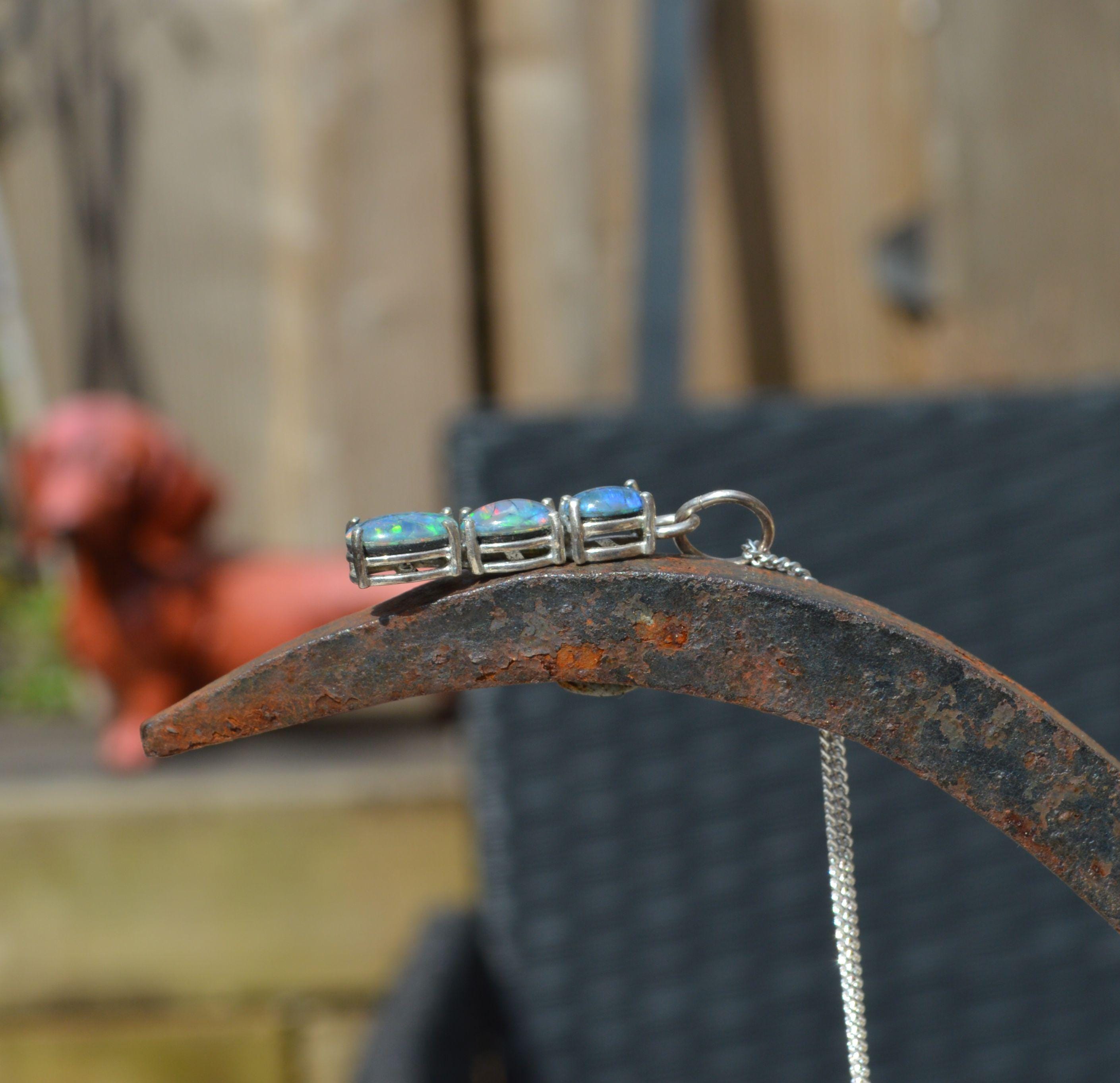 Silver and Opal Pendant, Oval Australian Opal Triplets