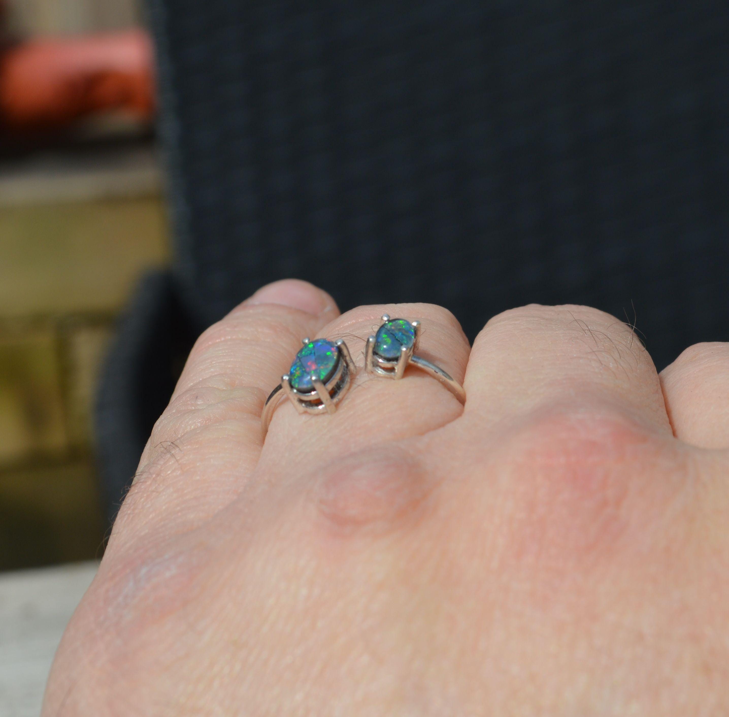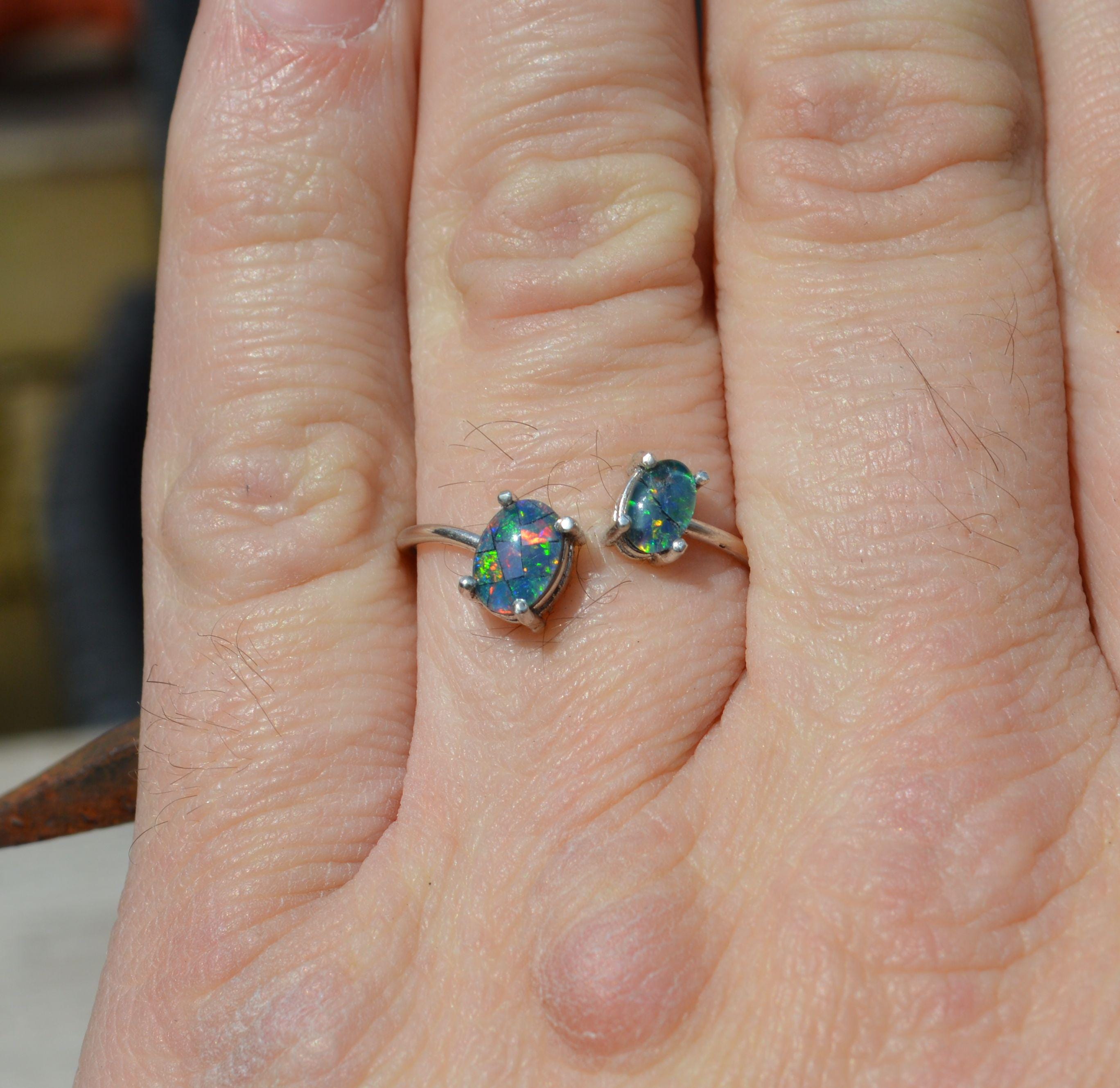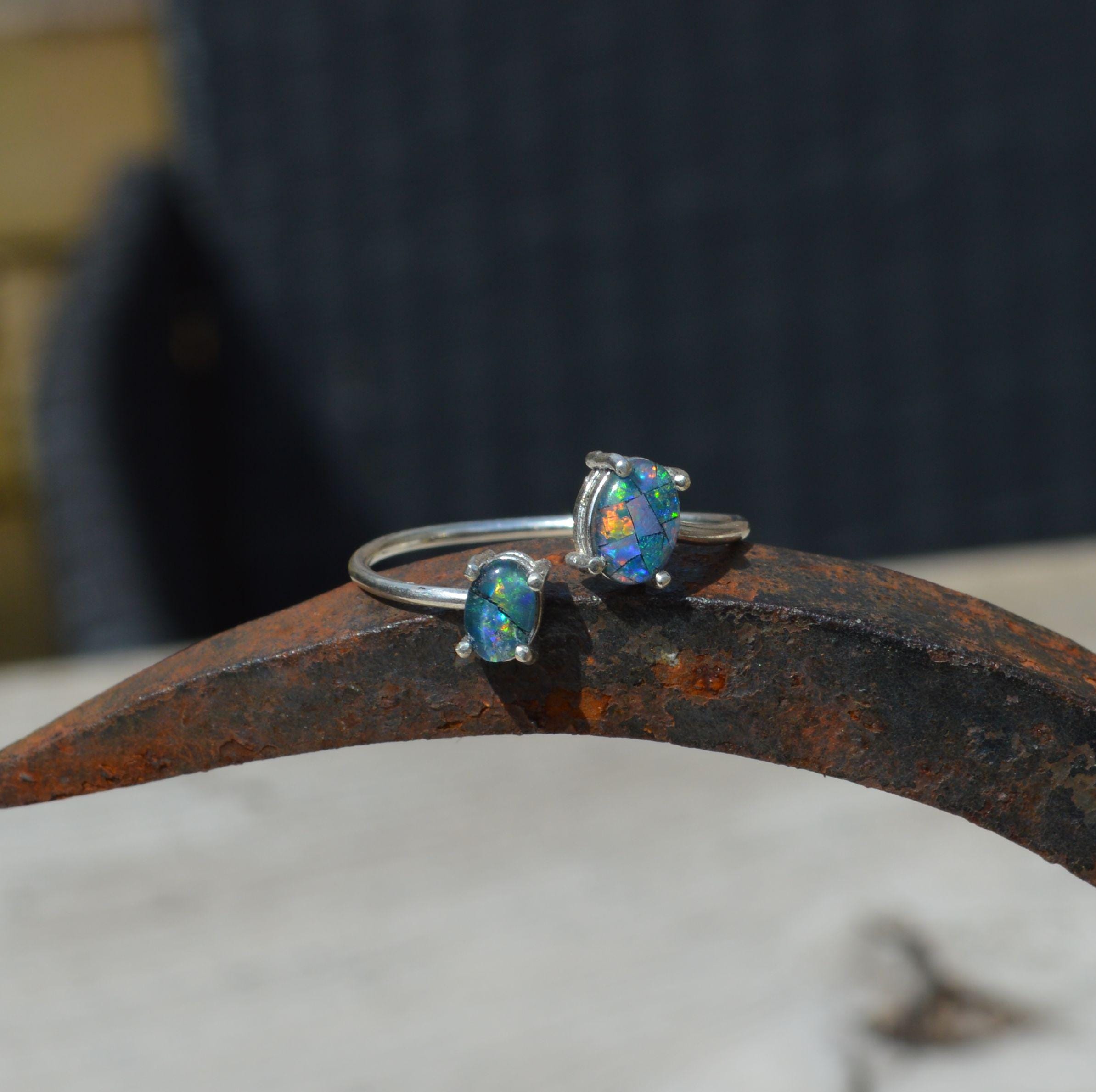 Sterling Silver Opal Ring, Oval Australian Opal Triplets