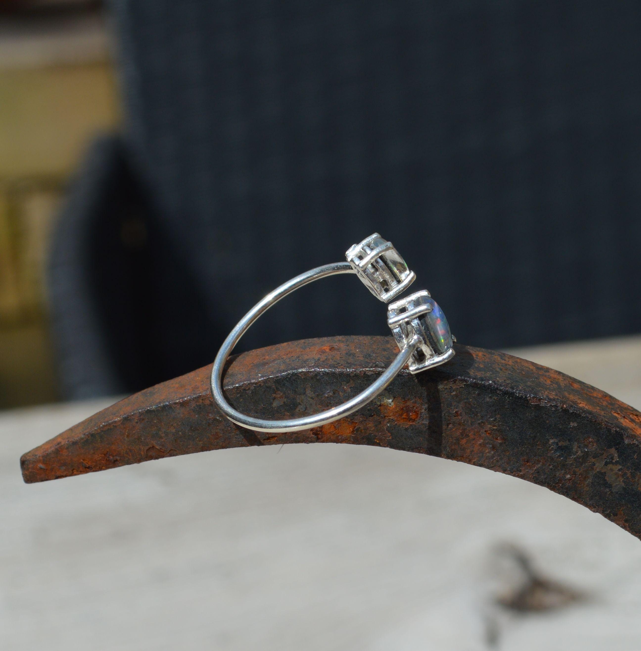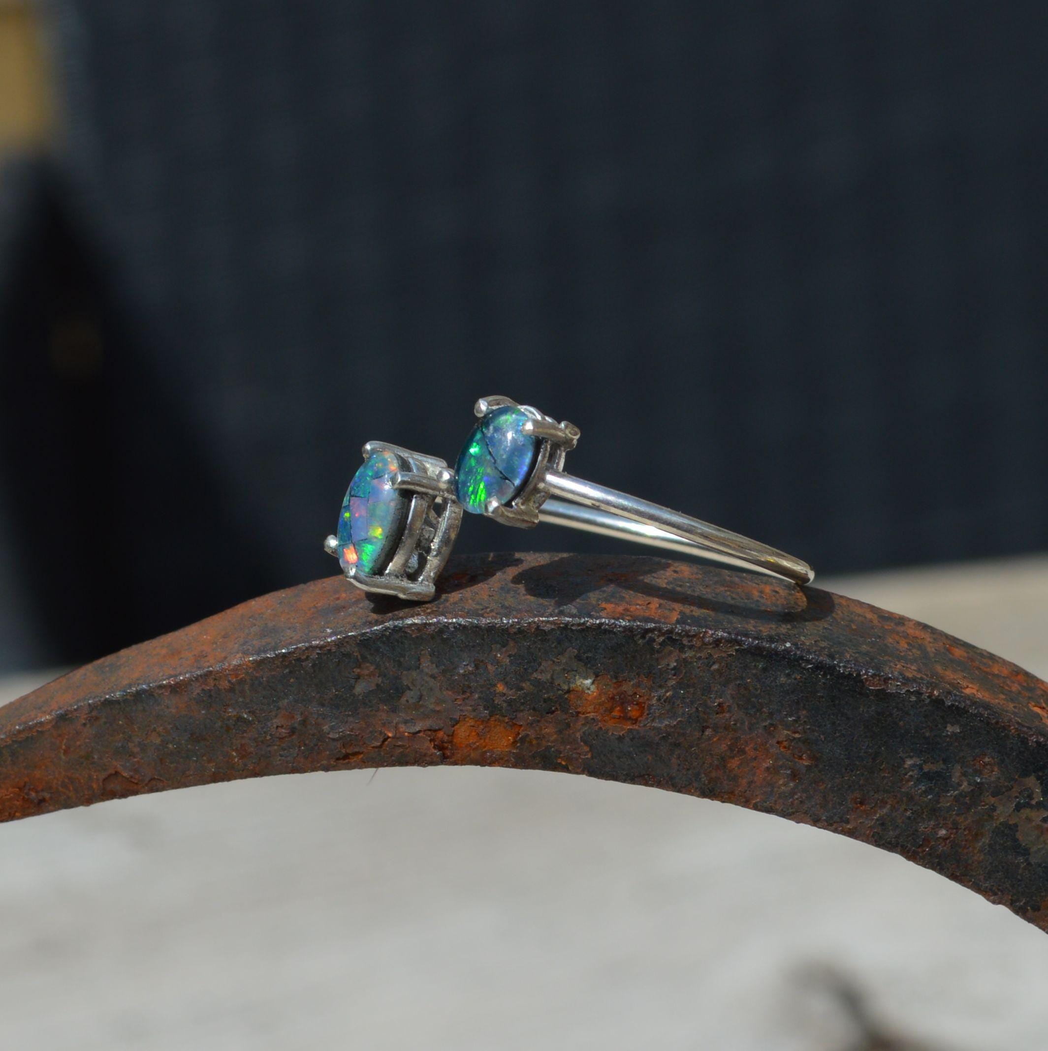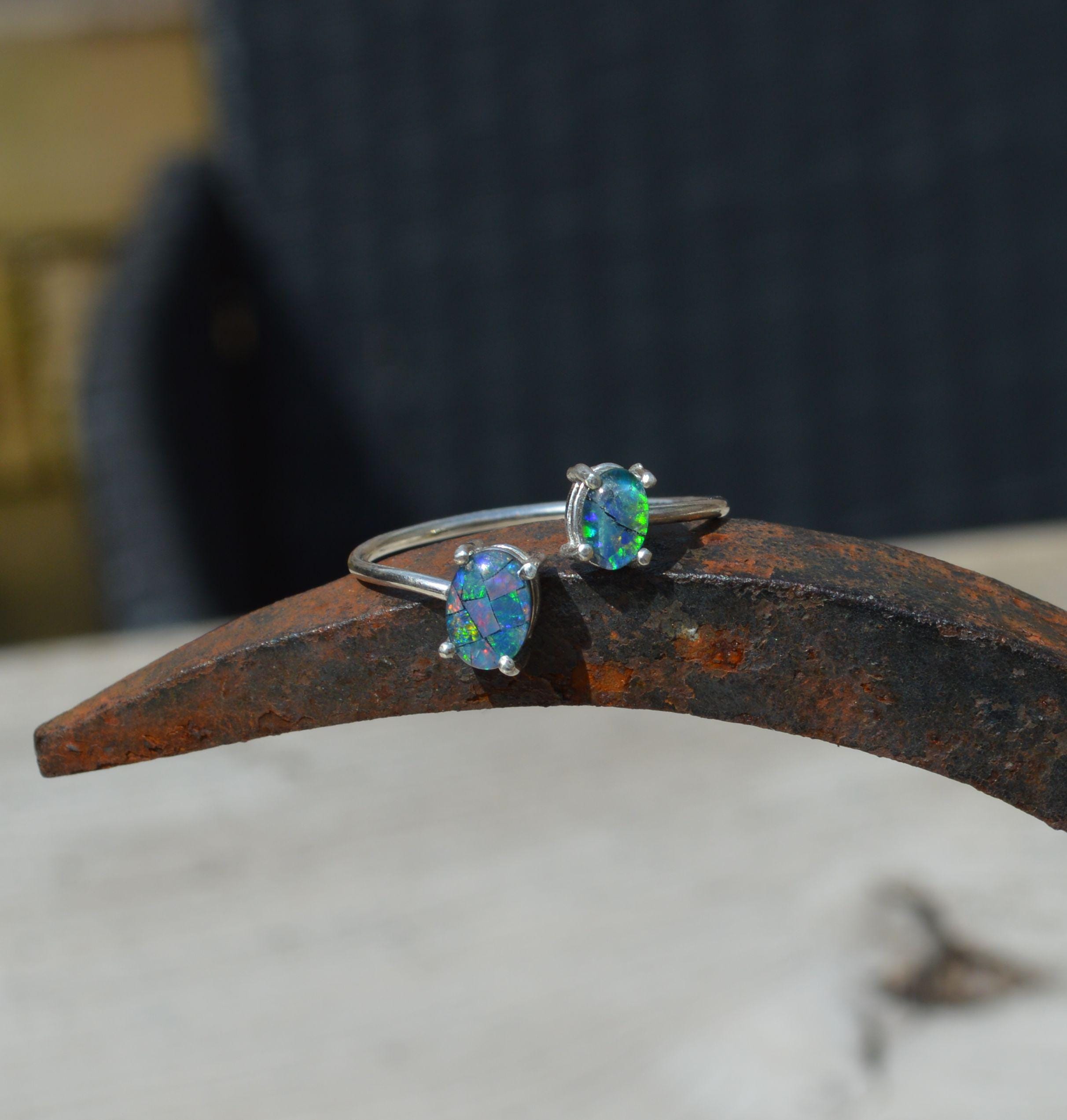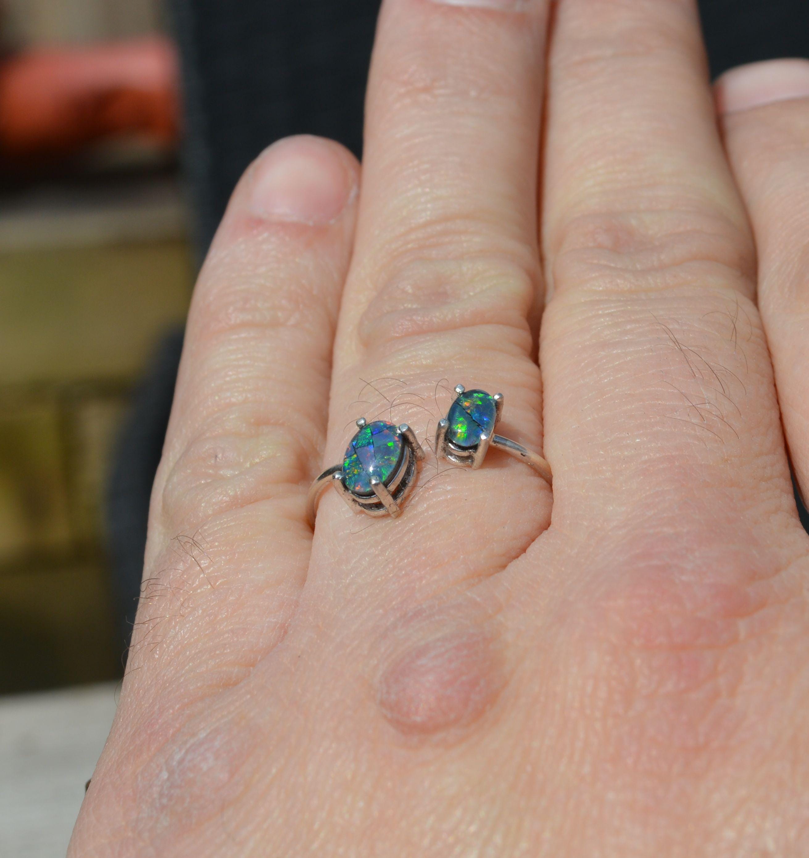 Sterling Silver Opal Ring, Oval Australian Opal Triplets