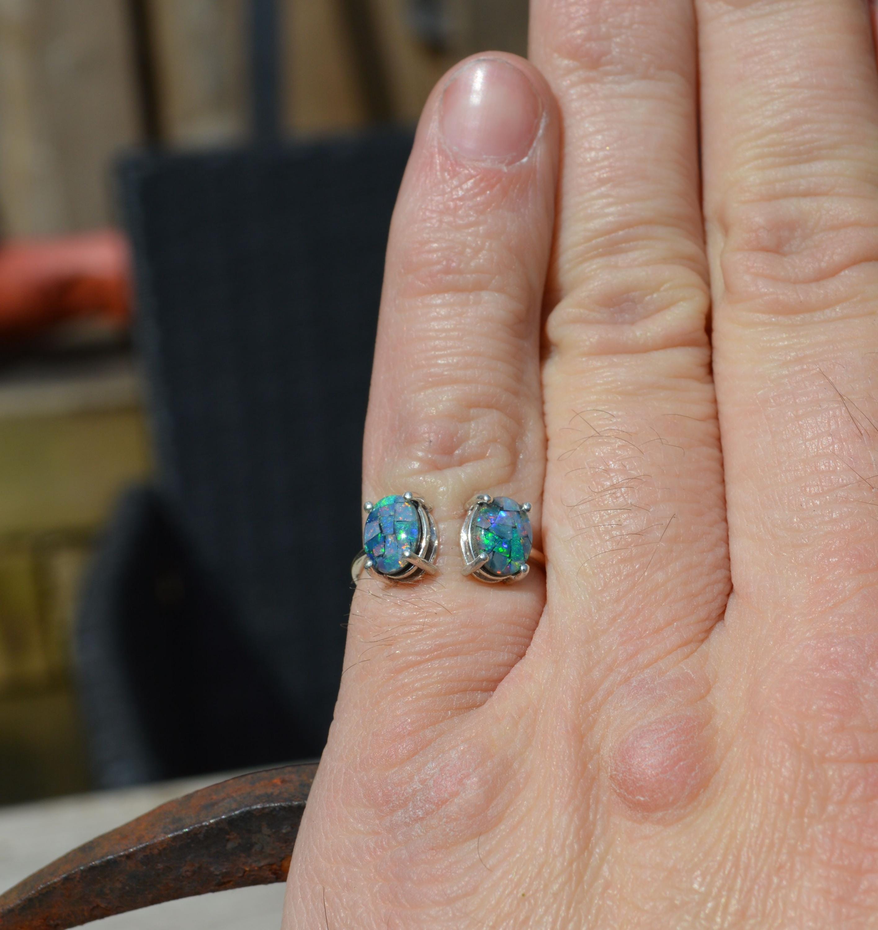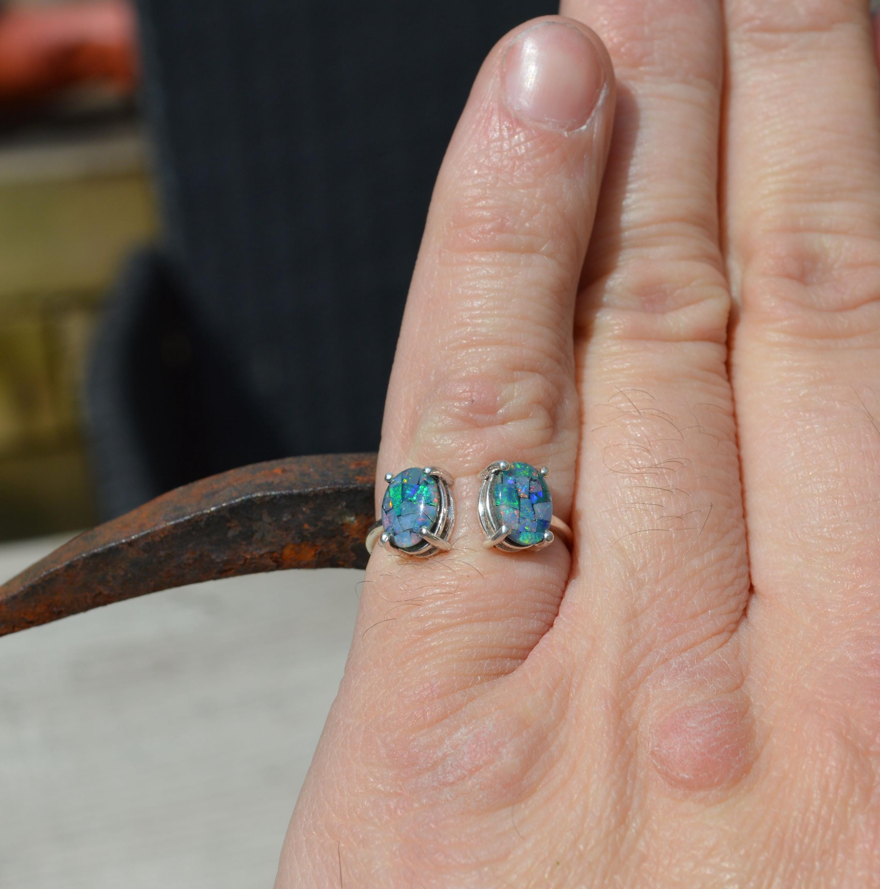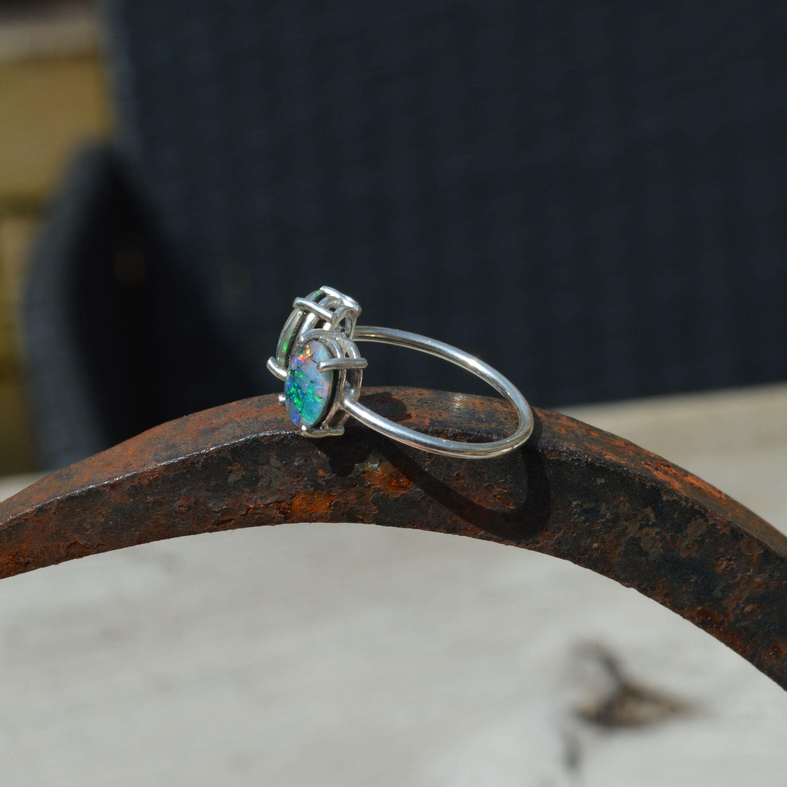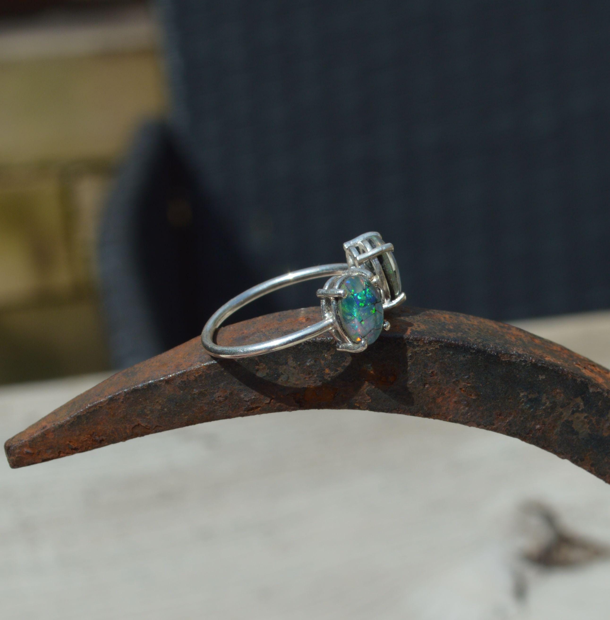 Sterling Silver Opal Ring, Oval Australian Opal Triplets