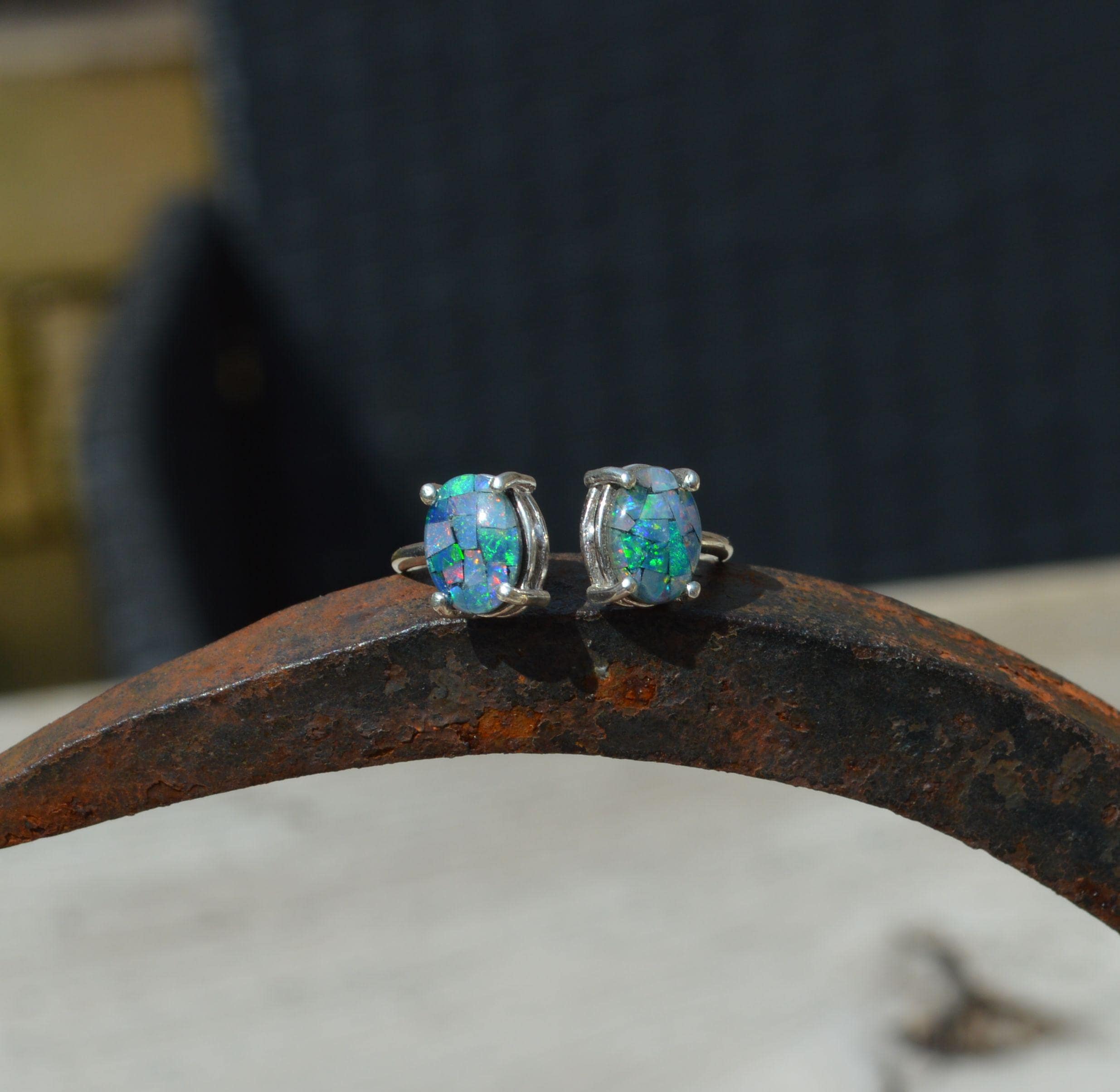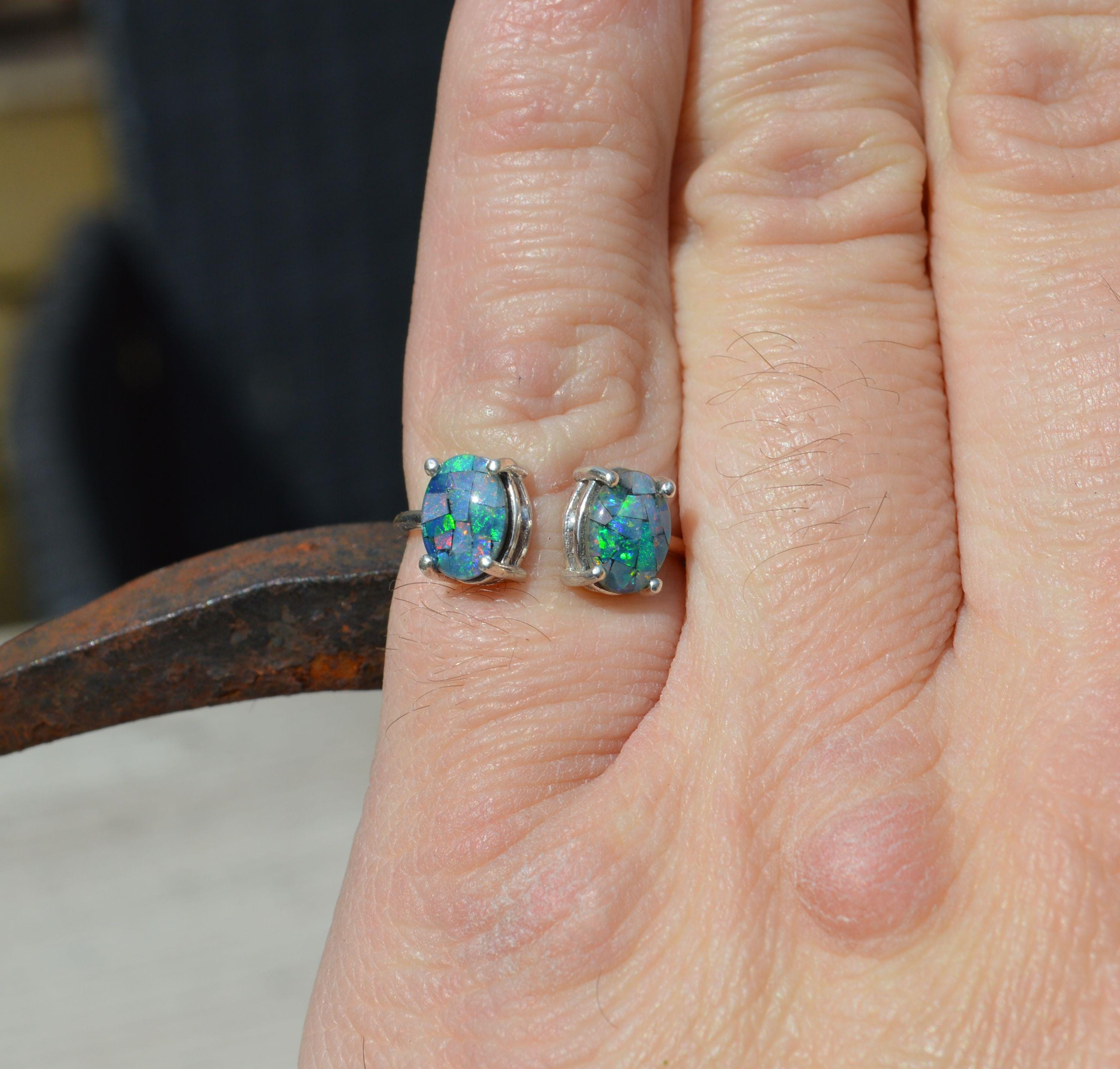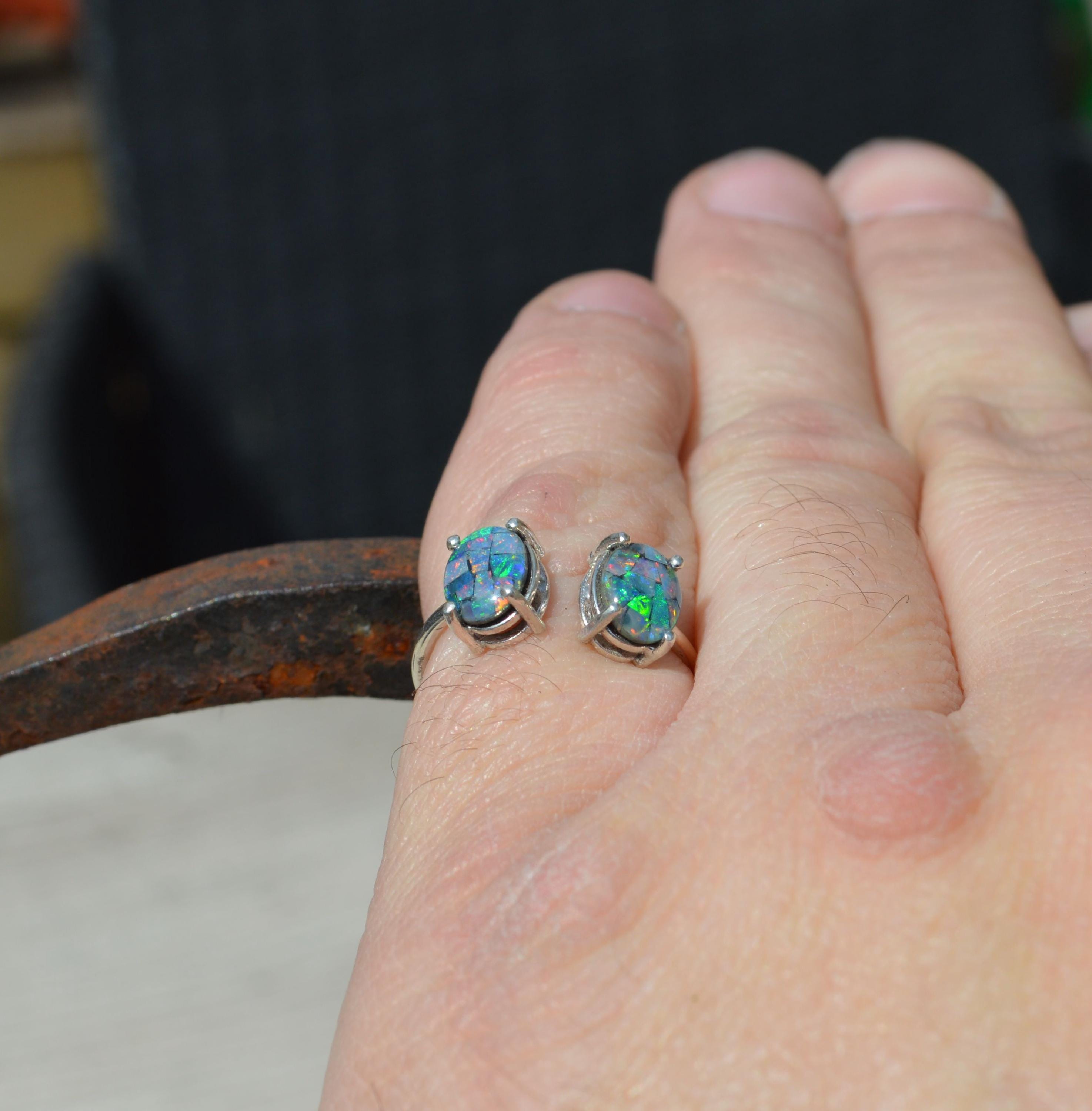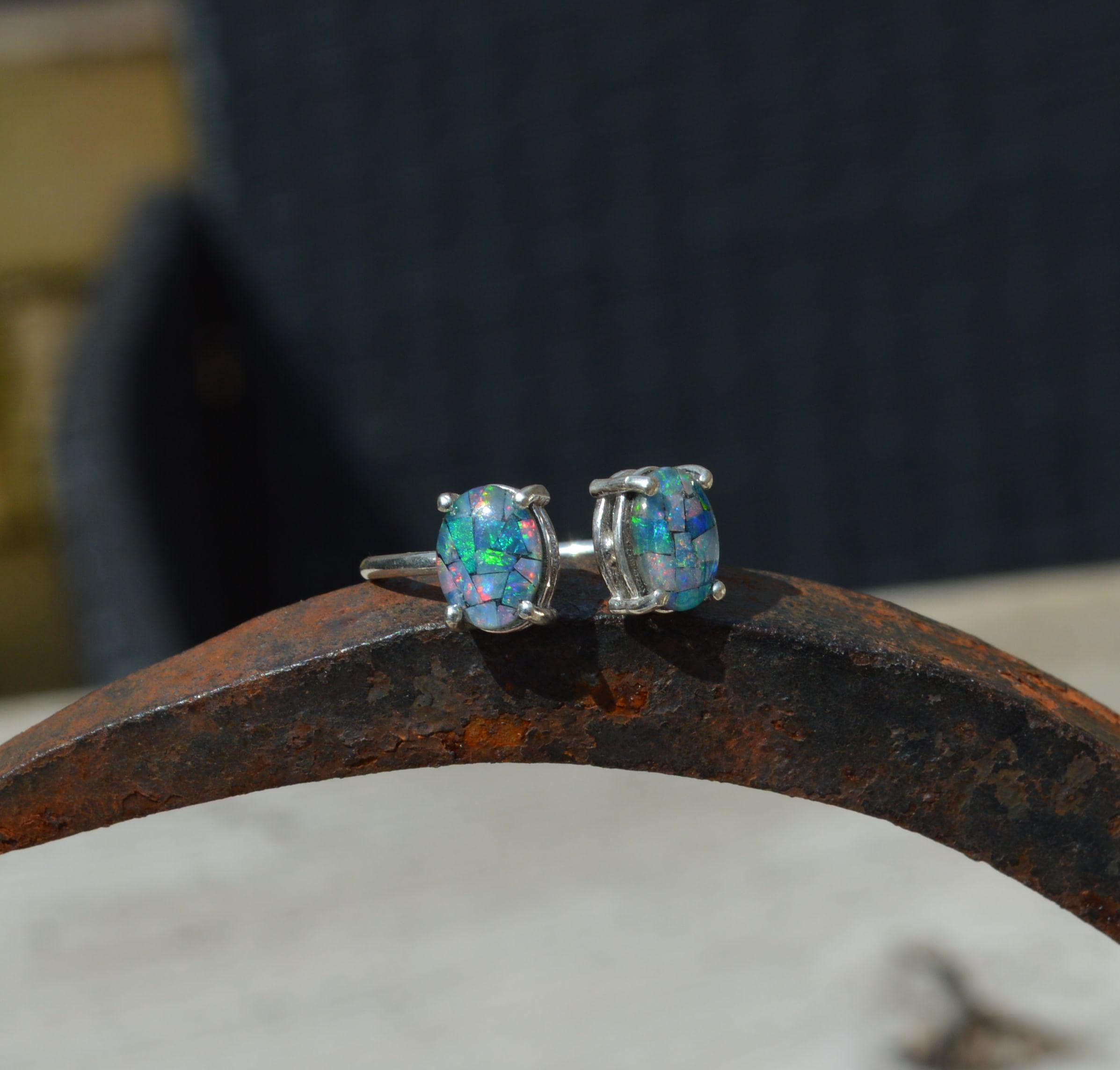 Sterling Silver Opal Ring, Oval Australian Opal Triplets