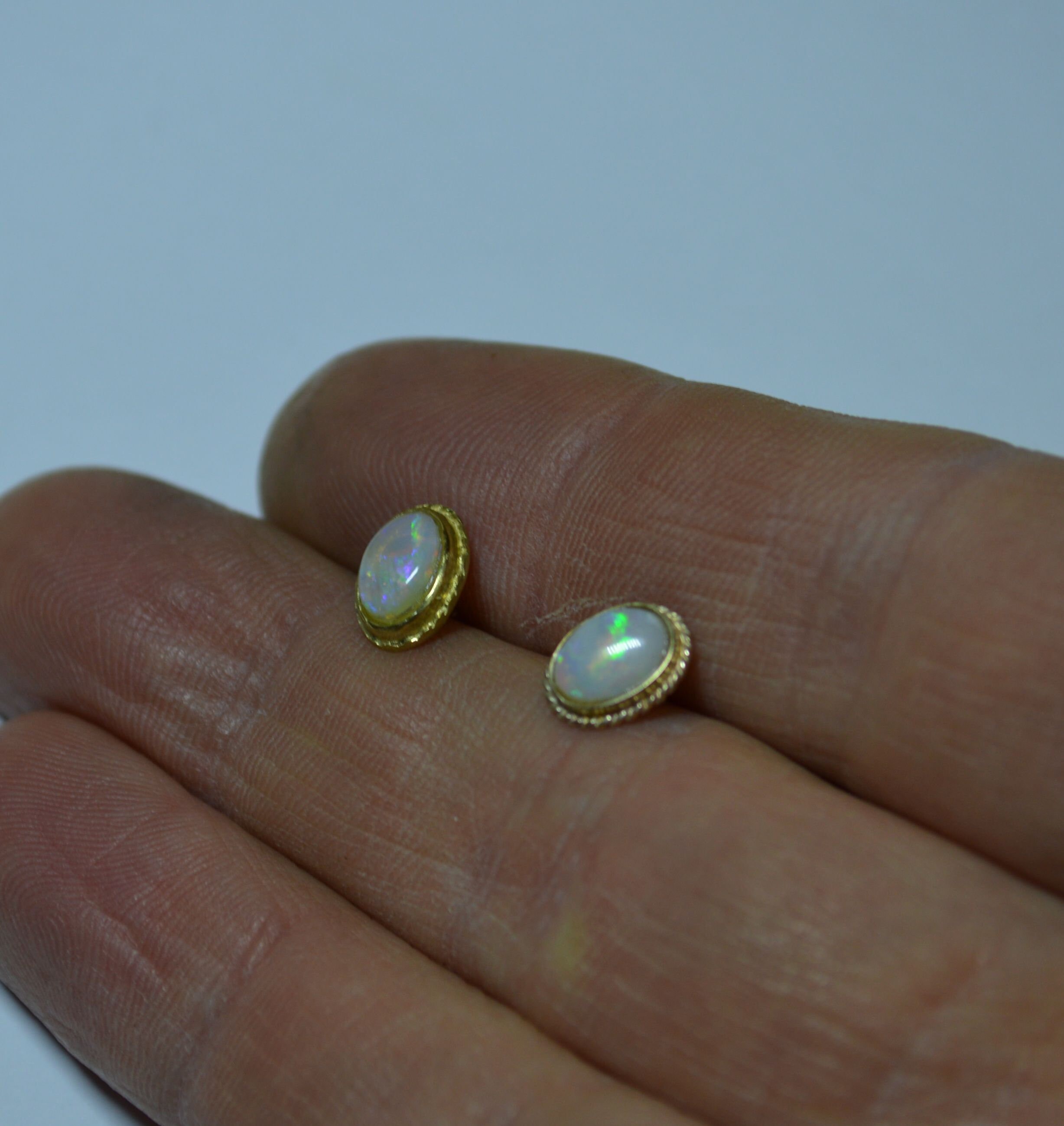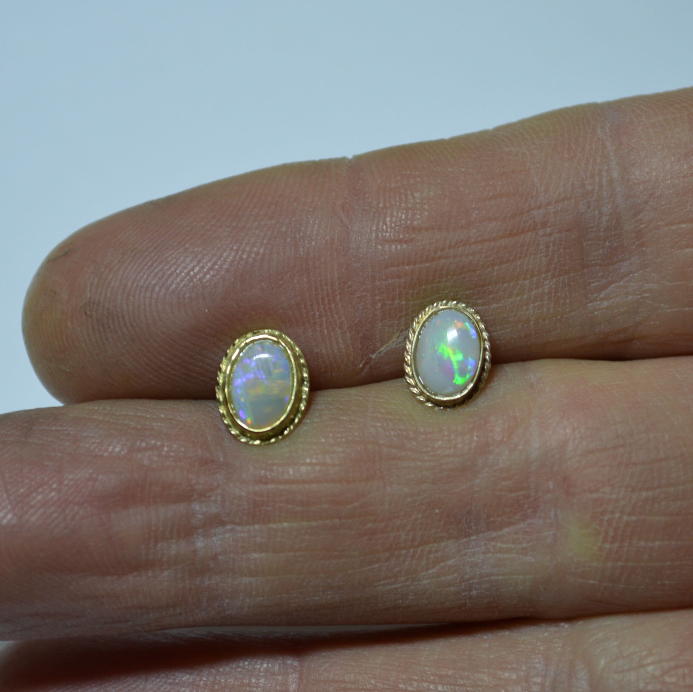 9ct Gold Oval Opal Stud Earrings, Australian Opals