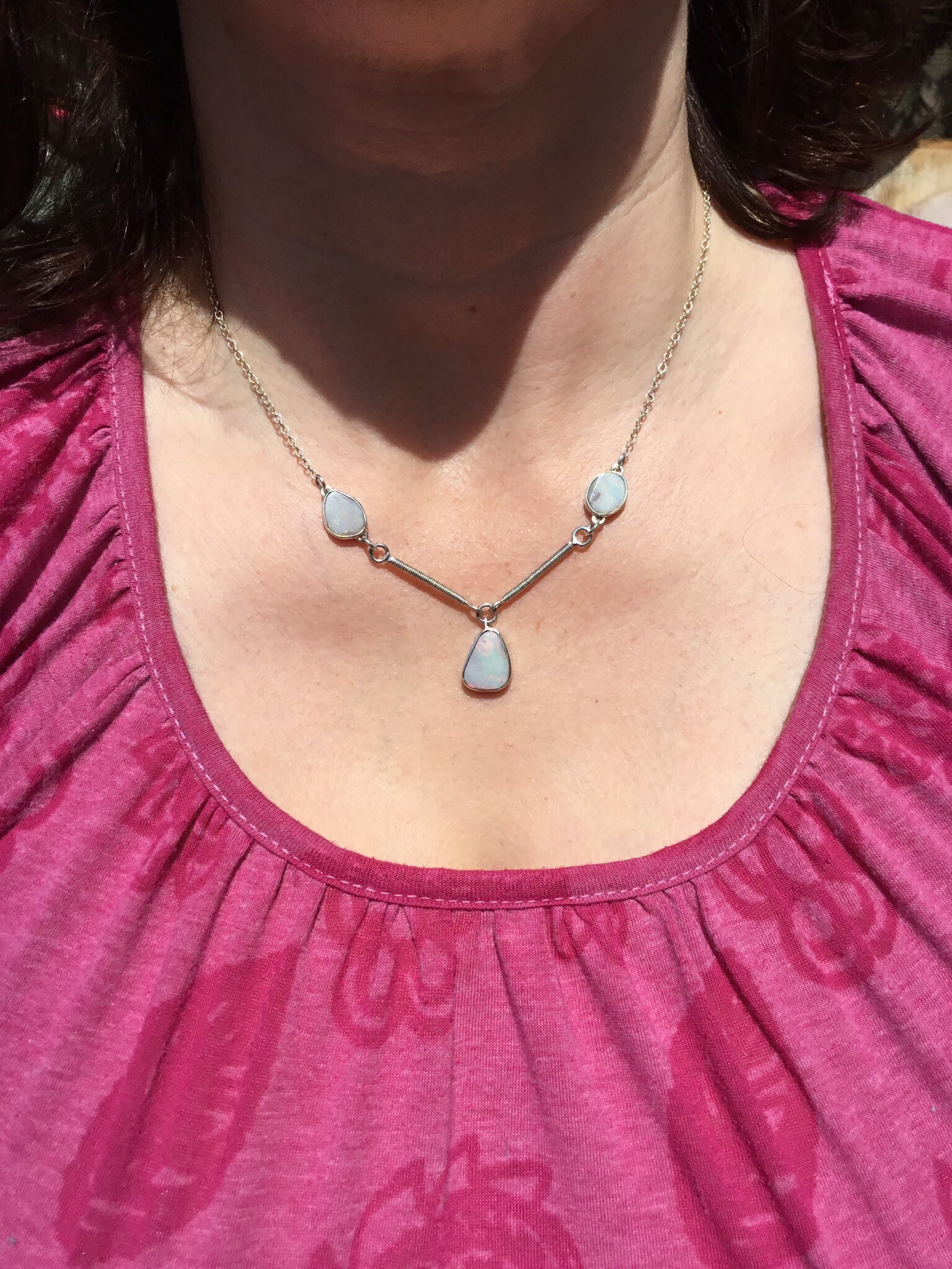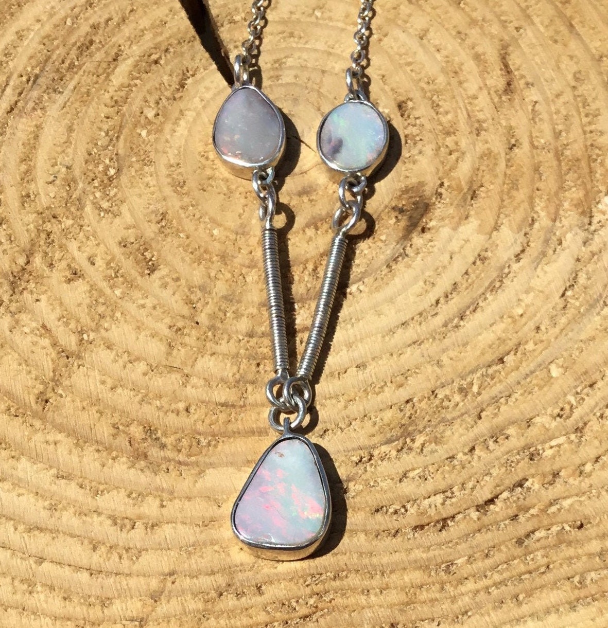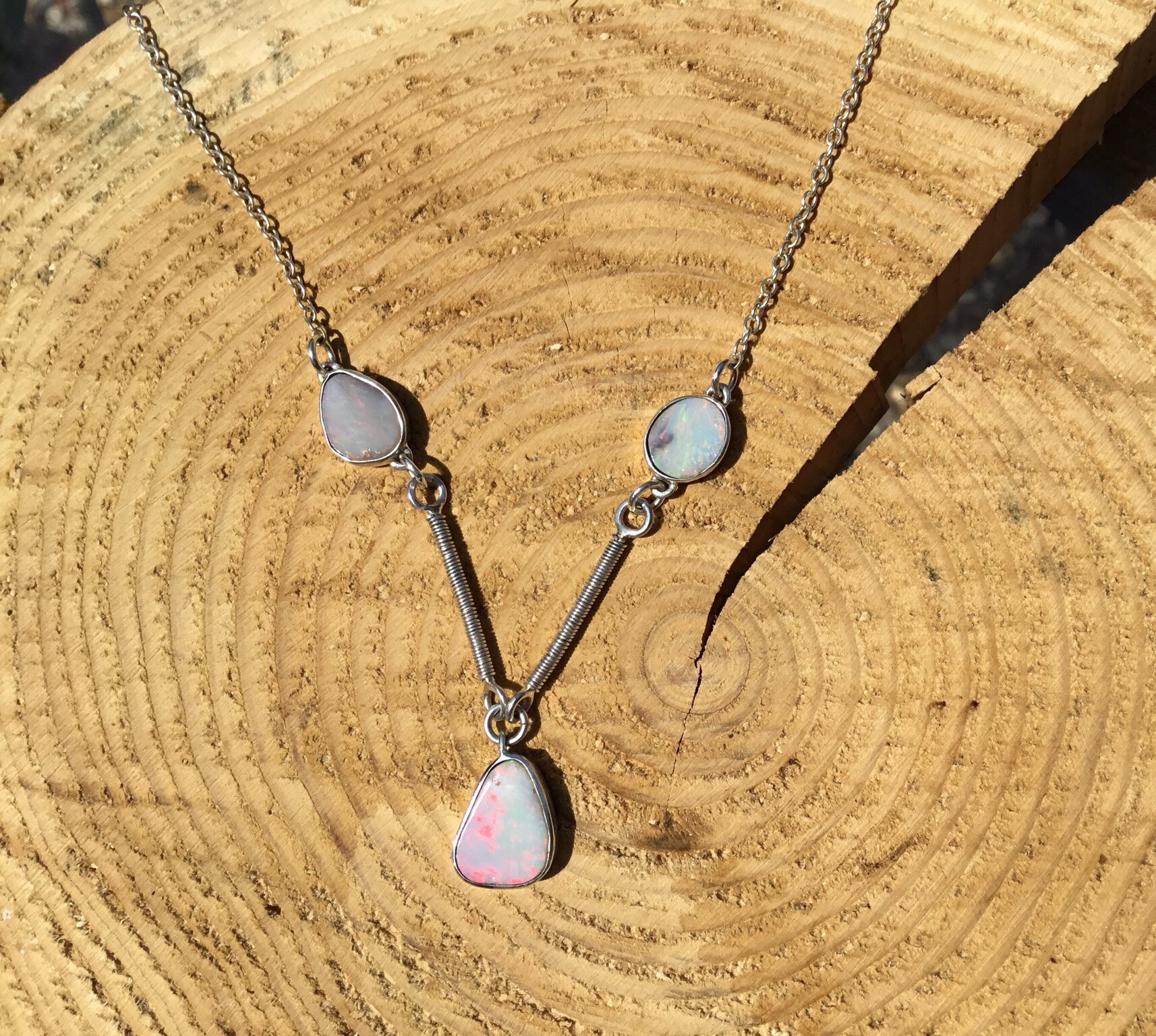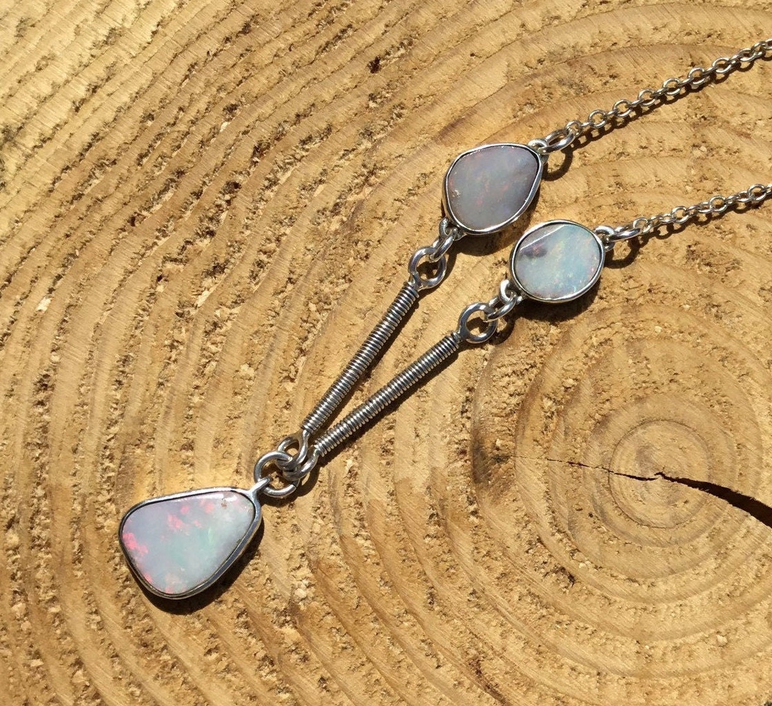 Silver Opal Necklace, Handmade