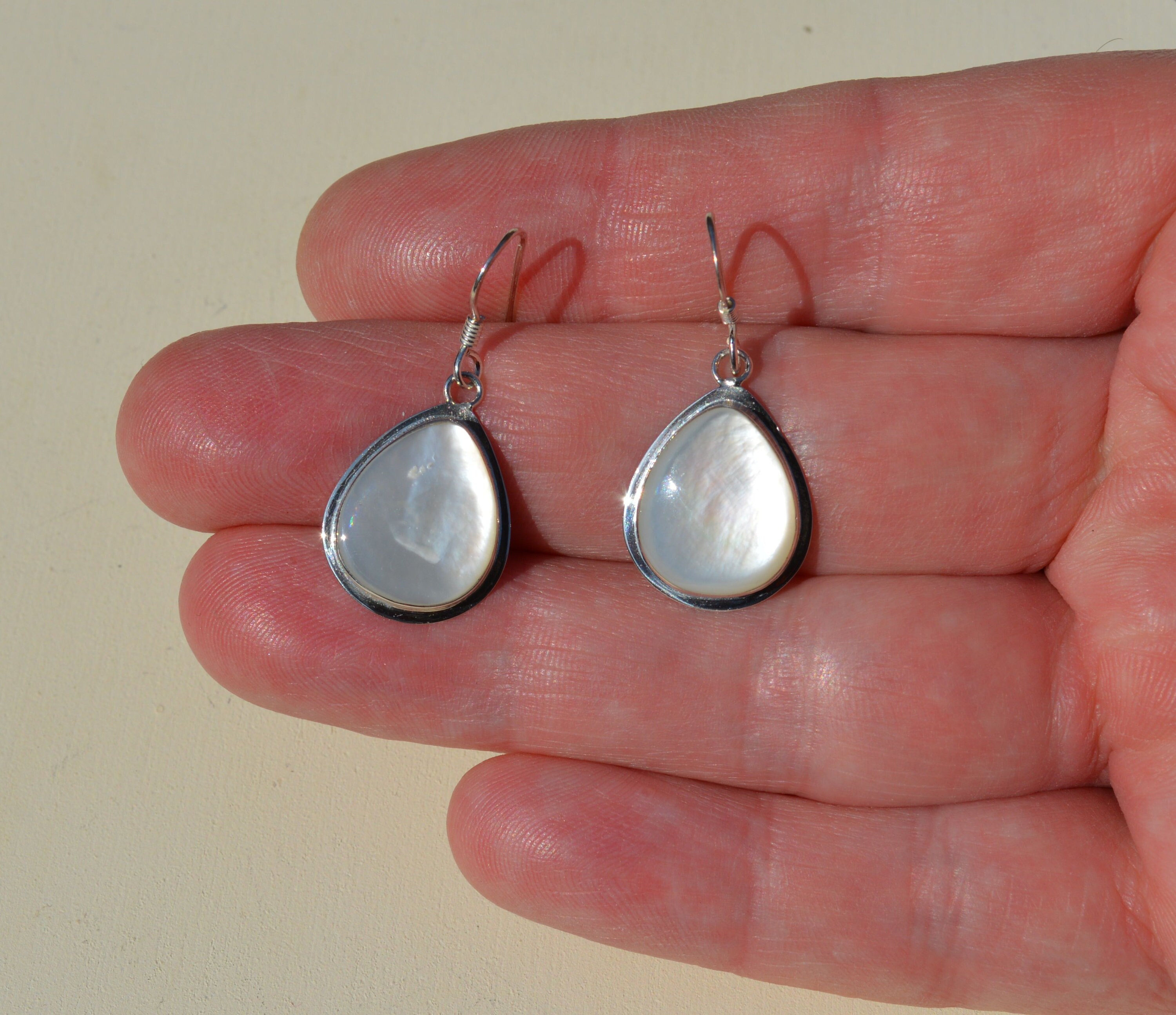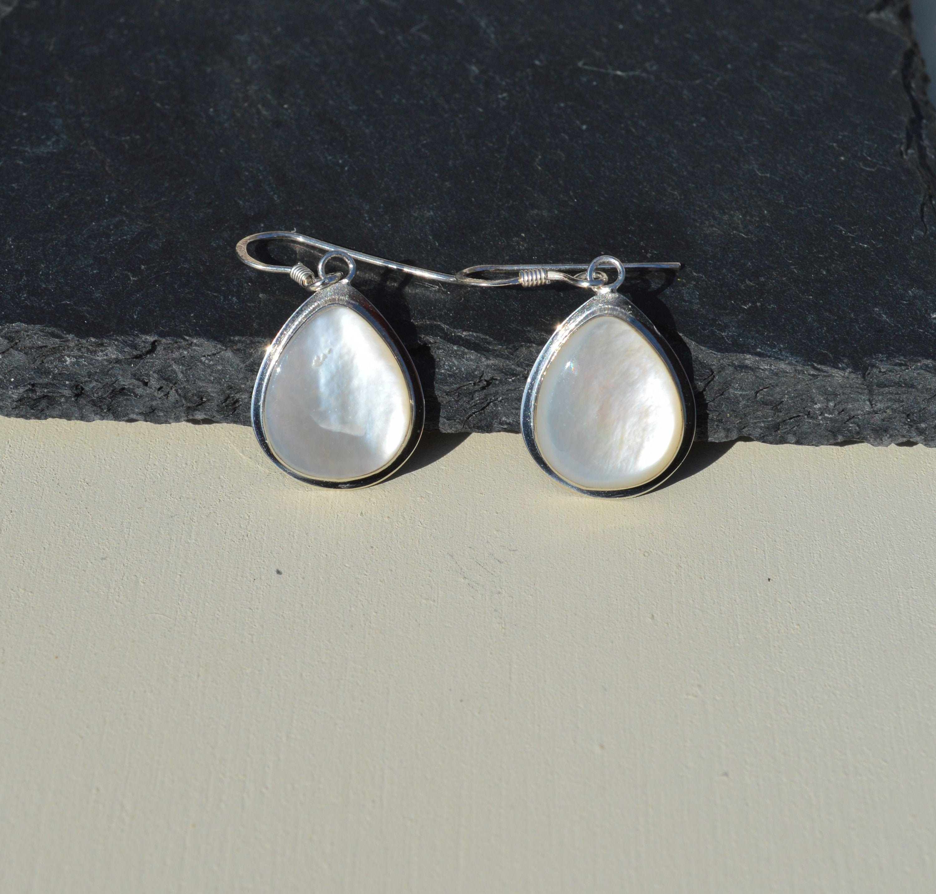 Handmade Teardrop Earrings Set With Mother of Pearl Shell In Sterling Silver,